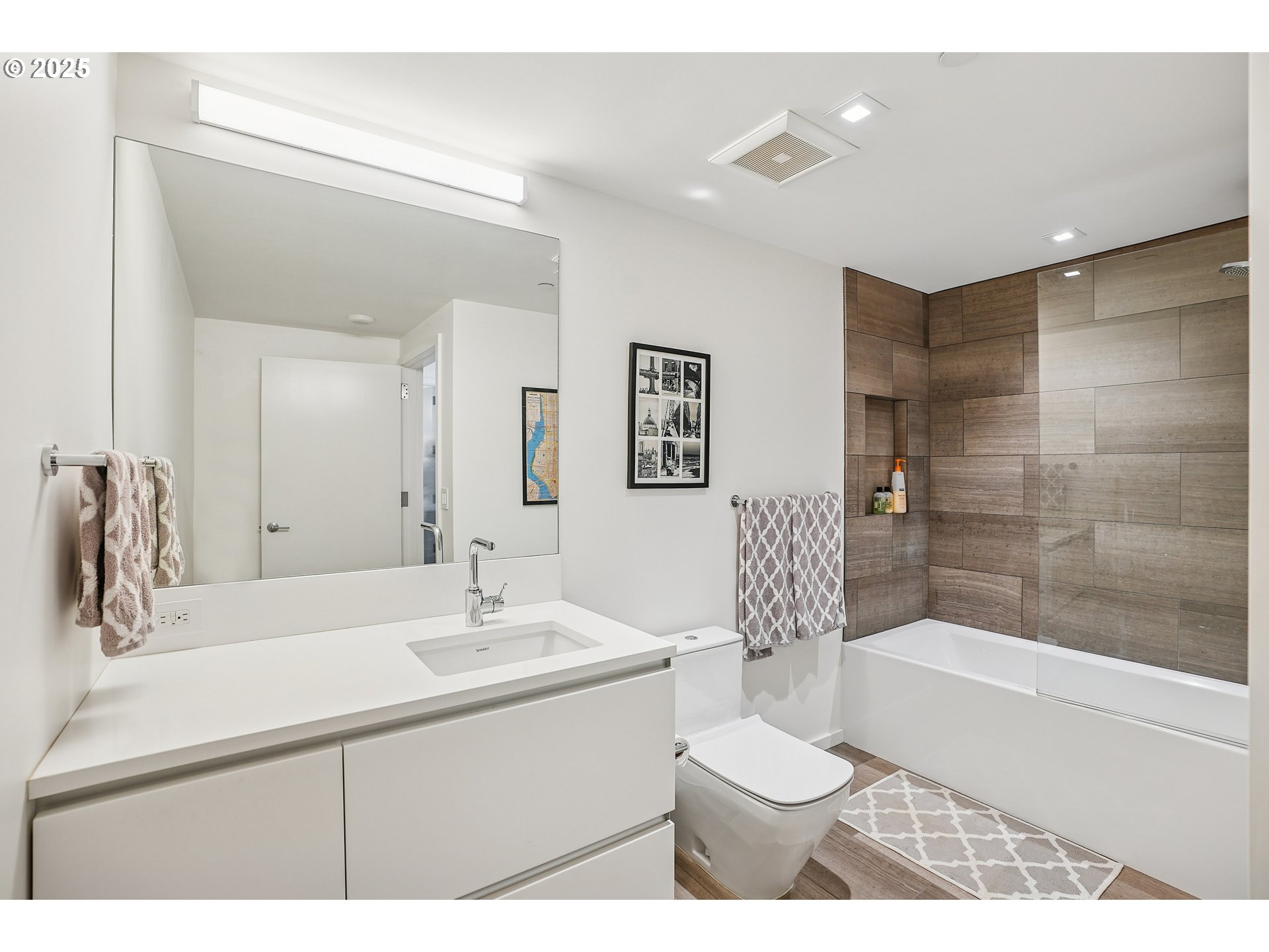 If your desire is urban sophistication, then look no further. This corner unit is located in The Cosmopolitan on the Park, which is in Portland’s vibrant Pearl District. This sleek one bedrooms plus a den with 2 full bathrooms offers an unparalleled living experience with breathtaking Willamette River views from every vantage as well as west hills and sunset scapes. Step into a bright and open living space that features flooded light from its floor-to-ceiling windows. The stunning design highlights high-end finishes which include hardwood floors, quartz countertops, and Pedini custom cabinetry. The primary suite is a peaceful and spacious retreat that has an en-suite bathroom with dual sinks and a walk in shower. The den is suitable as a guest room and office hybrid, with plenty of space to allow for both. Additional features include secured and patrolled parking, a fitness center, community lounge and concierge service.