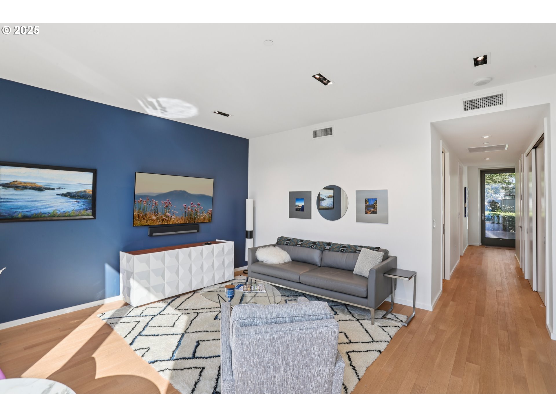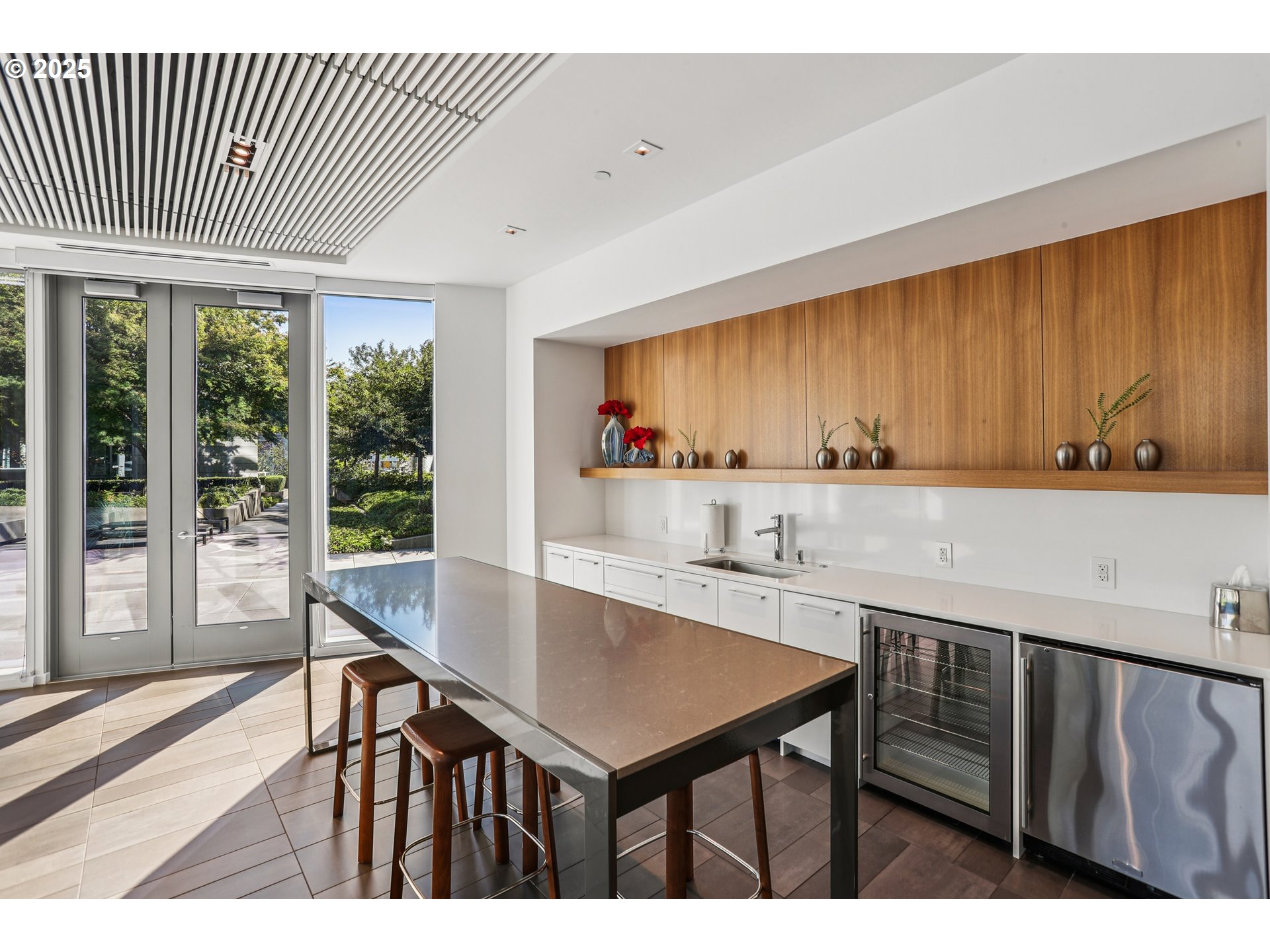 Garden-level sanctuary in the Cosmo, in the heart of the Pearl. Private and serene with a garden-terrace entry and personal patio, yet adjacent to the building’s best amenities. Tanner Springs Park sits across the street, and coffee, dining, and shops surround the block. MAX, Portland Streetcar, and TriMet bus stops are right out front for effortless city access.Inside, an easy single-level layout centers on open living and great natural light. The kitchen features Miele appliances and quartz counters. Large windows frame views of Tanner Springs Park, and the adjacent landscaped terrace offers outlooks toward the Fremont Bridge and cityscape. Residents enjoy 24-hour concierge, a fitness center, and a reservable guest suite. Includes deeded parking and a storage unit. You really can have it all, in the heart of it all: urban convenience with a calm retreat to come home to. Mortgage savings may be available for buyers of this listing.What the owners loved about this home:"The big advantage of this unit is that it lives much larger than its size and has a beautiful two-sided view - all the way across the patio on one side and Tanner Park on the other, with light coming in all day plus the garden patio. Also, the easy access to community features means that it lives like a larger unit. Your partner is on a phone call - duck into the gorgeous community room (which is almost always wonderfully empty) and read in front of the fireplace. Need an extra bathroom - it's steps away. Plus, when guests stay, they're on the same level and just a short walk away in beautiful guest suites that I found were easily available."