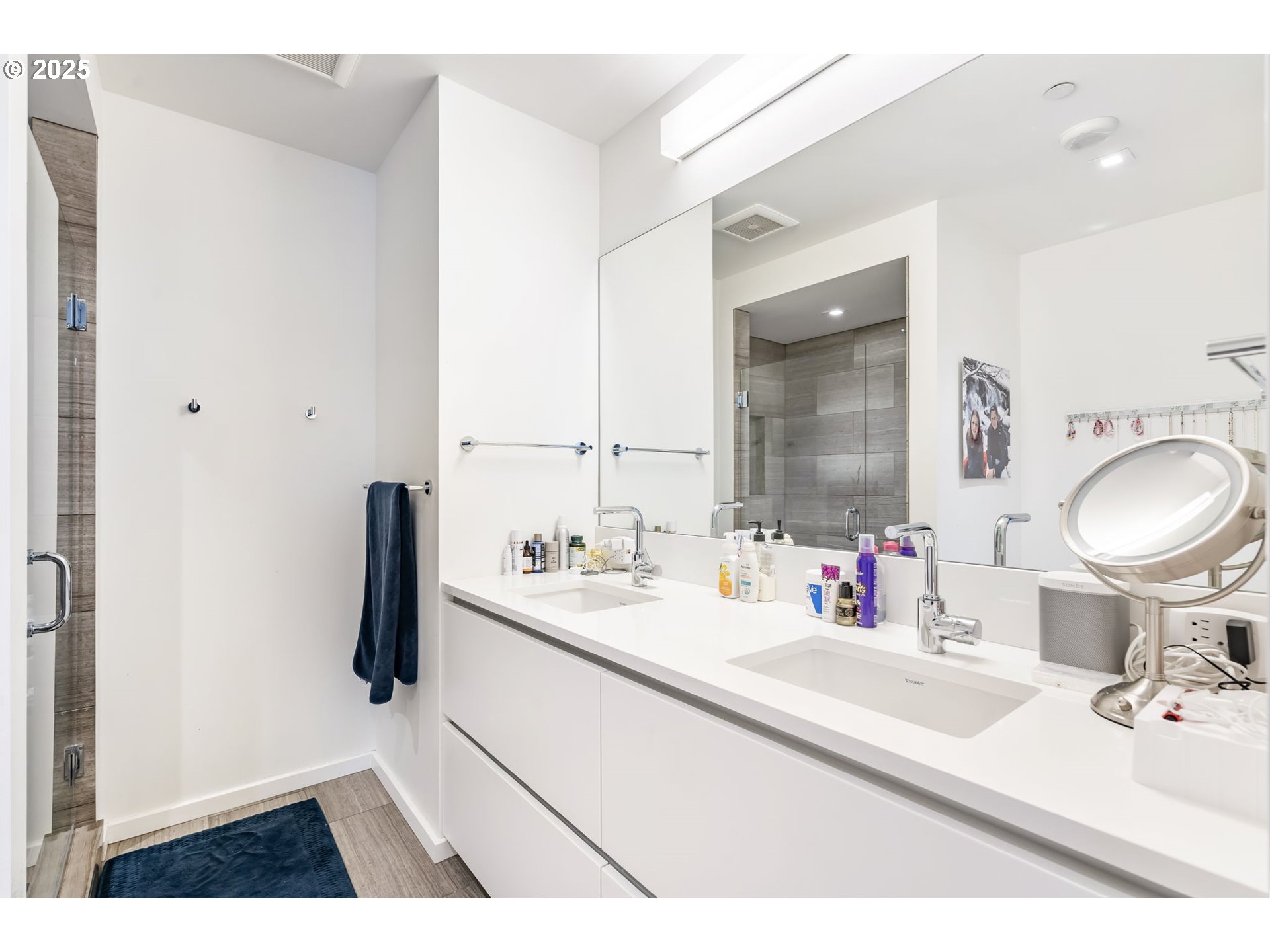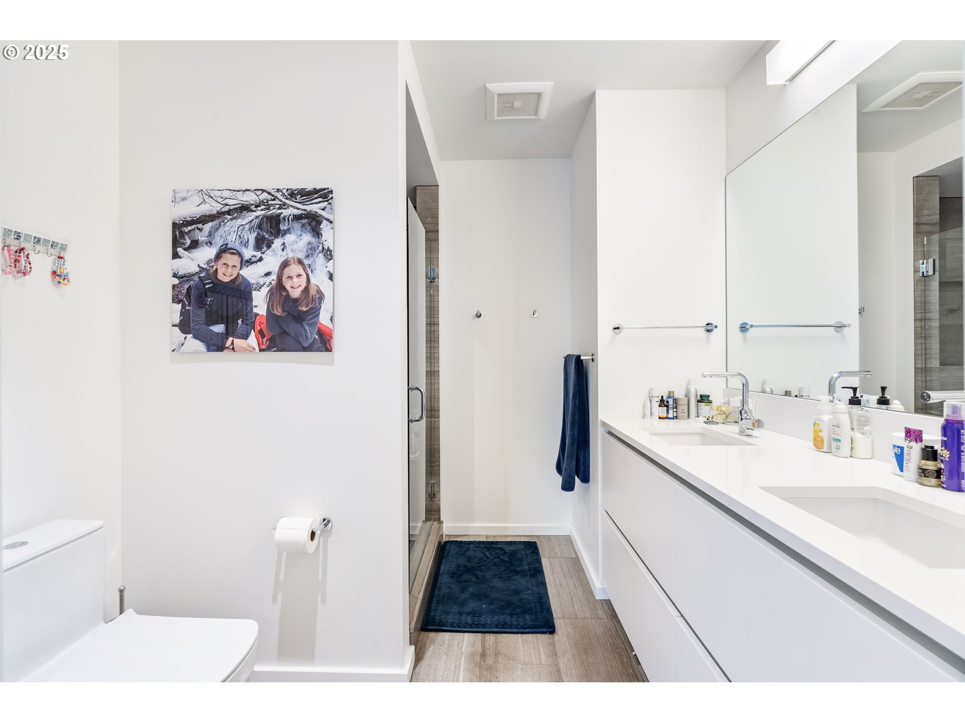 (503) 893-8874Bright contemporary 2 bedroom, 2.5 bathroom condo with additional enclosed room with office built-ins. This SW corner unit opens up to West Hill and city views with a private deck. Kitchen has high end European appliances, open main living floorpan and full length windows. Primary bedroom and secondary bedroom feature ensuite bathrooms and customized California Closets. Great building amenities include 24-hour concierge, gym, community room, etc. Deeded one parking spot and storage unit.