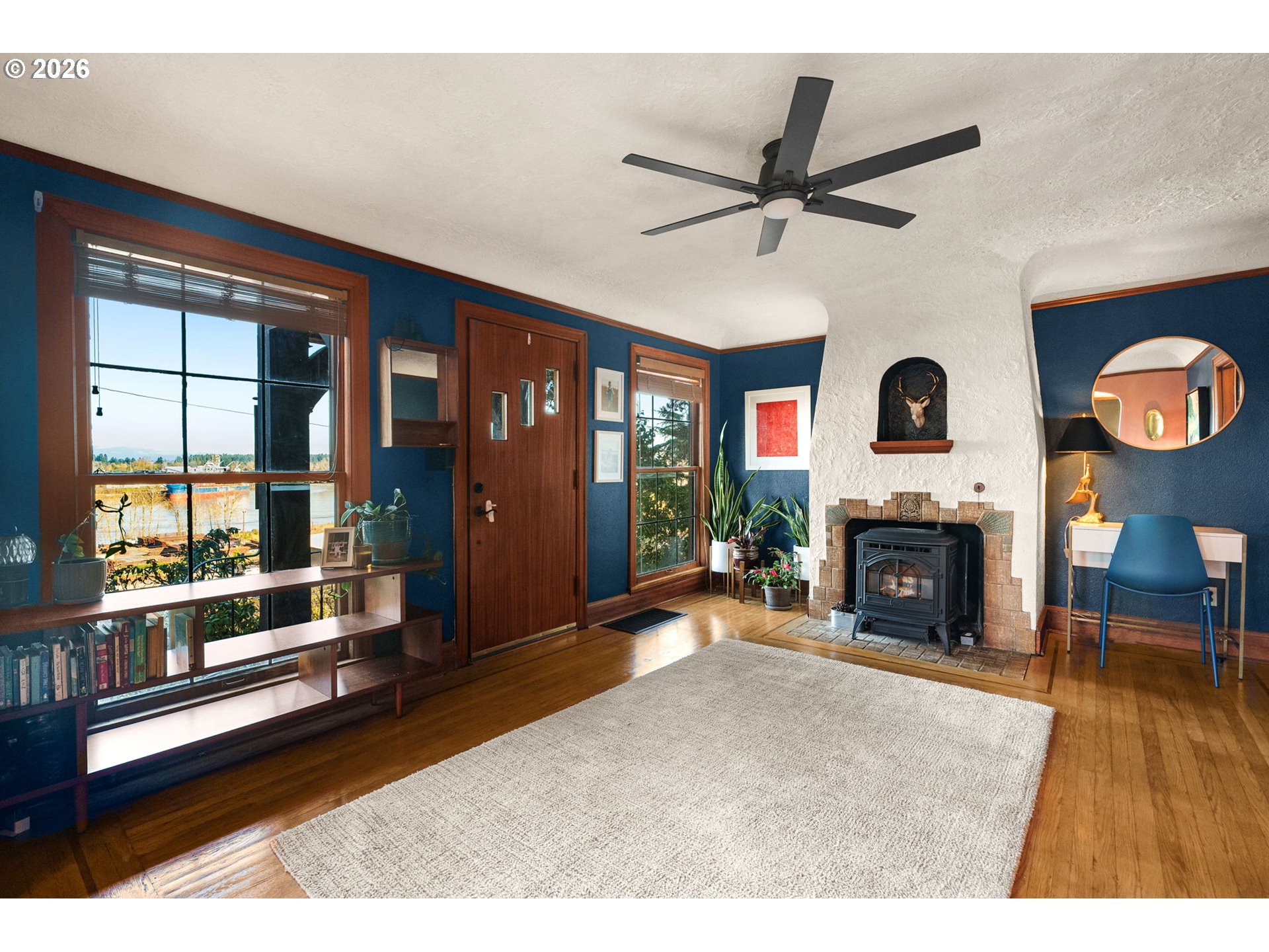 Perched above the Willamette with captivating river and expansive mountian views, this beautifully preserved 4 bed, 2 bath 1934 Tudor blends historic charm with refined livability. Showcasing stunning original harbor floors, rich period details, and timeless craftsmanship, the home offers an airy, thoughtfully opened floor plan filled with natural light.Expansive windows illuminate the warm original finishes, creating inviting spaces designed for both everyday living and elegant entertaining.Ideally located with Forest Park Trail access in the neighborhood and 10 min to NW Pdx, this home offers a rare balance of nature, convenience, and city lifestyle. A truly special opportunity to own a piece of Portland history with preserved authenticity, incredible character, and serene Willamette River views.
