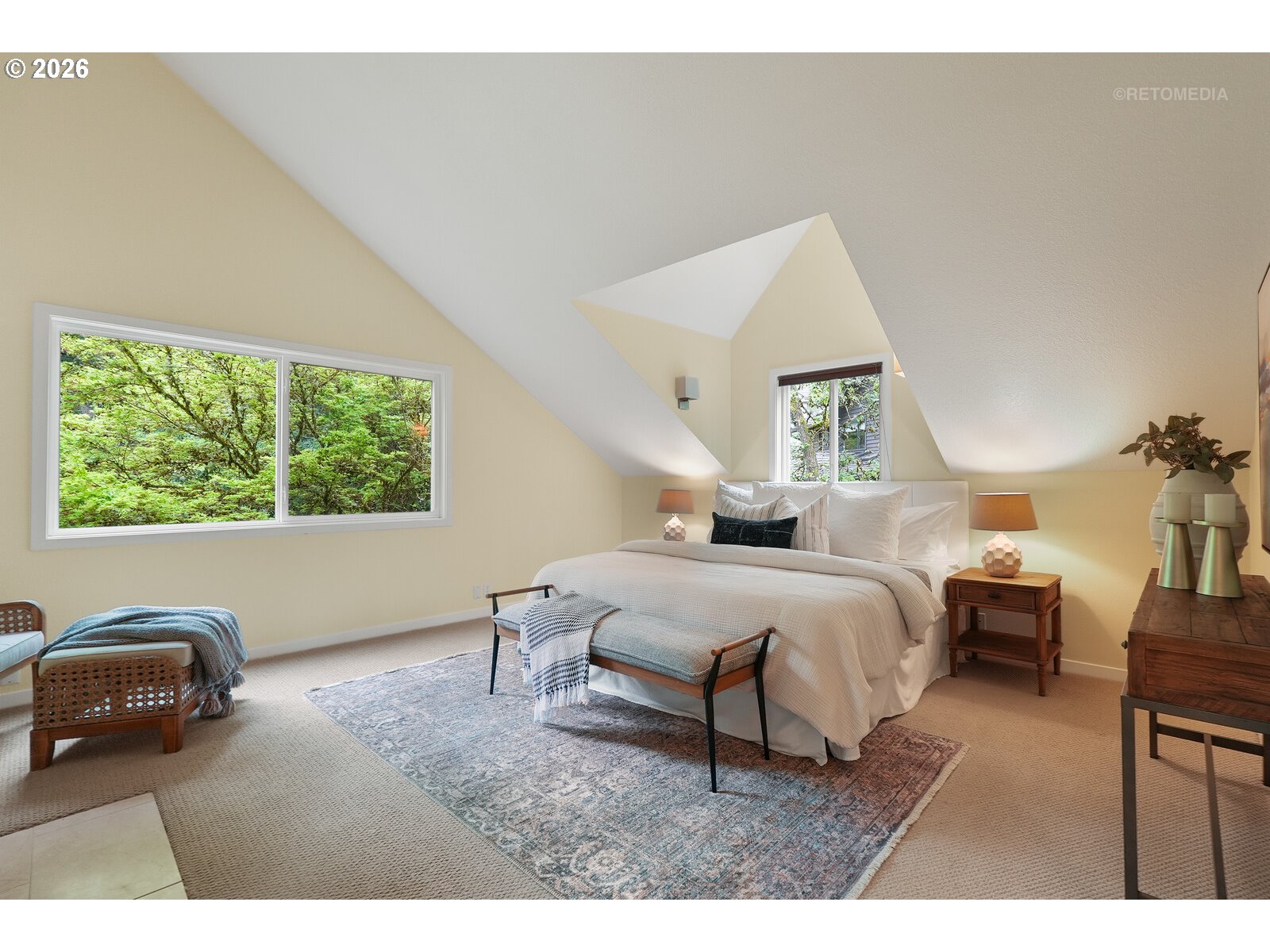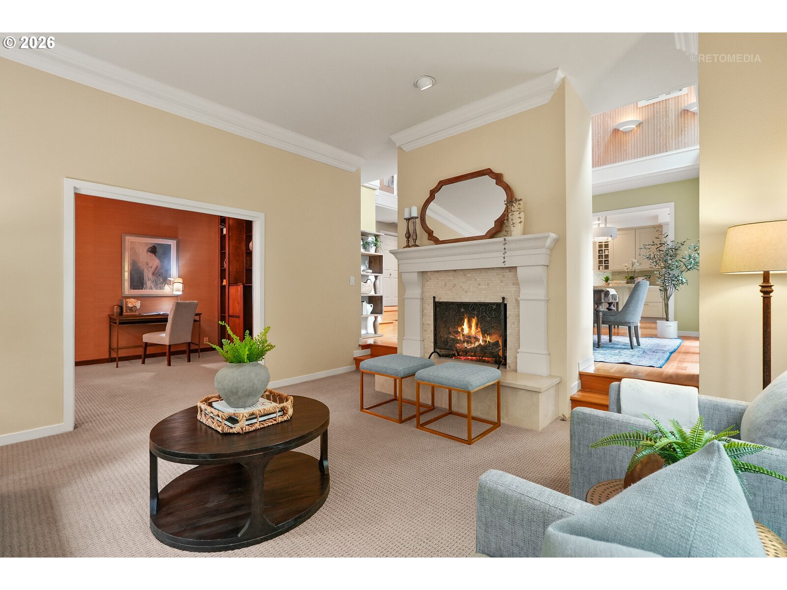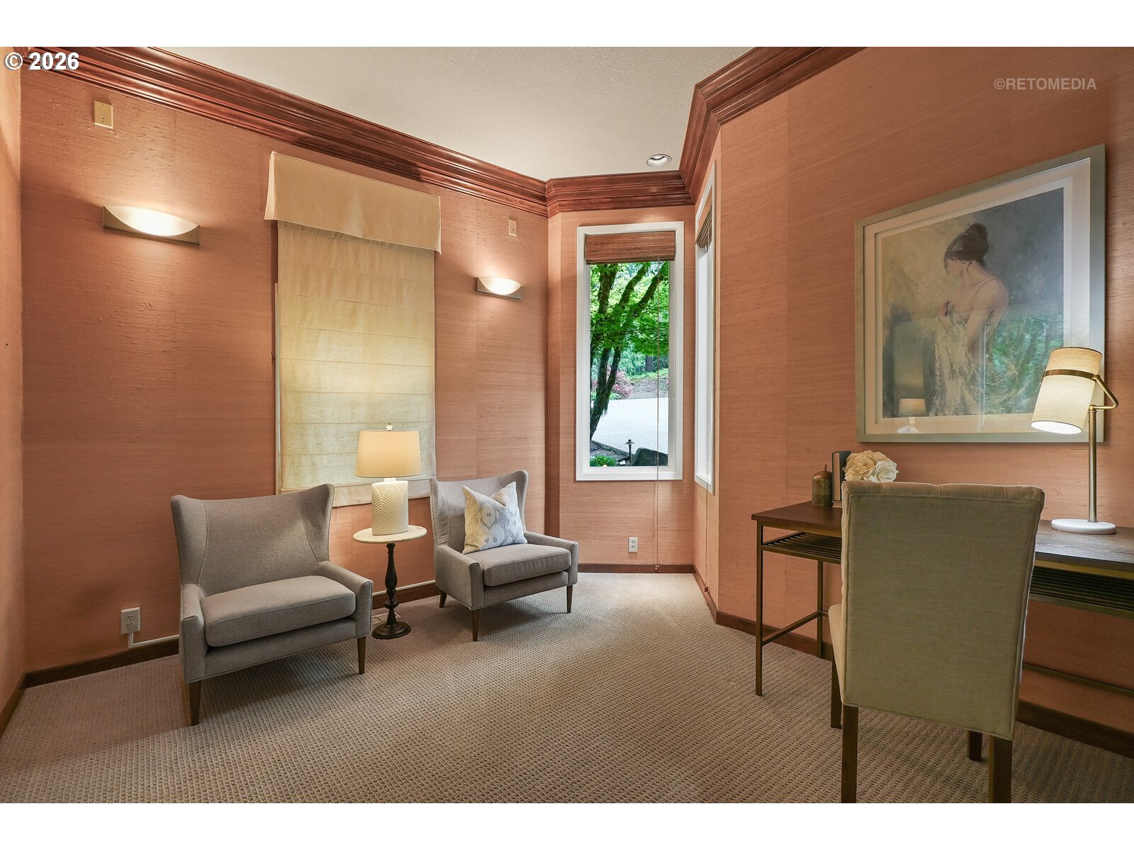 STOP scrolling—this is the Portland lifestyle everyone’s chasing.A blend of nature, character, and convenience, this home captures the essence of PNW living. Tucked on a tree-lined street w/serene views, it offers privacy while staying connected to downtown. Inside, high ceilings, hardwood floors, and clerestory windows fill the home w/natural light and views of nature. Updated kitchen features quartz countertops, SS appls and seamless indoor-outdoor flow. A living room w/FP, library/music room w/built-ins, and dramatic two-story ceiling dining room create a unique floor plan.The primary suite is a private retreat w/FP, spa-like bath, and walk-in closet. Bonus room/4th bedroom adds flexibility. Enjoy the entertaining size deck, flagstone patio, and fenced yard backing to lush greenspace. Across from neighborhood park w/pond, near trails/parks, and minutes to OHSU, Lewis & Clark, and downtown. More than a home—it’s a lifestyle. You’ve been warned—don’t wait to see it! [Home Energy Score = 1. HES Report at https://rpt.greenbuildingregistry.com/hes/OR10246647]