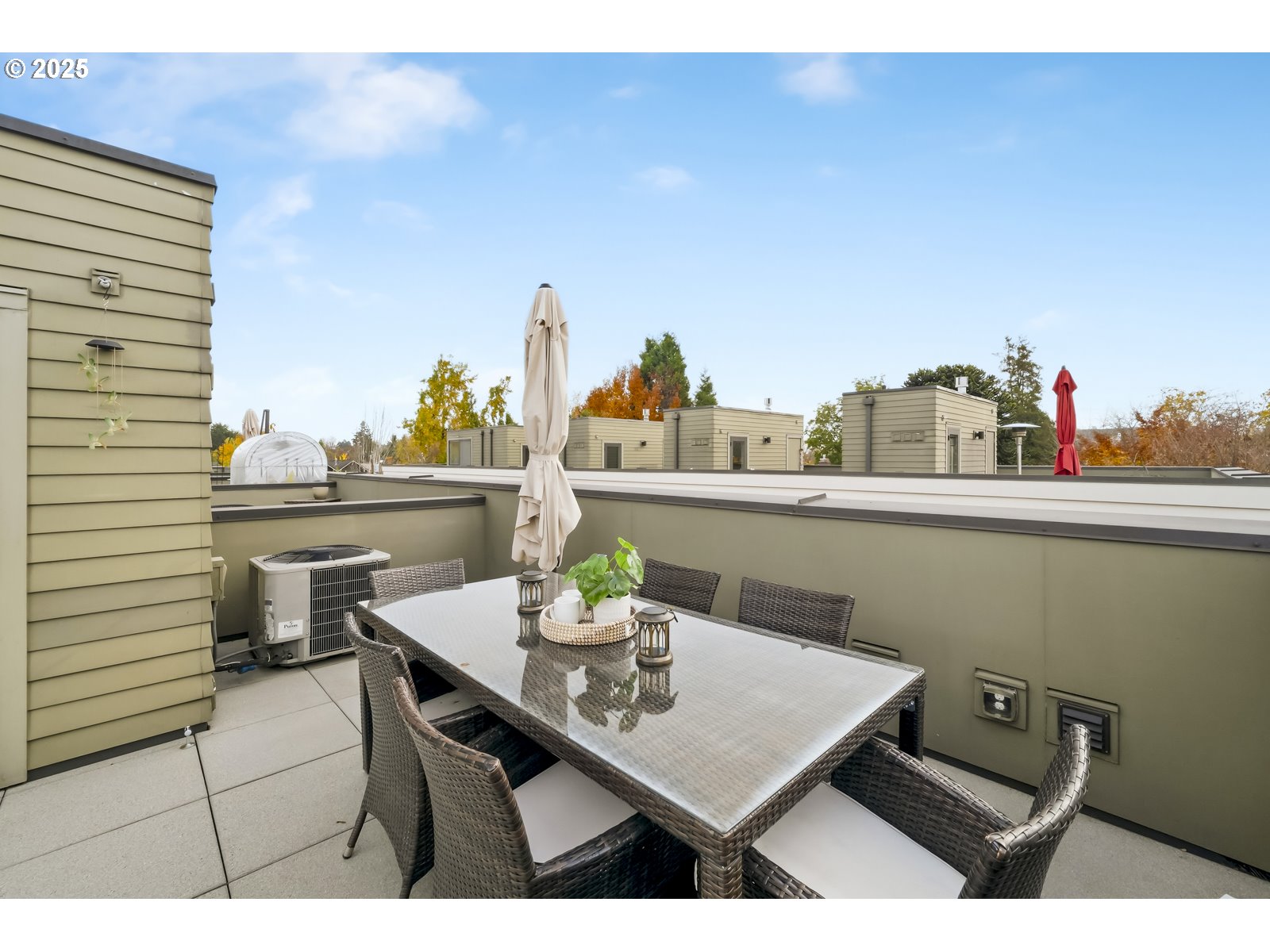 (503) 893-8874Located in the heart of historic Irvington, this rare end-unit townhouse-style condo offers modern comfort within one of Portland’s most beloved neighborhoods. It truly lives like a detached home with its own front door, attached garage, and thoughtful upgrades throughout. The cook’s kitchen is a true centerpiece—Neil Kelly cabinetry, deep drawers, quartz counters, pantry, and a generous eating bar that flows into an open living and dining area. Floor-to-ceiling windows on three sides bathe the home in natural light, creating a warm, inviting feel in every season. A gas fireplace and balcony with gas/water hookups make indoor–outdoor living effortless. Upstairs, two luminous primary suites feature wool carpet, Neil Kelly closets, and spa-inspired baths—one with an oversized soaking tub, the other with double shower heads. The larger suite offers a private balcony that catches the morning light and feels made for coffee, calm and a little container garden magic. Flexible laundry options include hookups upstairs or in the oversized garage with abundant storage. A Home Energy Score of 10 reflects the home’s efficiency and low-impact design. And then—there’s the rooftop. Nearly 500 sq ft of open sky, framed by views of the city, the West Hills, and winter views of Mt. Hood. An established garden with mature plantings and a drip system creates a sanctuary that feels both elevated and grounded, like a modern treehouse above the neighborhood. Sunsets here are unforgettable—golden light settling over the rooftops, the soft shimmer of “komorebi” as sunlight filters through nearby cherry trees. It’s a place for long summer dinners, peaceful mornings, and quiet, starlit evenings. Set within a warm, connected community and surrounded by parks, grocery stores, cafes, restaurants, and transit—plus Grant School District—this home offers a rare blend of privacy, light, beauty, and effortless city living. [Home Energy Score = 9. HES Report at https://rpt.greenbuildingregistry.com/hes/OR10227086]