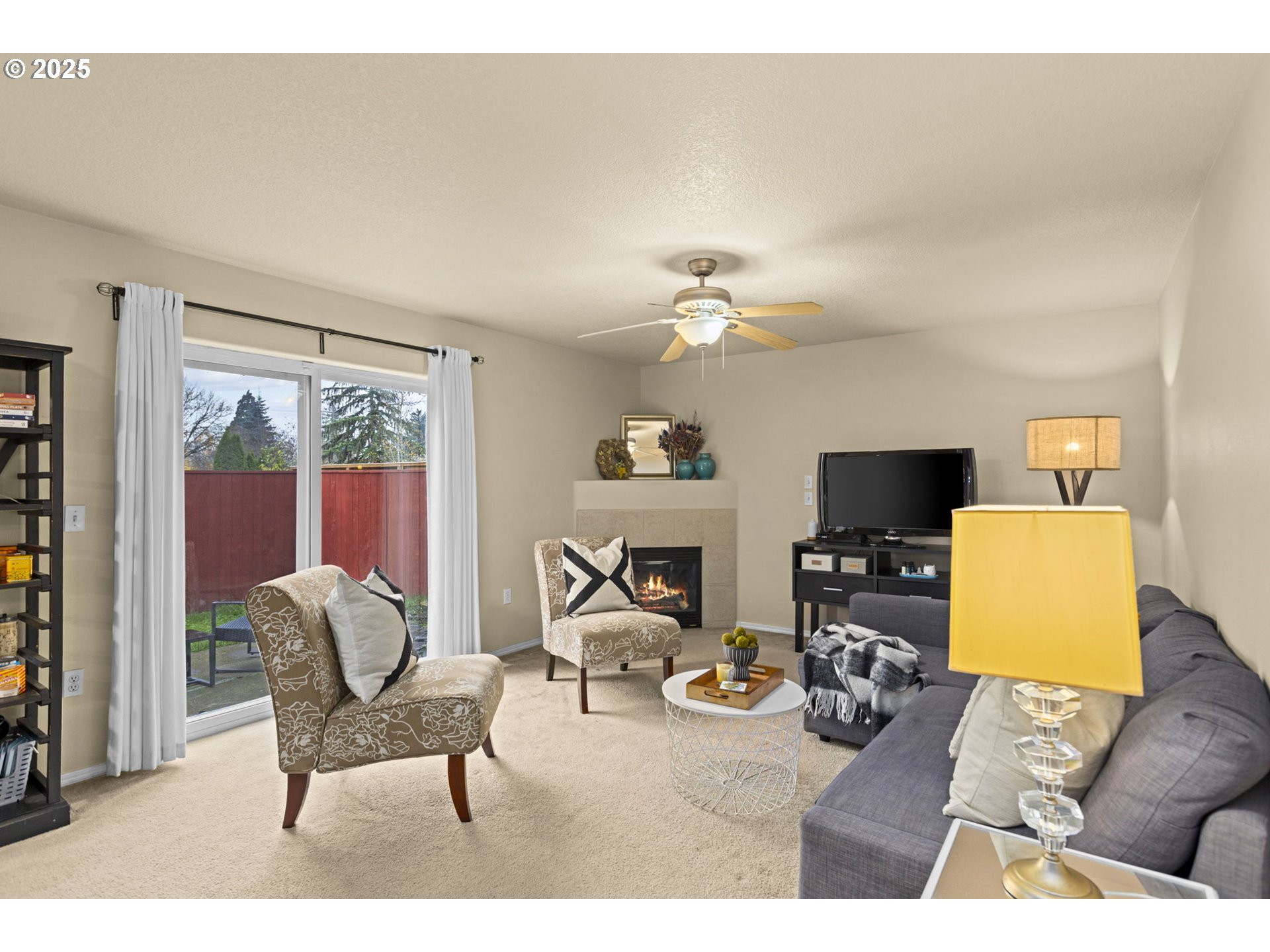 Beautifully maintained townhouse with no HOA fees! The kitchen offers ample cabinet space, a water filter, and an island, while the spacious living room features a cozy gas fireplace. The backyard is fully fenced and low-maintenance—perfect for easy living. The primary suite includes vaulted ceilings, a private balcony, a walk-in closet, and an ensuite bathroom. Two additional generously sized bedrooms, an upstairs laundry room, and a 2-car garage with a level 2 EV car charger. All appliances are included! Situated next to a green space, this home provides added privacy with no neighbors to the east or south. [Home Energy Score = 7. HES Report at https://rpt.greenbuildingregistry.com/hes/OR10243057]
