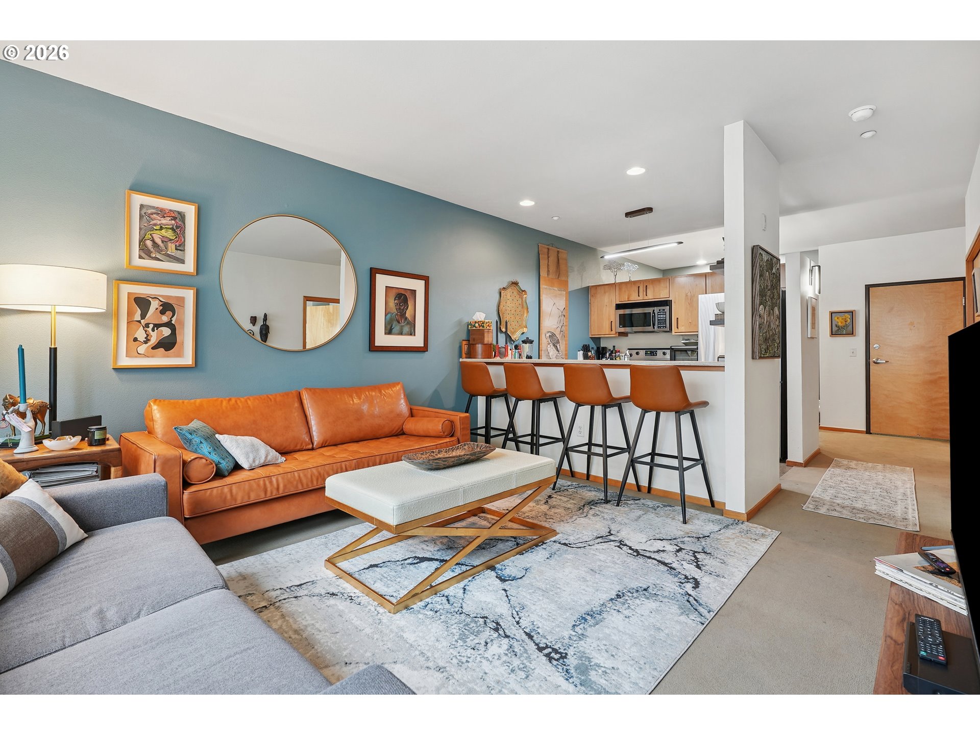 Priced to sell! Enjoy a turnkey lifestyle in this artistically designed true one-bedroom condo with custom colors and open living areas. The living room opens to a serene balcony overlooking the lush, landscaped courtyard and Tanner Springs Park. The open kitchen has solid surface counters, stainless steel appliances & an eating bar for dining and entertaining. The extra den space off the entry is well-suited as an office and/or guest space. The private bedroom features a large walk-in closet. In addition to the walk-in closet, there is extra storage space next to the in-unit washer & dryer, plus storage space in the bathroom, and a separately included deeded storage locker #67 on P1. Also included is a deeded parking space #124 on P2. The building has the extra amenities of a fitness room & meeting room. Lovely Pearl District location on the Street Car line, across from Tanner Springs Park, several restaurants, shops, galleries & services within easy reach.