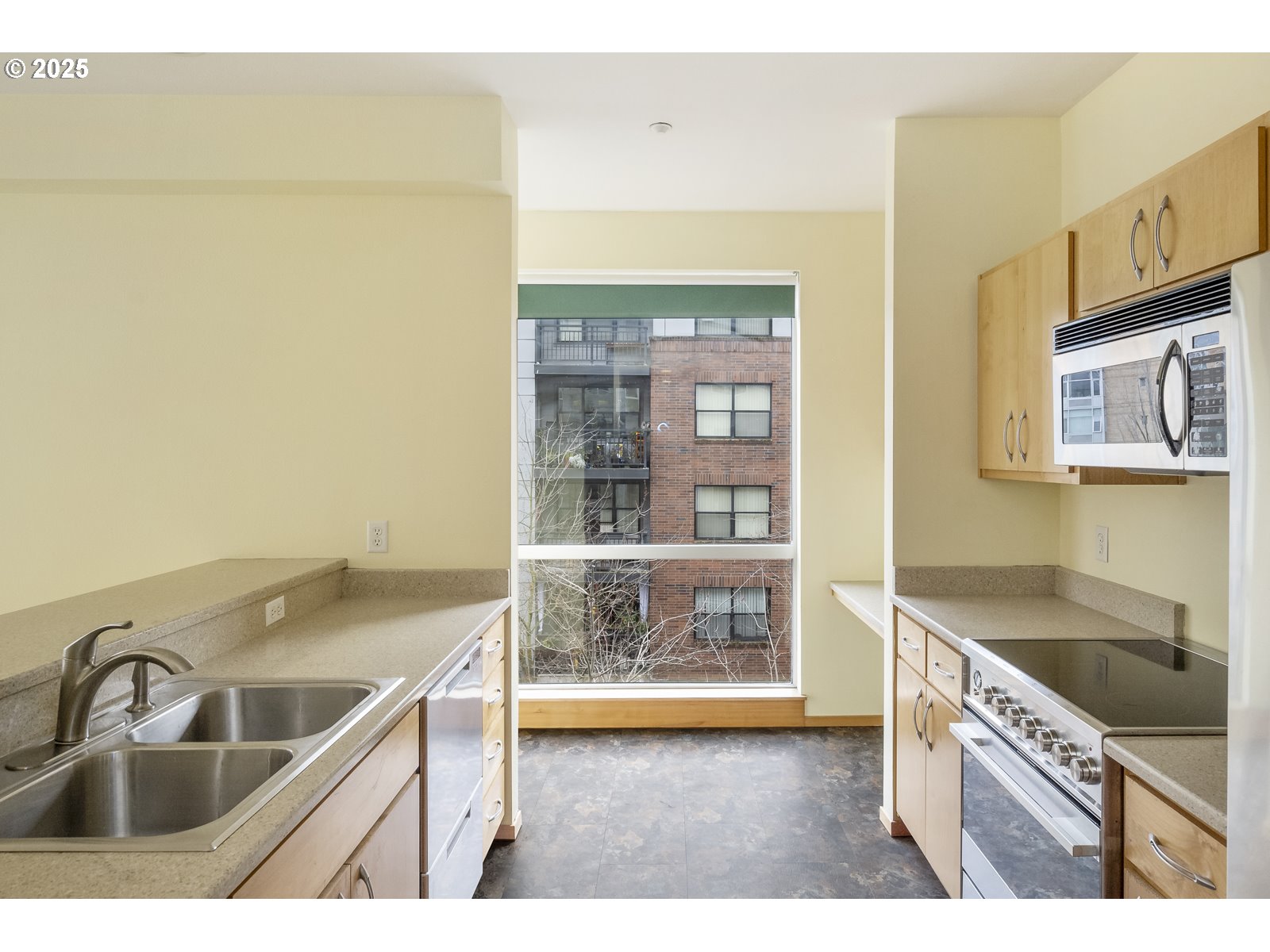 Welcome to this bright and airy two-bedroom, two-bathroom condo at Lexis On The Park! This prime south-facing unit is filled with natural light and offers a peekaboo view of the Broadway Bridge. Step out onto the private balcony off the kitchen, perfect for enjoying your morning coffee in the sunshine. The kitchen is equipped with an upgraded Fisher & Paykel induction range, French door refrigerator, and a double-drawer dishwasher, making meal prep (and cleanup) a breeze! Additional features also include a premium Electrolux washer and dryer. The unit comes with a parking space in the gated garage, along with a small storage unit. Residents of the building enjoy access to private outdoor spaces, a community room, and a gym. Around the corner from Tea Bar, Tanner Springs park and The Fields greenspace.