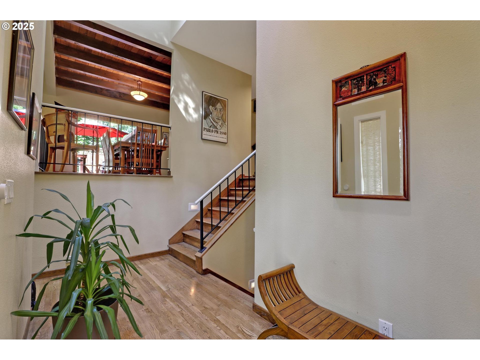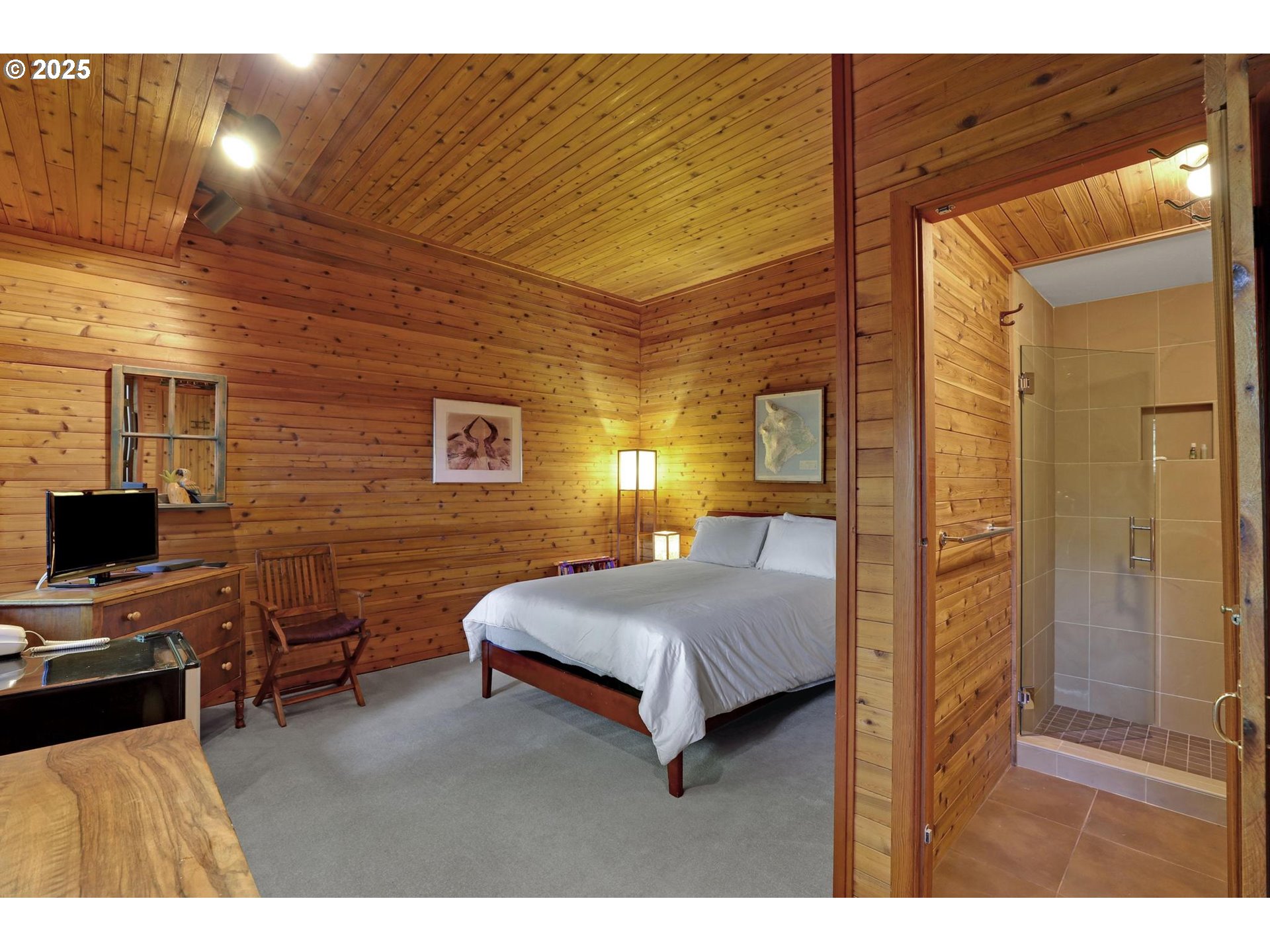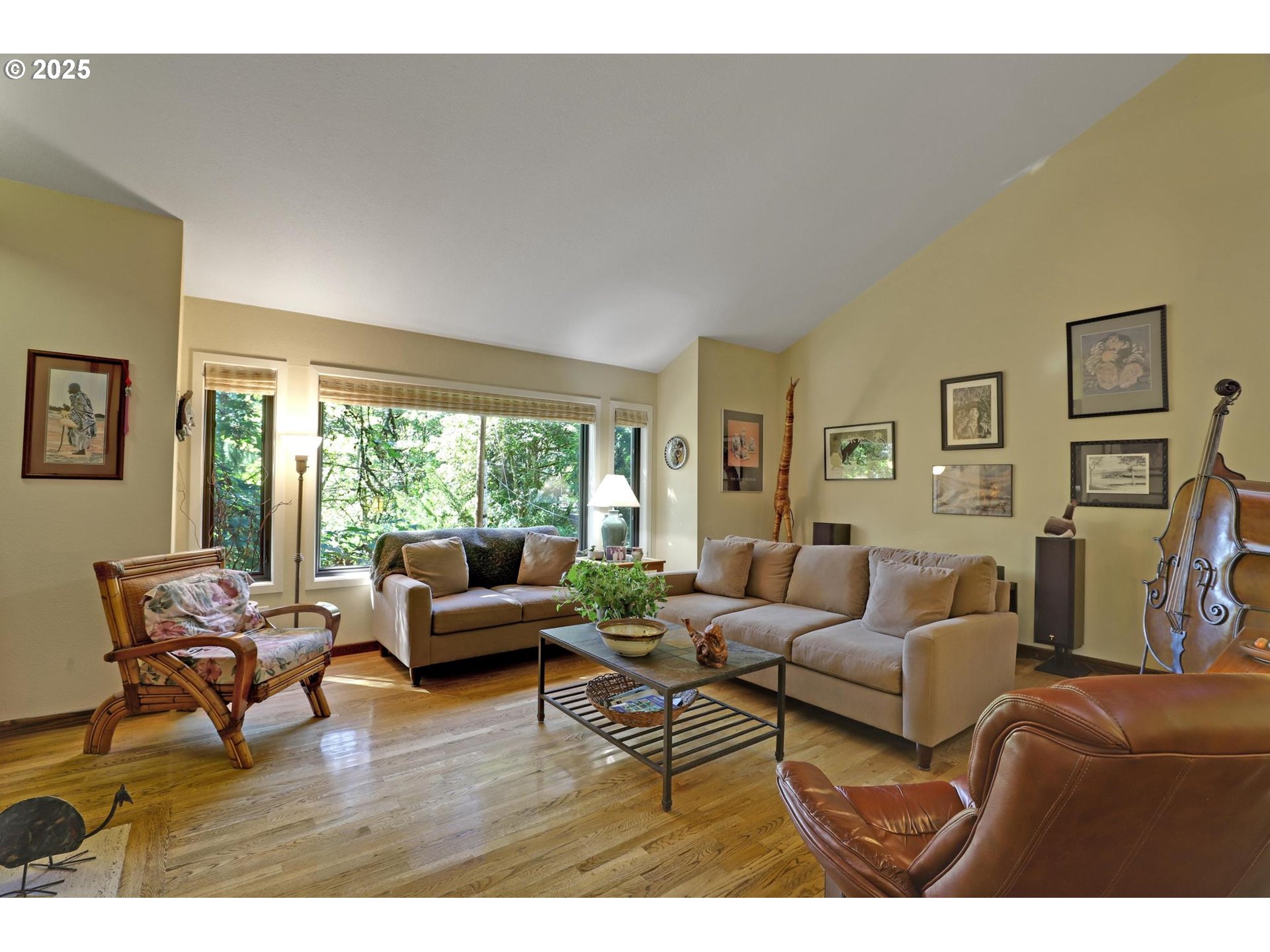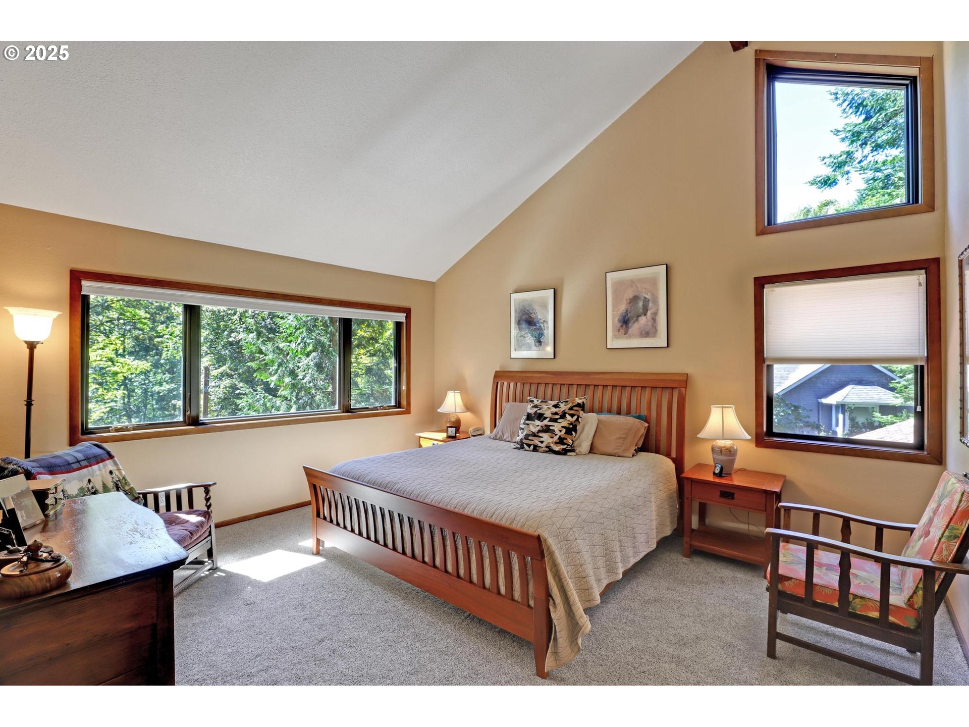 Open 11/9 from 2-4pm. John Storrs inspired NW Contemporary in the heart of the West Hills, perfectly situated between the Hillsdale shopping area and Farmer's Market, OHSU and the SW Trails. Filled with warm wood accents and soaring ceilings, and with walls of windows that bring the outside in, this home represents everything that the Pacific NW has to offer. The airy and open living and dining space is the heart of the home and has stunning vaulted ceilings, and sliding doors out to a sunny deck with forest views. Built to accommodate both elegant and casual entertaining, the kitchen features a Great Room, complete with vaulted ceilings, a wall of glass doors and a wood burning fireplace. The kitchen is a host's delight, with granite countertops, thoughtful storage, copious bamboo cabinets, double ovens, 5 burner cooktop and a breakfast bar. The primary suite features stunning South facing views of the forest with 2 walk-in closets, skylights and a special "port window" in the bath. There is a separate entrance to the guest suite, which features vintage knotty pine paneling in both the bedroom and bathroom. The two-car garage has plenty of space for vehicles and additional storage. [Home Energy Score = 1. HES Report at https://rpt.greenbuildingregistry.com/hes/OR10242008]