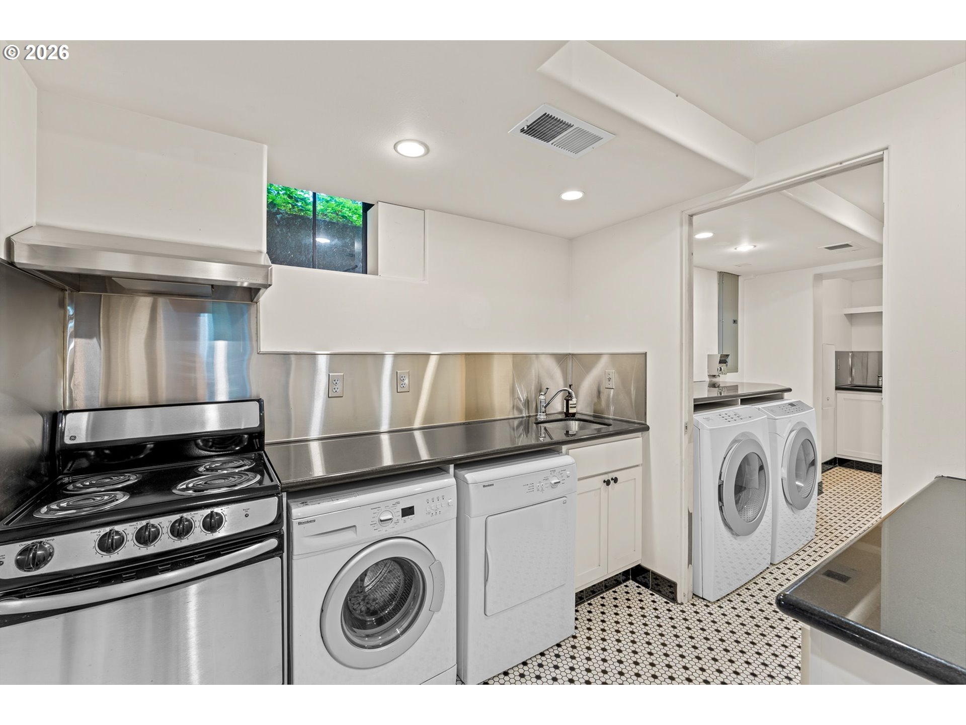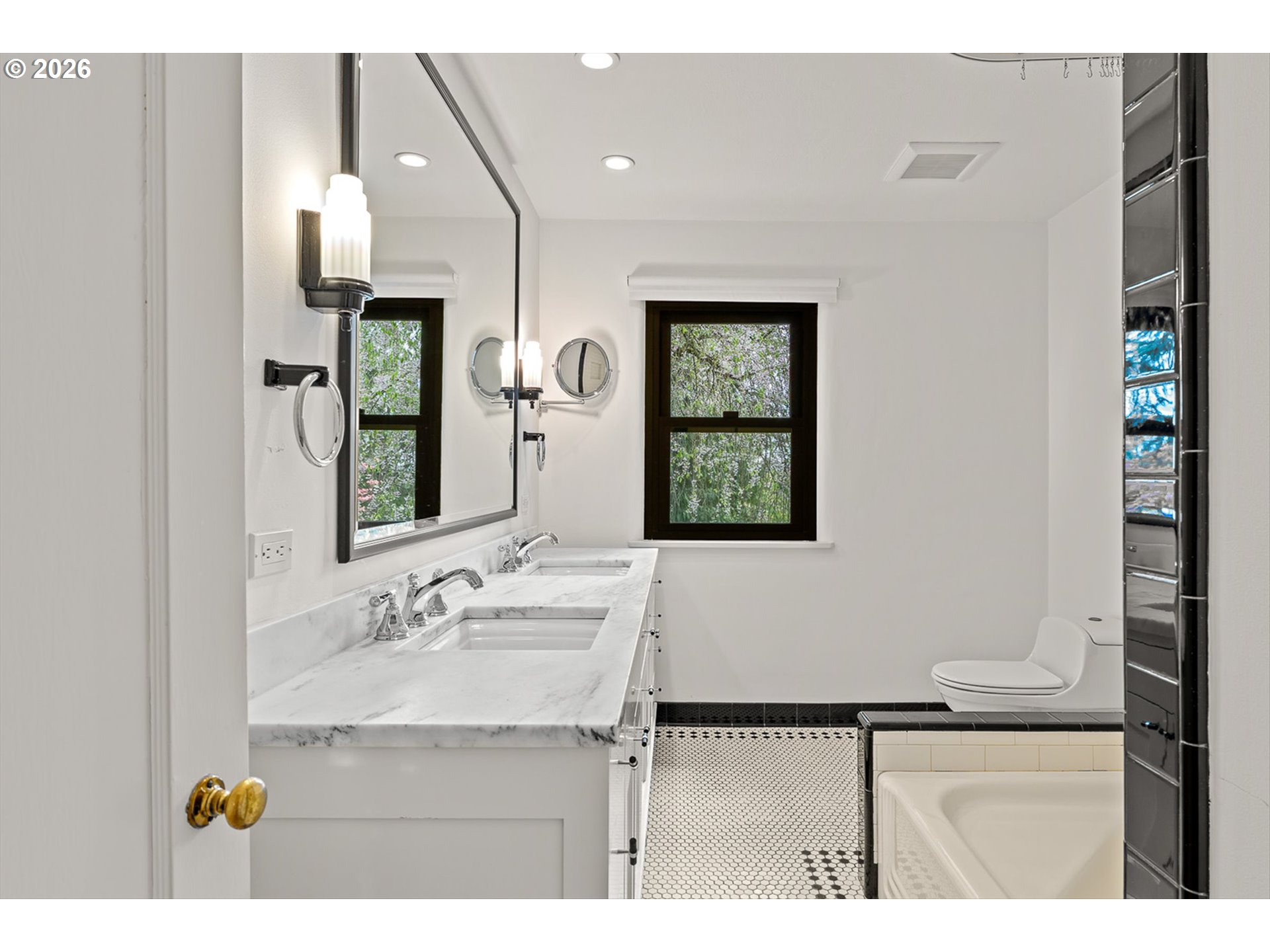 Beautifully situated in sought-after Dunthorpe, this charming 1949 gem has been lovingly maintained and thoughtfully updated over the years. Abundant natural light pours through picturesque windows, highlighting the home’s warm character and inviting spaces. The main level features high ceilings and an open, airy feel, with two bedrooms, a gourmet kitchen, a dining room, gleaming (just refinished) hardwood floors, and a light-filled sunroom. The lower level offers exceptional flexibility and could easily function as an ADU, complete with two bedrooms, a kitchen, double laundry, and a spacious bonus area with high ceilings and polished cement floors. Upper level has additional bedroom, 1/2 bath and office, stepping out to a large patio. Outside, enjoy the spacious deck, patio, and serene, park-like garden setting, providing a peaceful retreat. Located in this coveted neighborhood just minutes from Lake Oswego amenities, hiking trails, golf courses, Lewis & Clark College, and OHSU. Served by highly regarded Riverdale Schools.
