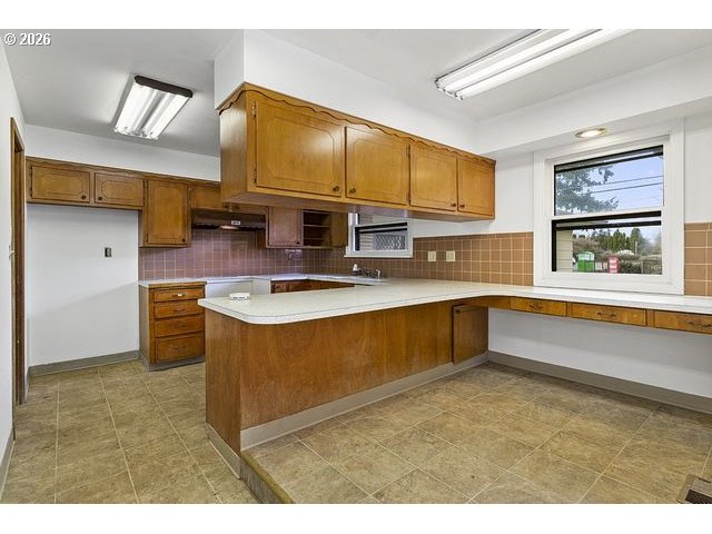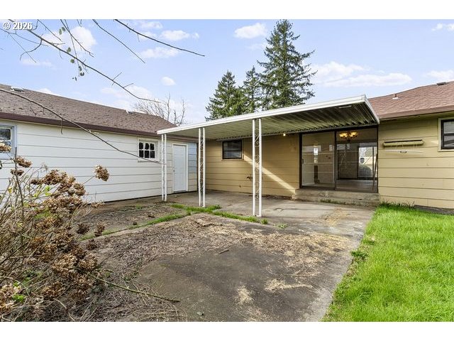 Hidden gem in Parkrose Heights ready for your updates and vision, this charming 1952 single-level brick ranch offers solid bones, original hardwood floors, a cozy wood-burning fireplace as the centerpiece of the spacious living room, and ample natural light from large windows throughout. The functional layout includes two bedrooms, one full bath, and a dated but spacious kitchen with built-ins awaiting modernization. Step outside to a large fenced yard with mature landscaping, a covered patio for outdoor enjoyment, and an oversized attached two-car garage. With good bones and a prime location near parks and easy access, this 1196 sq ft home presents an excellent opportunity for a starter residence or personalized remodel to unlock its full potential.
