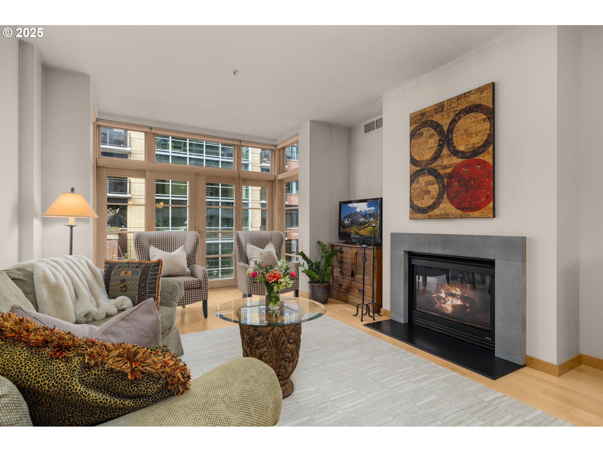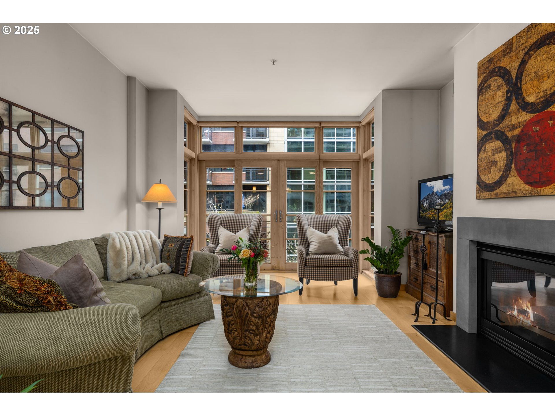 Inviting Bridgeport residence in the North Pearl District offers an ideal blend of urban style and comfortable living. The open floor plan features a light-filled main living area with warm hardwood floors, a modern fireplace and a Juliet balcony overlooking the neighborhood. The dining area flows easily into the living space, making it great for everyday living and entertaining. The bedroom is spacious and quiet with a large walk-in closet, while the full bath offers a clean, modern design with ample storage. A deeded parking space and storage unit are included. Just steps from Tanner Springs Park and a few blocks from The Fields, this home is close to restaurants, shopping, groceries, live music, theater and the Portland Streetcar. Available rental capacity.