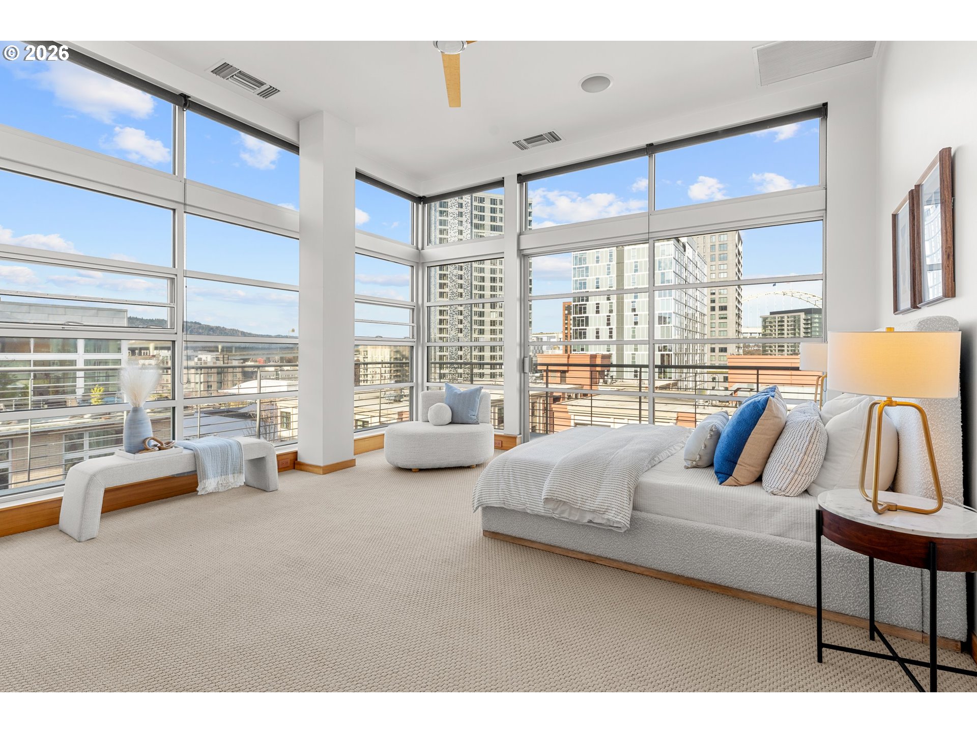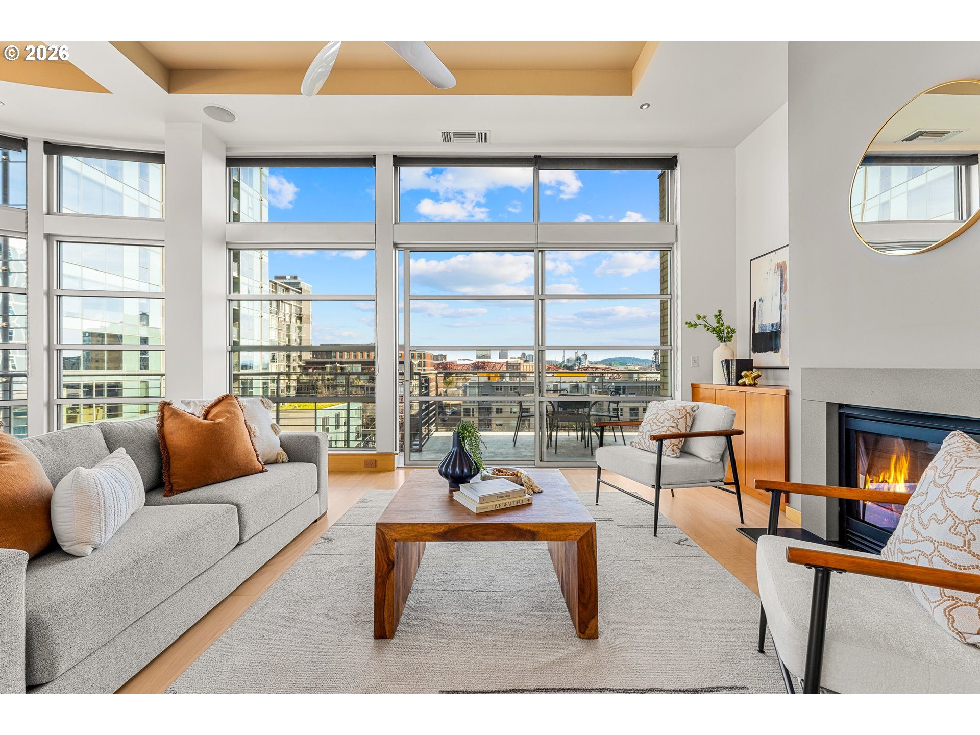(503) 893-8874Experience elevated city living in this meticulously maintained corner residence located in the heart of Portland’s sought-after Pearl District. Dramatic floor-to-ceiling windows showcase breathtaking 270-degree views overlooking Tanner Springs Park, with stunning vistas of Mt. Hood, iconic city bridges, and the river. An expansive wraparound deck seamlessly extends the living space, offering an ideal setting for entertaining or unwinding while taking in the ever-changing cityscape.The thoughtfully designed floor plan features two spacious ensuite primary bedrooms, each with walk-in closets outfitted with California Closets for exceptional organization and style. A versatile den provides the perfect space for a home office, media room, or guest retreat. Marble finishes in the bathrooms create a refined, spa-like atmosphere, while custom lighting throughout enhances the home’s modern elegance. Abundant storage and meticulous upkeep are evident at every turn.Set in the vibrant Pearl District, this residence offers unparalleled access to renowned dining, boutique shopping, art galleries, parks, and the city’s best cultural amenities—all just steps from your front door. A rare opportunity to enjoy sophisticated urban living, premier walkability, and truly remarkable views in one exceptional home.