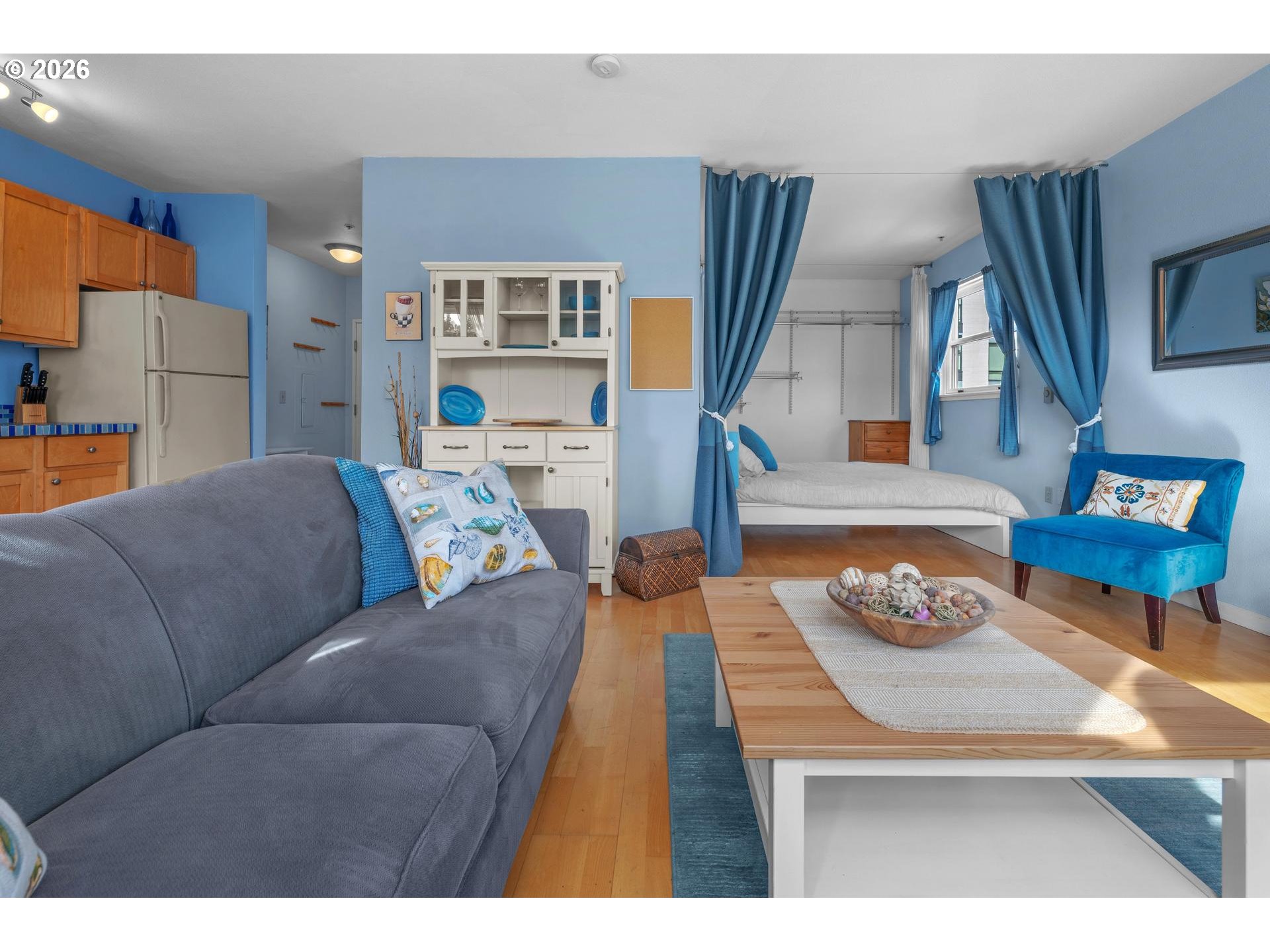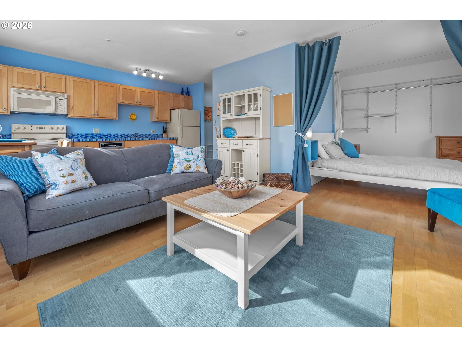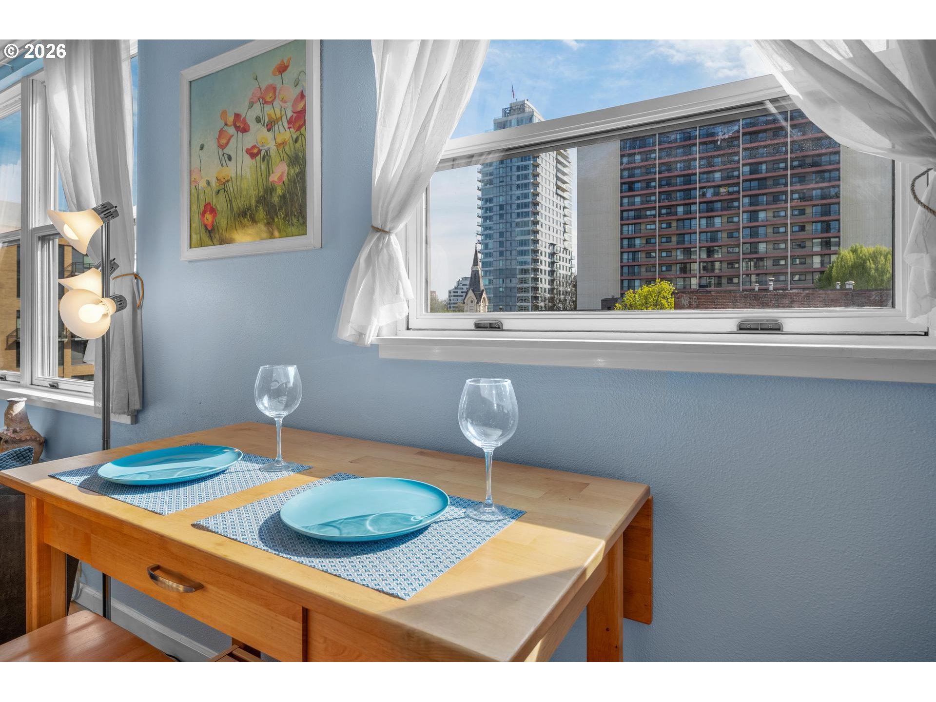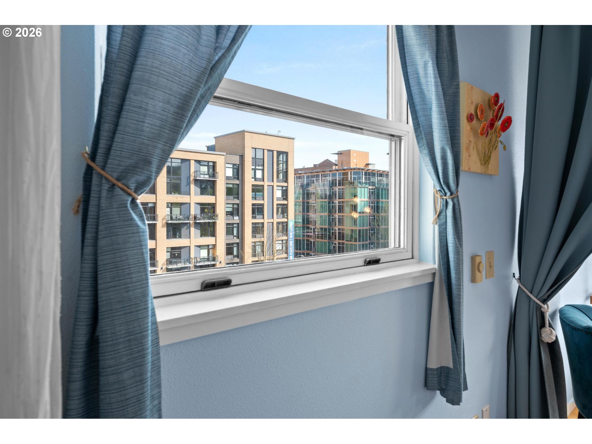 Live above it all in this sun-drenched top-floor corner loft, where natural light floods every space and expansive city views inspire your day. South-facing windows and soaring ceilings create an open, airy atmosphere, making the space feel larger than expected. The thoughtfully designed bedroom nook offers separation without sacrificing flow, keeping the main living area functional and inviting. Move right in—fully furnished at no extra cost—or make it your own! With no neighbor on your left and minimal noise from surrounding homes, this condo provides a rare sense of privacy—a true urban sanctuary. The oversized, contemporary bathroom features a sleek walk-in shower, balancing style with simplicity. Stay comfortable year-round with a dedicated AC unit, in-unit washer and dryer tower, and access to larger building laundry. Deeded secure storage and bike storage add even more convenience to city living. Perfect for homeowners and investors alike, this loft offers rental availability in a newer building with secure access and 24-hour security patrol, providing peace of mind and ease of living. Located just steps from the streetcar, commuting and navigating the city couldn’t be easier. Everyday essentials like Safeway, local coffee shops, and the vibrant South Park Blocks dining scene are all nearby. Walk to Portland State University, the popular Saturday Farmers Market, the recently expanded Portland Art Museum, Arlene Schnitzer Concert Hall, and the Oregon Historical Society. With the highly anticipated James Beard Public Market coming soon, this top-floor corner loft shines with sunlit rooms, coastal-inspired finishes, and the perfect blend of comfort, style, and convenience. See it, feel it, fall in love! Listing Video: https://media.coreyshelton.photography/wRZqGG2Y