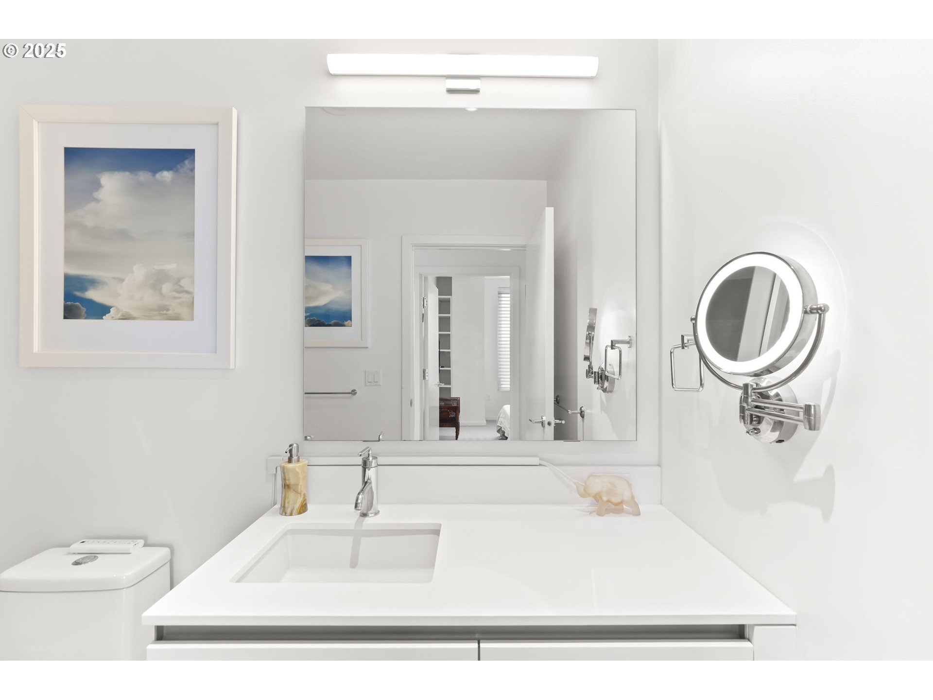 (503) 893-8874Fabulous, Pearl District condo in modern Vista Tower! This light-filled, modern one bedroom condo on the 4th floor features white oak hardwood flooring, recessed lighting and incredible views throughout.Living room is open-concept with a kitchen that features stainless Bosch appliance package with gas cooktop, built-in full size refrigerator, expansive quartz counters and island, and fabulous city and bridge views.The large bedroom includes a nook furnish able as an office or reading nook and an expansive walk-in closet with a California Closets storage system. Large format tile sets the bathroom floor and oversize shower with frameless glass, plus a quartz vanity and bidet toilet.This unit also offers a deeded parking spot 4th floor (no up/down steps from car to condo), deeded storage unit, an no upstairs neighbors - as the amazing rooftop terrace is immediately above on the 5th floor. This rooftop is a huge, green plaza, complete with trees and other foliage, BBQ, modern wood benches with fire pit, and more views of the city and riverscape. The 5th floor also includes a meeting space, beautiful community room with media and fireplace, plus two “hotel” guest suites that can only be reserved by condo owners for their guests. The building continues with luxury amenities; including a beautiful secure lobby with 24 hour concierge, ground floor bike storage, fitness room, pet wash station, a second lobby facing The Fields Park.The Vista sits in the heart of the Pearl District, with views and walkability to parks, shops, dining, entertainment, galleries and more!