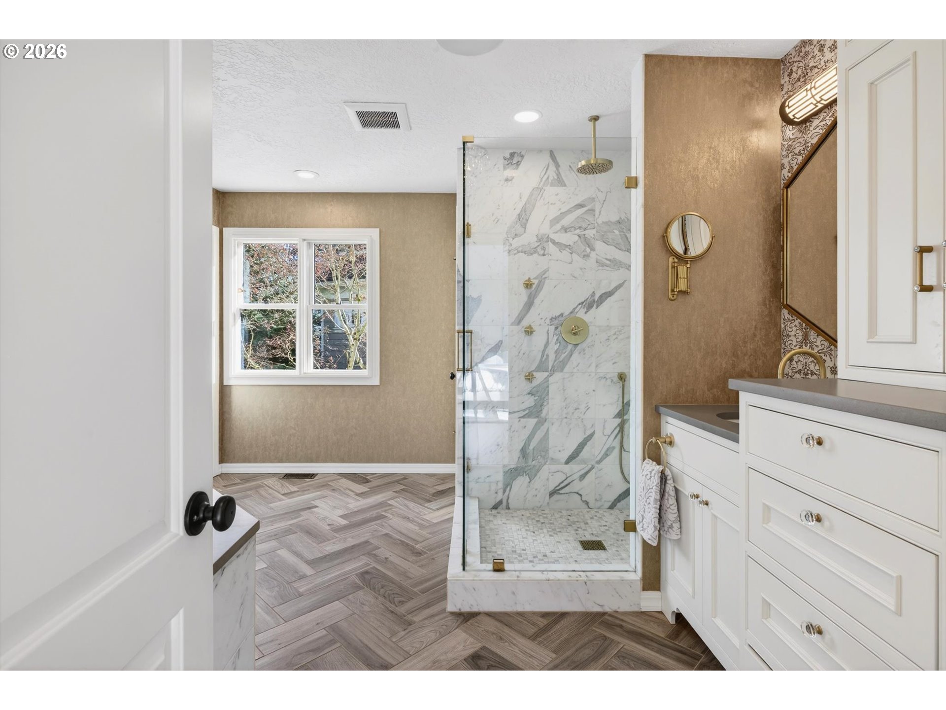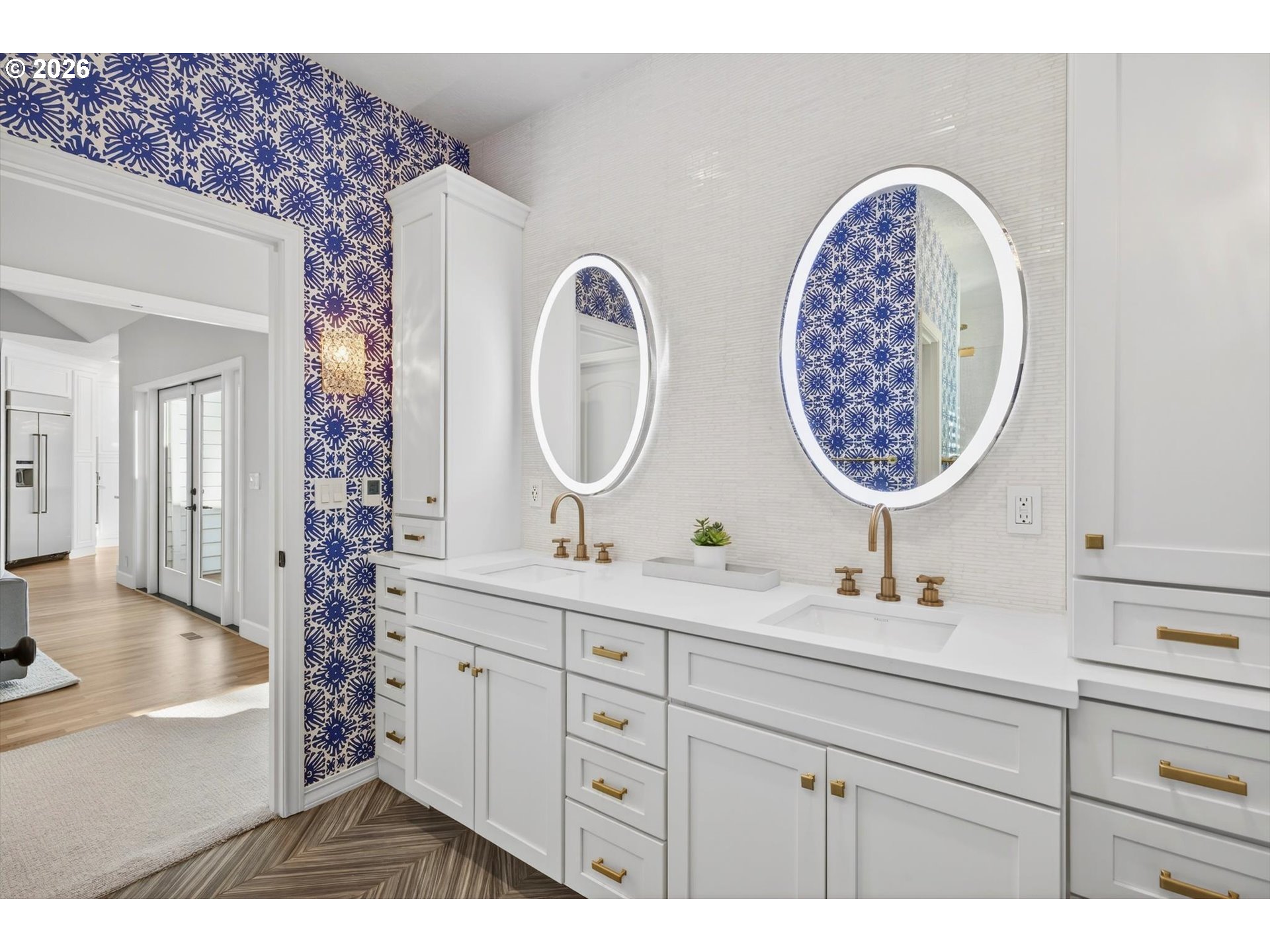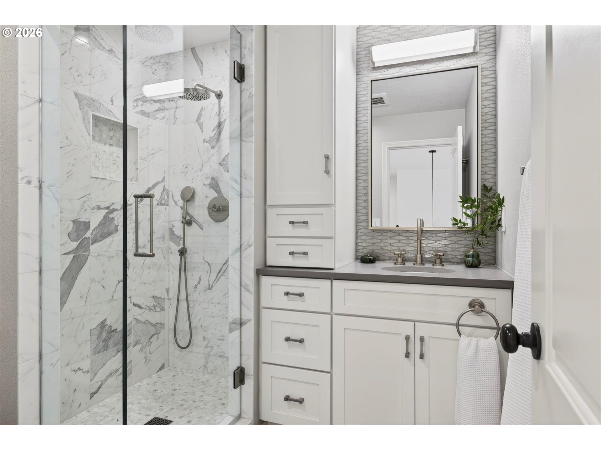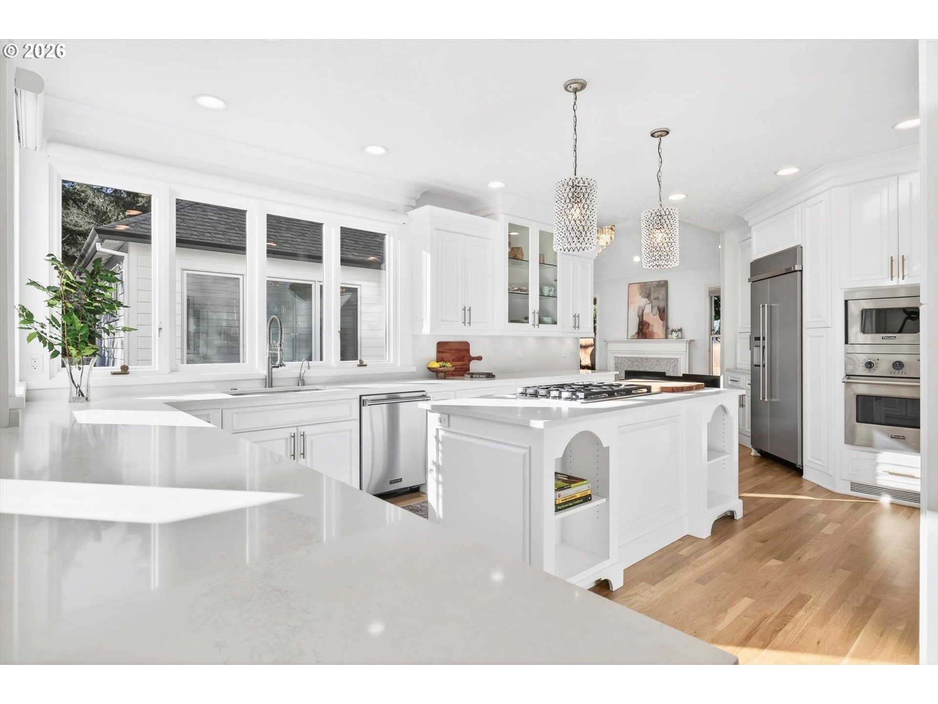 Set along one of Dunthorpe’s most beautiful streets, this Riverwood Road traditional home has been beautifully updated and reimagined with a focus on craftsmanship and livability. From heated marble bathroom floors to bespoke millwork and designer lighting, every update was chosen to honor the home’s classic lines while elevating it for modern living. CHEF’S KITCHEN & INVITING LIVING SPACES: The sun-drenched kitchen is finished in Calacatta marble with custom cabinetry, an oversized island, and Viking appliances, and seamlessly flows to formal and informal dining, media spaces, and a secluded outdoor patio. Two fireplaces and beautifully scaled rooms create inviting spaces for both everyday life and entertaining. FLEXIBLE FLOOR PLAN WITH DUAL PRIMARY SUITES: Two spacious primary suites—one on each level—offer rare flexibility for guests, multigenerational living, or work-from-home needs. A formal main-level den with closet can easily function as a fifth bedroom or office. PRIVATE GROUNDS & OUTDOOR AMENITIES: The beautifully composed grounds feature lush landscaping, a jasmine-covered trellis, garden beds, low-maintenance turf, fenced dog run and a sport court for year-round enjoyment. UNBEATABLE LOCATION: Enjoy river access just a stroll down the road for paddle boarding, fishing, and swimming, with an easy commute to downtown Portland or the heart of Lake Oswego. Located in Riverdale School District, Oregon's #1 rated public school system by Niche, this is a rare opportunity to enjoy refined living in the heart of Dunthorpe.