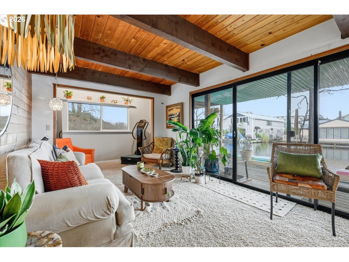 Spacious and full of natural light, this floating home offers expansive living areas on both levels with an open-concept design. The kitchen features granite countertops and flows seamlessly into the main living space, where a slider opens to the upper wraparound deck with stunning river views and a front-row seat to the Christmas Ships parade.Currently configured as two separate units, the lower level is rented for $1,600 per month and includes a private bedroom, efficiency kitchenette, generous living space, and covered deck access—providing immediate income potential. Both units share a washer and dryer for convenience.The home could easily be converted back into a beautiful two-story residence, featuring two wraparound decks and two private boat slips right out front. A craftsman-style tool shop adds the perfect space for projects, storage, or hobbies.With secured parking, room for two boats, flexible living options, and unforgettable views, this home is ideal for full-time waterfront living or the perfect part-time river retreat.