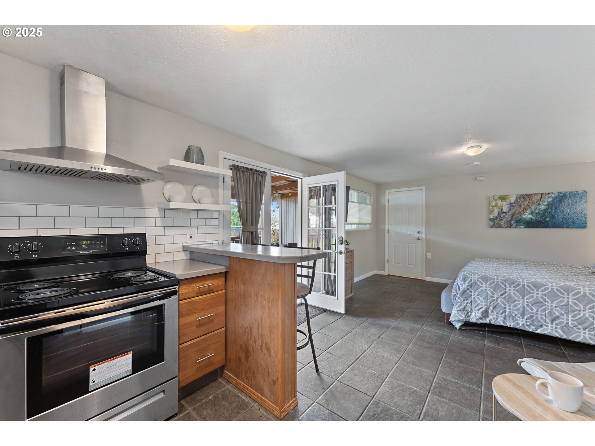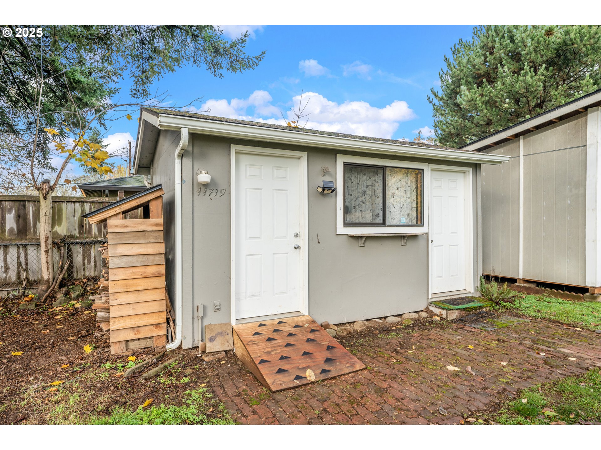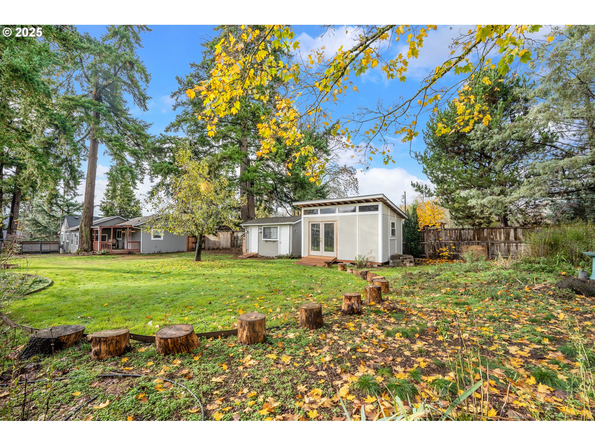 Versatile single-level home on an expansive SE Portland lot with development potential of an ADU, duplex, or other options (buyer to do due diligence). The main house features 2 bedrooms, a large bathroom, laundry room, and a spacious kitchen/dining area with stainless steel appliances, updated cabinets, subway tile backsplash, and butcher block counters. A studio-style ADU includes its own exterior entrance, full bathroom, and a generously sized kitchen with full range and hood, F/S refrigerator, and F/S microwave—ideal for guests, rental income, or multigenerational living. The substantial backyard includes a tool shed and a vaulted bonus outbuilding perfect for an art studio, workshop, gym, office, or storage. RV parking adds extra convenience. A rare opportunity with flexibility and room to grow.