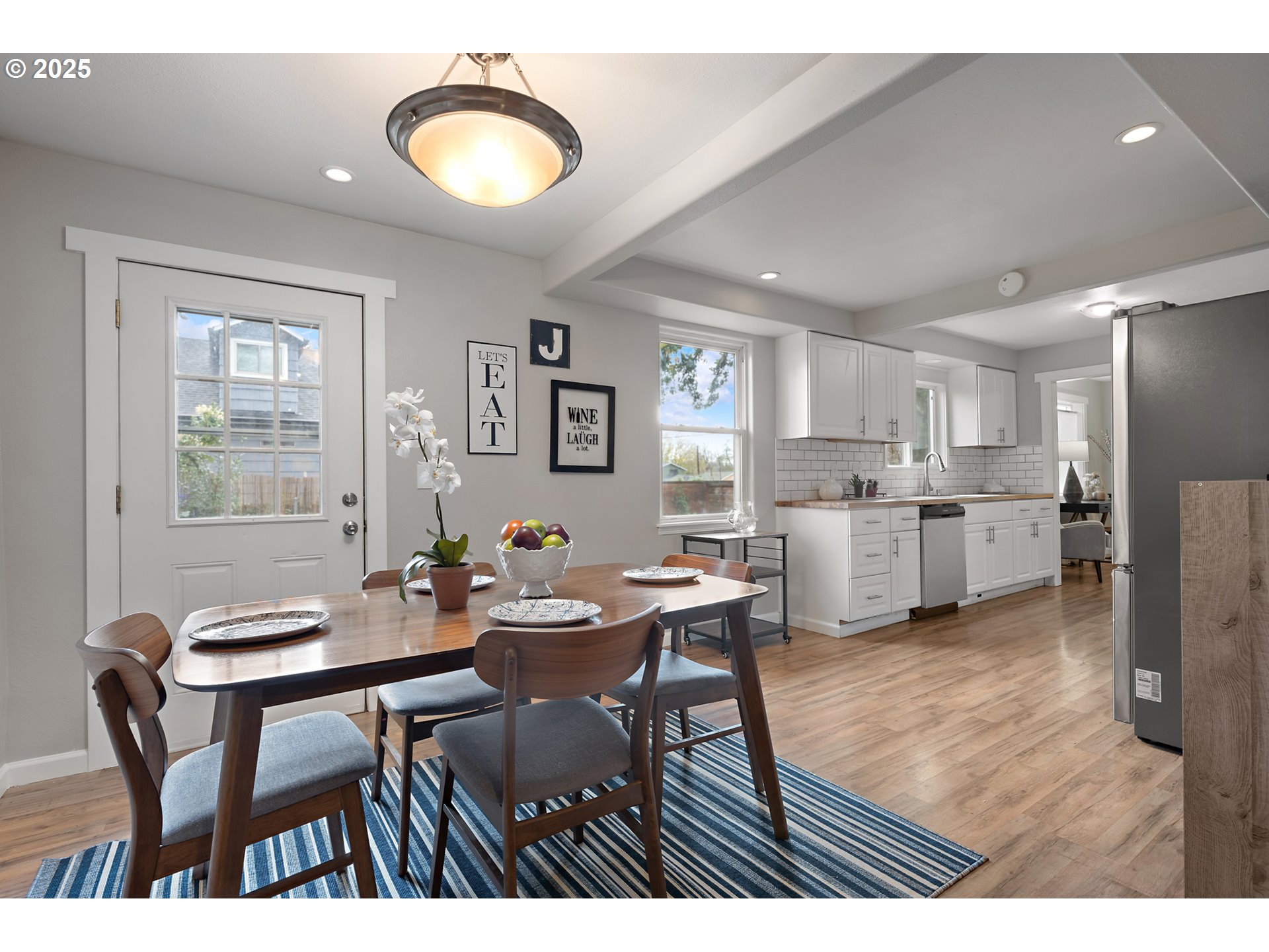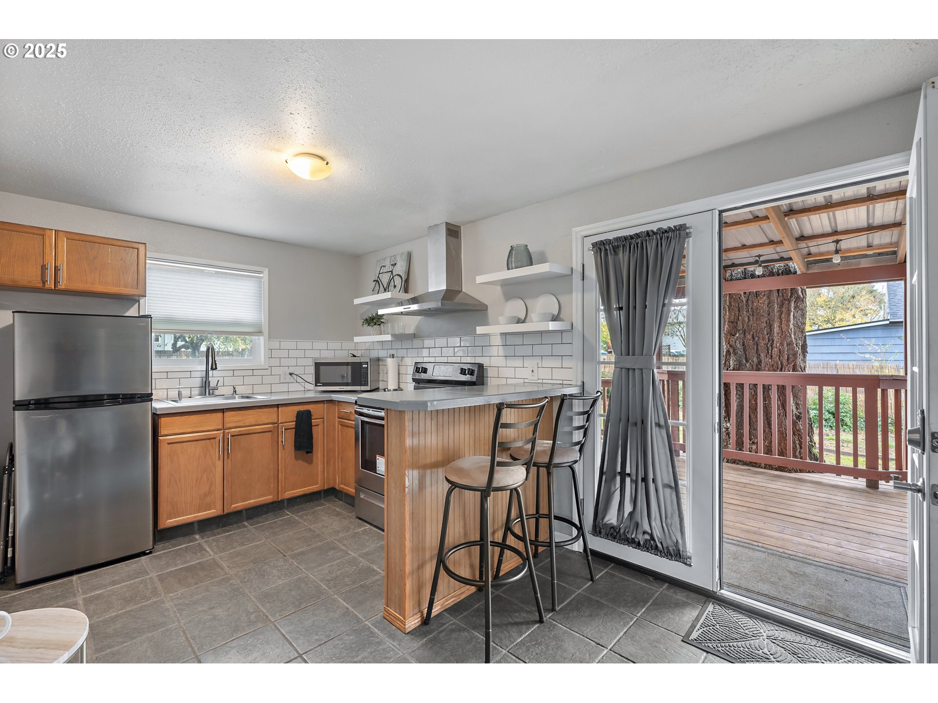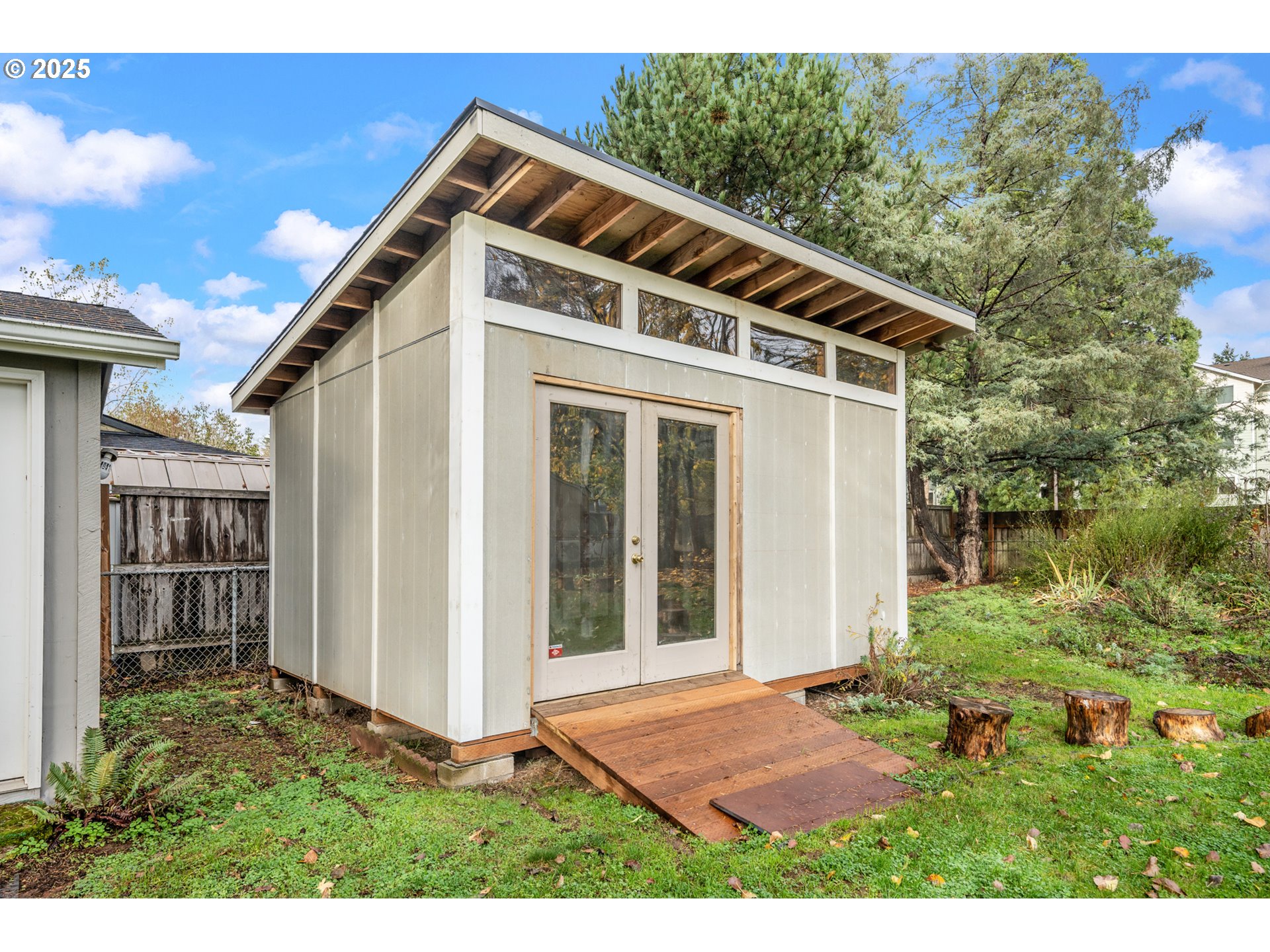 Versatile single-level home on an expansive SE Portland lot with development potential of an ADU, duplex, or other options (buyer to do due diligence). The main house features 2 bedrooms, a large bathroom, laundry room, and a spacious kitchen/dining area with stainless steel appliances, updated cabinets, subway tile backsplash, and butcher block counters. A studio-style ADU includes its own exterior entrance, full bathroom, and a generously sized kitchen with full range and hood, F/S refrigerator, and F/S microwave—ideal for guests, rental income, or multigenerational living. The substantial backyard includes a tool shed and a vaulted bonus outbuilding perfect for an art studio, workshop, gym, office, or storage. RV parking adds extra convenience. A rare opportunity with flexibility and room to grow.