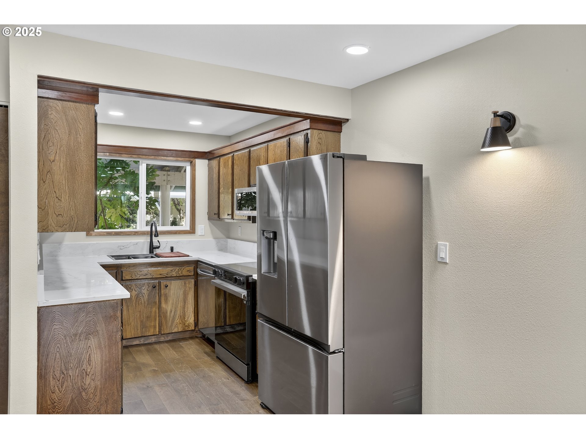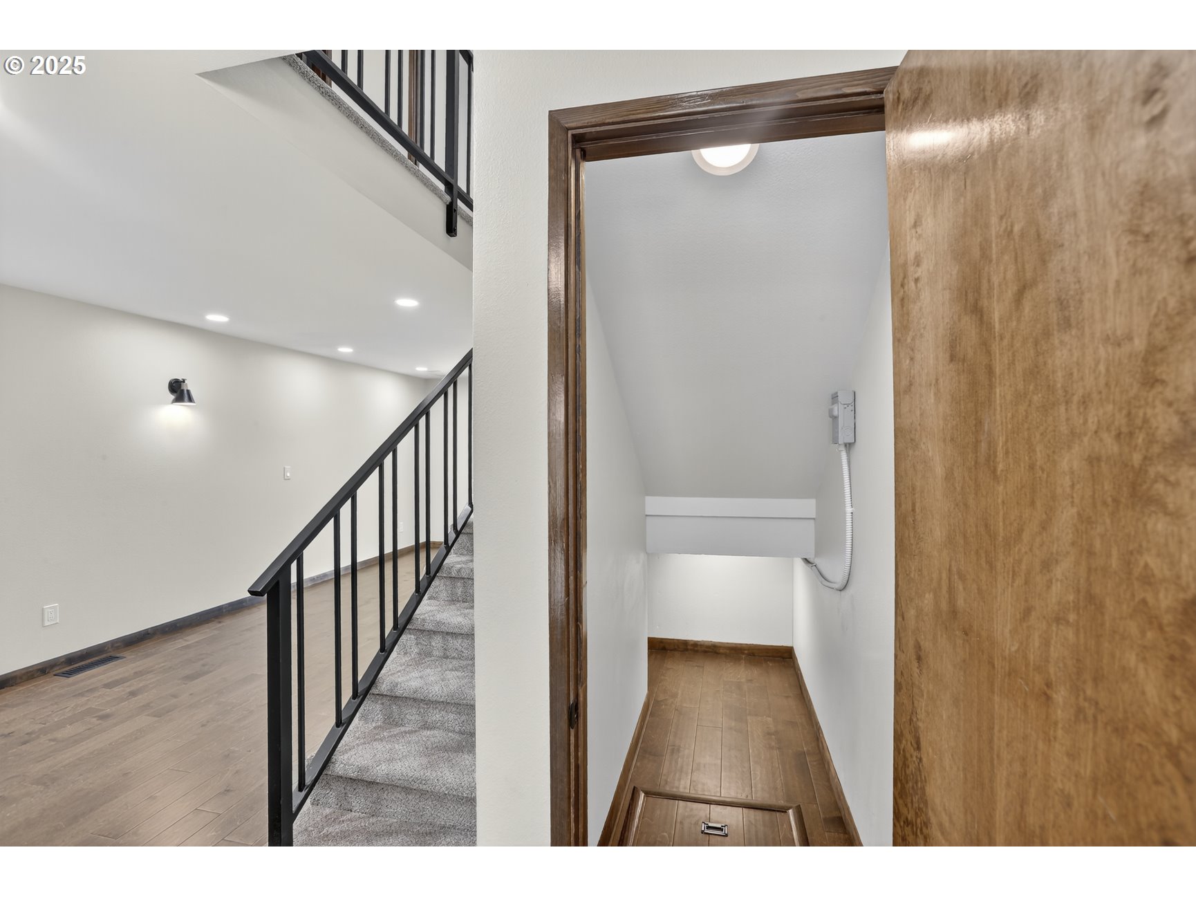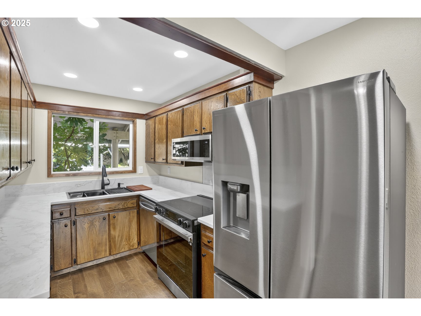 (503) 893-8874Vintage charm meets Modern amenities in this over-the-top restoration-renovation at Jantzen Beach Village! No surface was left untouched in this methodical and tasteful revitalization. Step back in time with period light fixtures and restored fir millwork, doors, and kitchen cabinetry, juxtaposed amongst all new mechanical systems, surfaces, & fixtures. You won't find any grey LVP nor white pressboard trim in this unit; quality abounds! New air handler, oversized heat pump, water heater, electrical panel, & new lifetime warranty Milguard windows and doors for lowest possible electric bill! NO popcorn ceilings in this unit! Abated to make way for all adjustable-zoned led recessed and fixture lighting throughout! High end Samsung appliances round out the monthly savings! The kitchen has 1" quartz slab, backsplash, and modern black stainless sink. Convenient motion and light sensor led lighting in under stair storage and rear shed will brighten the space as you open, turn off if forgotten! The main level boasts glue down engineered hardwood flooring & stained hemlock baseboards. Vintage abounds in the 1/2 bath with black hex tile flooring, restored 70's yellow sink and toilet, accompanied with black hardware & fixtures. A custom black railing ascends to the upper level & brand-new carpeting with upgraded pad is firm & cozy underfoot! Bedrooms have central lighting with remote ceiling fans, solid wood stained & painted millwork, & motion / light sensing lights in closets. The upstairs bath is a work of art with heated porcelain tile floors, walk in shower, high end vanity with soft close, slab top, dual undermount sinks; all in brushed gold, carrying the vintage vibe! And why not..A heated bidet! Attention to detail, period restored elements, all new mechanicals, quality fixtures, fit, & finish make this a truly 1 of a kind renovation! Unit comes with a deeded carport, rear patio, and access to all the amenities Jantzen Beach Village has to offer!! Permits Approved.