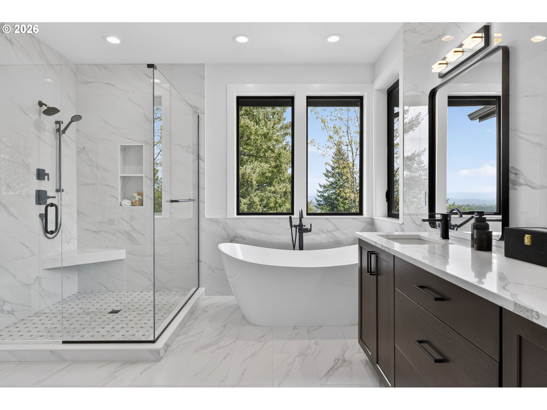 (503) 893-8874Modern luxury meets incredible views in this Lake Oswego Mt. Park new construction home! Overlooking Mt. Hood and the valley and designed with intention and style, this home features hardwood floors, sleek black vinyl windows, and high-end finishes throughout—from statement lighting and custom railings to horizontal grain cabinetry and floor to ceiling tiling. The gourmet kitchen is the heart of the home, complete with quartz countertops, a large island with an eat bar, European-style stainless steel appliances, wine fridge, walk-in pantry, 3D tile backsplash and soft close cabinets and drawers. Built-in appliances! The great room centers around a dramatic floor-to-ceiling tiled fireplace and french doors leading to the outdoors. Take in the views year-round from the expansive covered deck or unwind on the covered patio, fully equipped for entertaining with a gas BBQ hookup. Retreat to the primary suite with a spa-inspired bathroom featuring a frameless glass shower, soaking tub, and walk-in closet. Other notable features: tankless water heater and oversized 3-car garage with EV charging. HOA provides access to a premier community center offering an aquatic center, fitness facilities and classes, basketball and tennis courts, social spaces, walking trails, neighborhood activities and seasonal events. This home offers both lifestyle and design-grab it before it's gone!