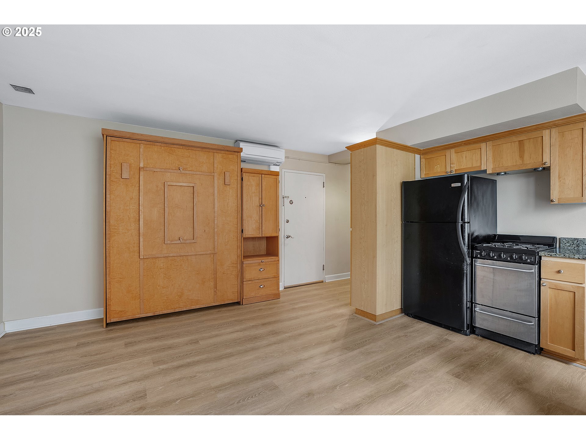 Charming Studio at Cardinell View Lofts! This thoughtfully designed studio offers a spacious feel with a smart, efficient layout. The Murphy bed with built-in storage maximizes the living area, while sleek, updated flooring flows throughout. The kitchen features granite countertops with plenty of storage. The modernized bathroom also features additional storage space. Enjoy year-round comfort with a mini-split system for heating and cooling. Large windows flood the space with natural light and offer a peaceful view of the surrounding trees. Conveniently located on the same floor, a private washer/dryer combo unit adds extra convenience. Close proximity to the farmers market, local college, downtown, and the vibrant cultural district. Plus, there’s no rental cap, making this an excellent investment opportunity!