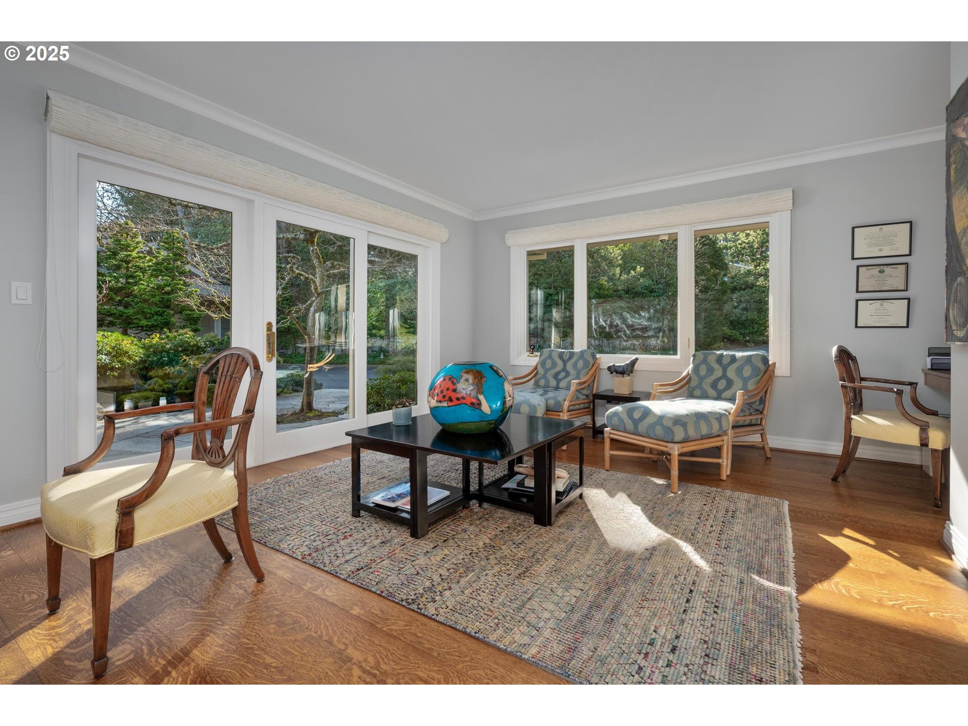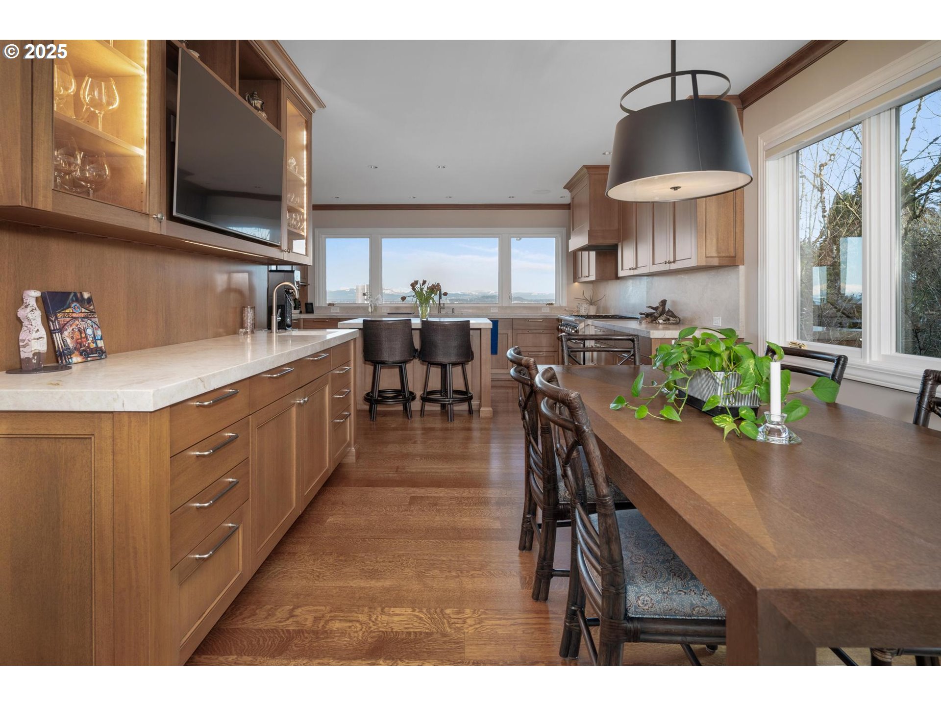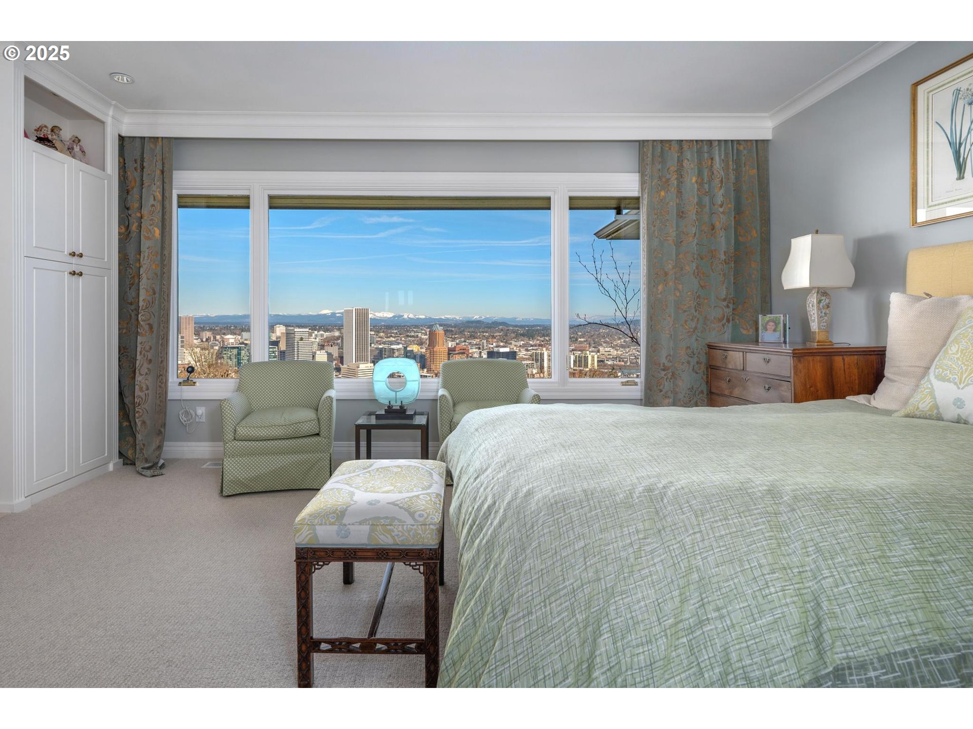 Perched above the city, this mid-century masterpiece has been meticulously remodeled with no detail overlooked. Nestled privately down a long driveway, the home welcomes you with breathtaking, panoramic views of the Portland skyline and surrounding mountains. A seamless blend of timeless design and modern luxury, the home offers a sophisticated and serene lifestyle.The oversized deck is perfect for taking in 180-degree views, while the tranquil Japanese-inspired gardens below, designed by Kurisu, provide a peaceful retreat. The expansive primary suite is a true sanctuary, featuring a walk-in closet and a spa-like bathroom with heated floors. With mostly main-floor living, the primary suite and secondary laundry space are conveniently located on the first floor. The lower level offers a beautiful secondary bedroom suite, a sauna, an impeccably designed wine cellar, a family room, workout space, and additional laundry facilities. Other highlights include a 4-car garage, generator, and sleek, sophisticated finishes throughout. This home is an unparalleled blend of luxury, comfort, and style in one of Portland's most coveted neighborhoods. [Home Energy Score = 4. HES Report at https://rpt.greenbuildingregistry.com/hes/OR10235971]