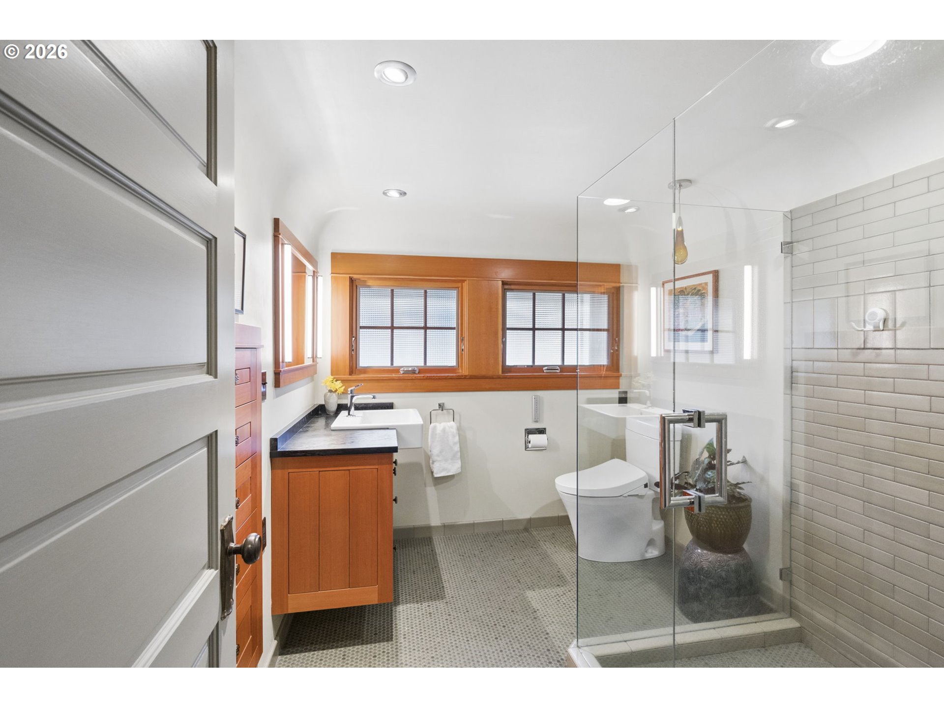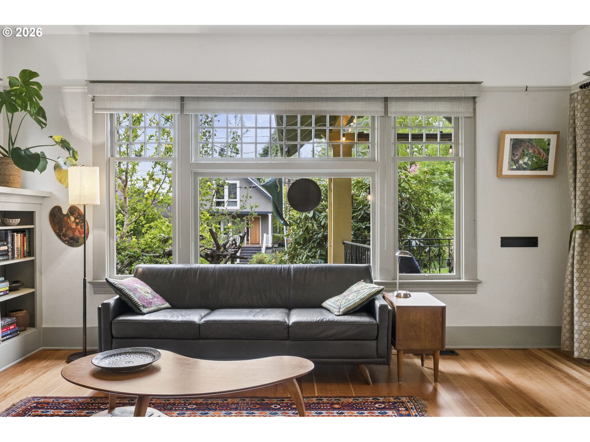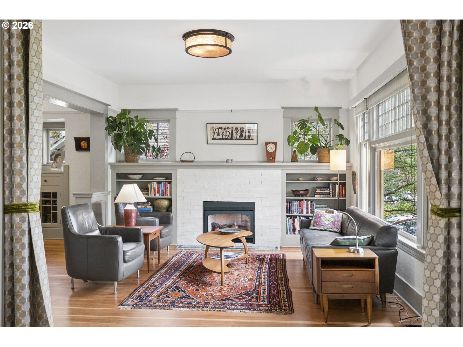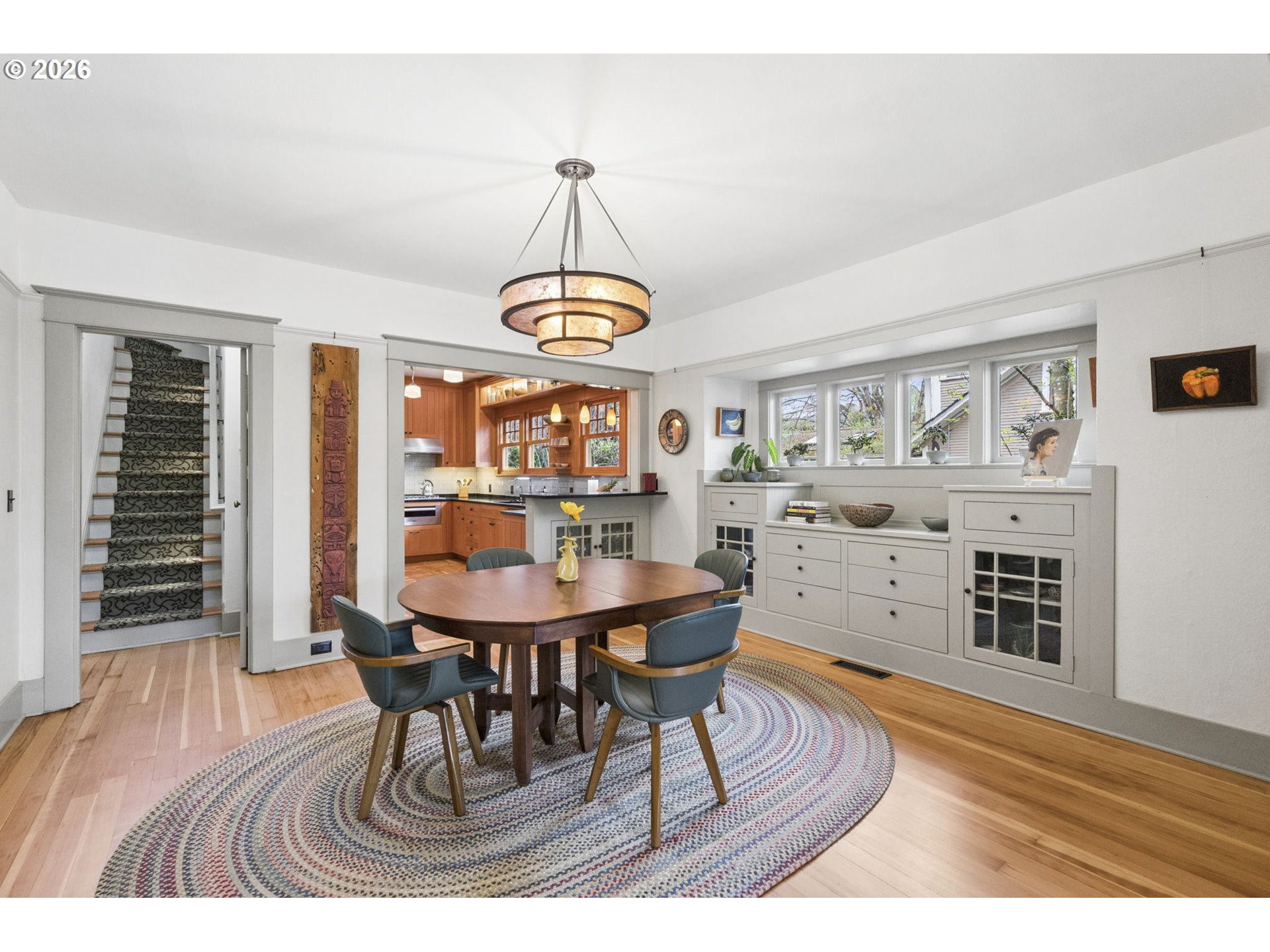 A remarkable renovation of this classic 1909 Craftsman in the heart of Mt. Tabor. Beautifully refinished fir floors were just completed and are featured throughout the main floor. Entering from the idyllic front porch into the surprisingly spacious entry, the living room showcases a lovely gas insert and classic built-ins, while the generous dining room opens to an impressive kitchen—ideal for entertaining. Unique end-grain floors in the kitchen complement custom fir cabinetry, soapstone counters, and high-end built-in appliances. Two bedrooms on the main level share a timeless, fully renovated bath. Upstairs continues to honor the home’s classic roots with beautiful floors, stunning coved ceilings, an additional full bath, and a convenient laundry room. The full basement offers a dream shop space with air filtration, exterior ventilation, and a separate electric heat system. A sweet mudroom off the back leads to a charming backyard with lush landscaping and a private patio—perfect for summer dinners. A truly special home showcasing a level of quality rarely seen. [Home Energy Score = 5. HES Report at https://rpt.greenbuildingregistry.com/hes/OR10247051]