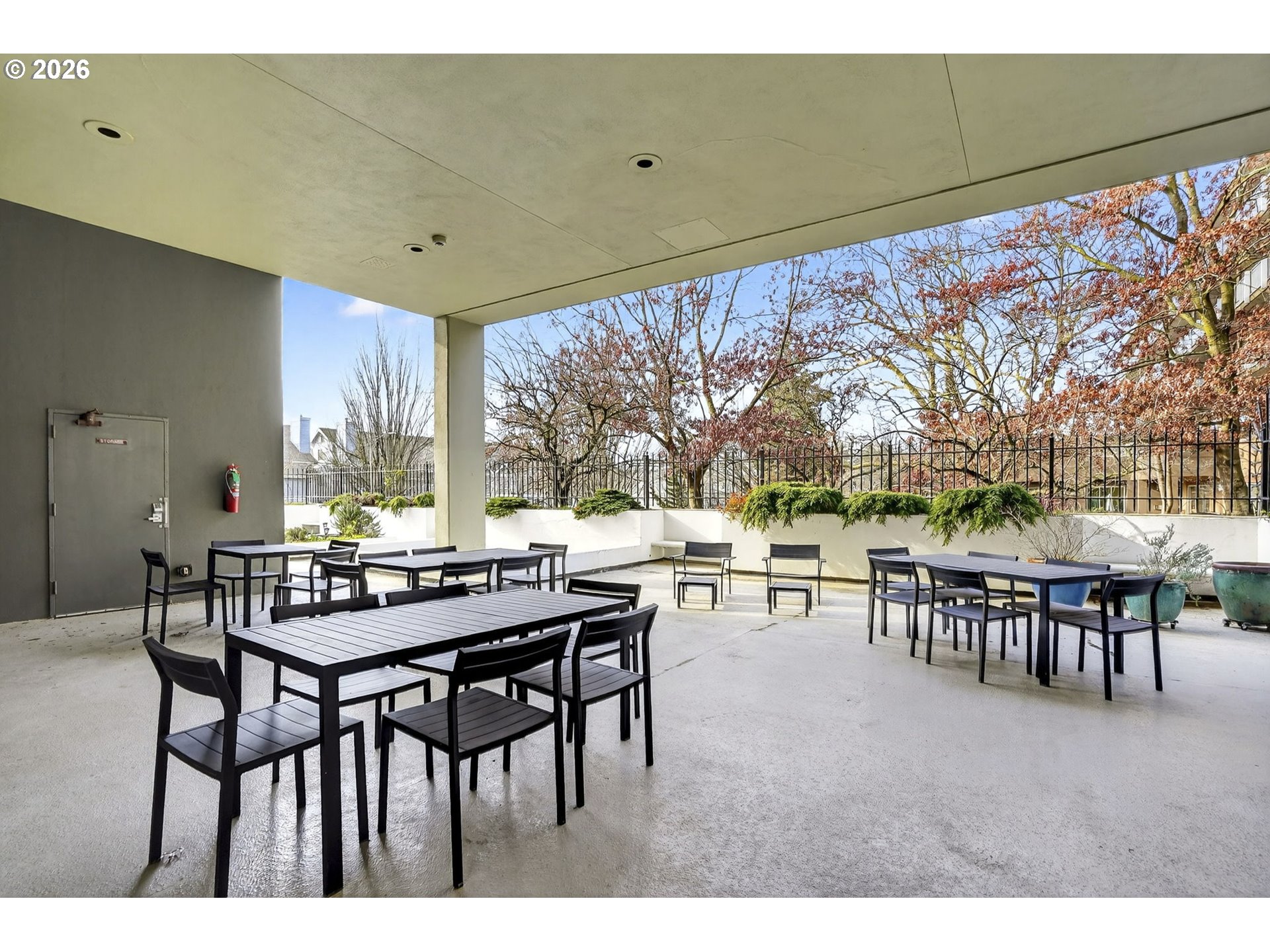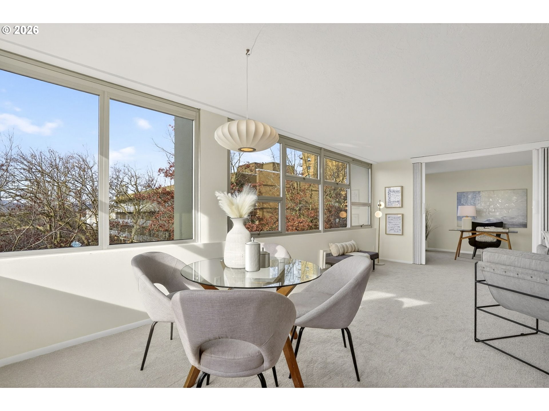 Step into the Fontaine - Portland’s iconic mid-century classic - and live right in the middle of it all. This is city living with style, minutes from favorite restaurants, coffee spots, shops, groceries, and every commute option imaginable. Inside, a spacious great room is drenched in natural light, thanks to walls of windows that frame leafy treetop views. The flexible open layout allows the potential second bedroom to flow seamlessly into the living space—or double as a sleek den or home office.Fresh interior paint and new carpet set the stage for your own design moment. The well-run, financially solid HOA fosters an engaged community and offers standout amenities: a serene outdoor patio with bubbling fountains (perfect for gatherings), secure individual storage, and a show-stopping rooftop. Take in 365-degree city and mountain views, fireworks included, from cozy lounge corners or the reservable rooftop community room - ideal for casual get-togethers or meetings. Stylish, social, and effortlessly cool - this is a fantastic place to call home.