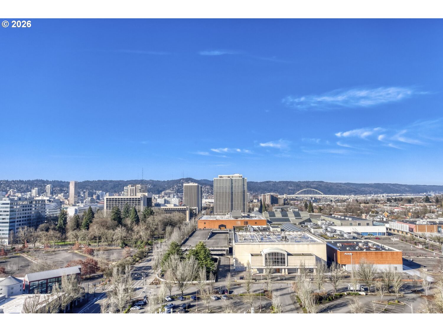 A rare offering at The Fontaine. Morning light pours through southwest-facing windows, bathing the home in a warm southern exposure as Portland stirs below. Expansive views captivate: layered rooftops, iconic bridges across the Willamette, and the majestic West Hills. This panorama, with seasonal glimpses of mature trees, allows you to watch weather roll in from the west and sunsets in the evening. A vista that never becomes ordinary.Timeless charm meets modern comfort in this thoughtfully appointed condo. The Fontaine's exquisite wood craftsmanship shines with elegant louver doors, classic brass hardware, and a charming pocket door. These details are integrated with modern comforts, including central HVAC. Hardwood floors lead to an expansive, updated kitchen with granite countertops, perfect for daily living and entertaining. The open layout allows natural light to create an expansive and comfortable atmosphere.Practicality meets luxury. One of the few homes with two deeded parking spaces: one on the surface, one in the garage for easy street access. Ample storage for bikes, gear, and seasonal items. This move-in-ready home is a great place to build community, spacious enough for family and friends.Outside, the vibrant neighborhood beckons. Restaurants, shops, and coffee roasters are steps away, making for a truly walkable life. Whether a market run or a weeknight dinner, this prime location delivers.This is more than a condominium; it is a coveted foothold in one of Portland's most livable corners, offering a front-row seat to the city's dynamic skyline and the kind of daily rhythm that reminds you why you chose urban living in the first place.