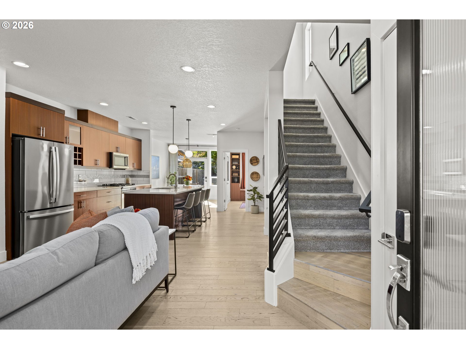Located in the heart of Sellwood, this 2016-built townhome combines modern design, energy efficiency, and exceptional walkability. With a Home Energy Score of 9, no HOA dues, and thoughtful updates throughout, this home offers comfortable, low-maintenance living in one of Portland’s most desirable neighborhoods. This light-filled home features high ceilings, expansive windows, a detached garage, and an open-concept layout designed for today’s lifestyle. The main level includes wood flooring, a gas fireplace, custom built-ins, a convenient half bath, and a versatile bedroom perfect for a home office or guest space. The gourmet kitchen is equipped with quartz countertops, stainless steel appliances, ample storage, generous counter space, and an oversized island ideal for casual dining or entertaining. Upstairs, you’ll find a spacious primary suite with a spa-inspired bathroom featuring dual vanities, a walk-in shower, and a large walk-in closet. Two additional bedrooms, a full bath, and a separate laundry room complete the upper level. Recent updates include new backyard turf and patio, fresh interior paint, updated lighting fixtures, and newer dishwasher and refrigerator. With easy access to downtown Portland, buses, and MAX lines, plus close proximity to Sellwood’s renowned shops, restaurants, parks, and river trails, this townhome offers the best of city living with the charm of a close-knit neighborhood. Walk Score 95 & Bike Score 99. [Home Energy Score = [9. HES Report at https://us.greenbuildingregistry.com/green-homes/OR10220718]