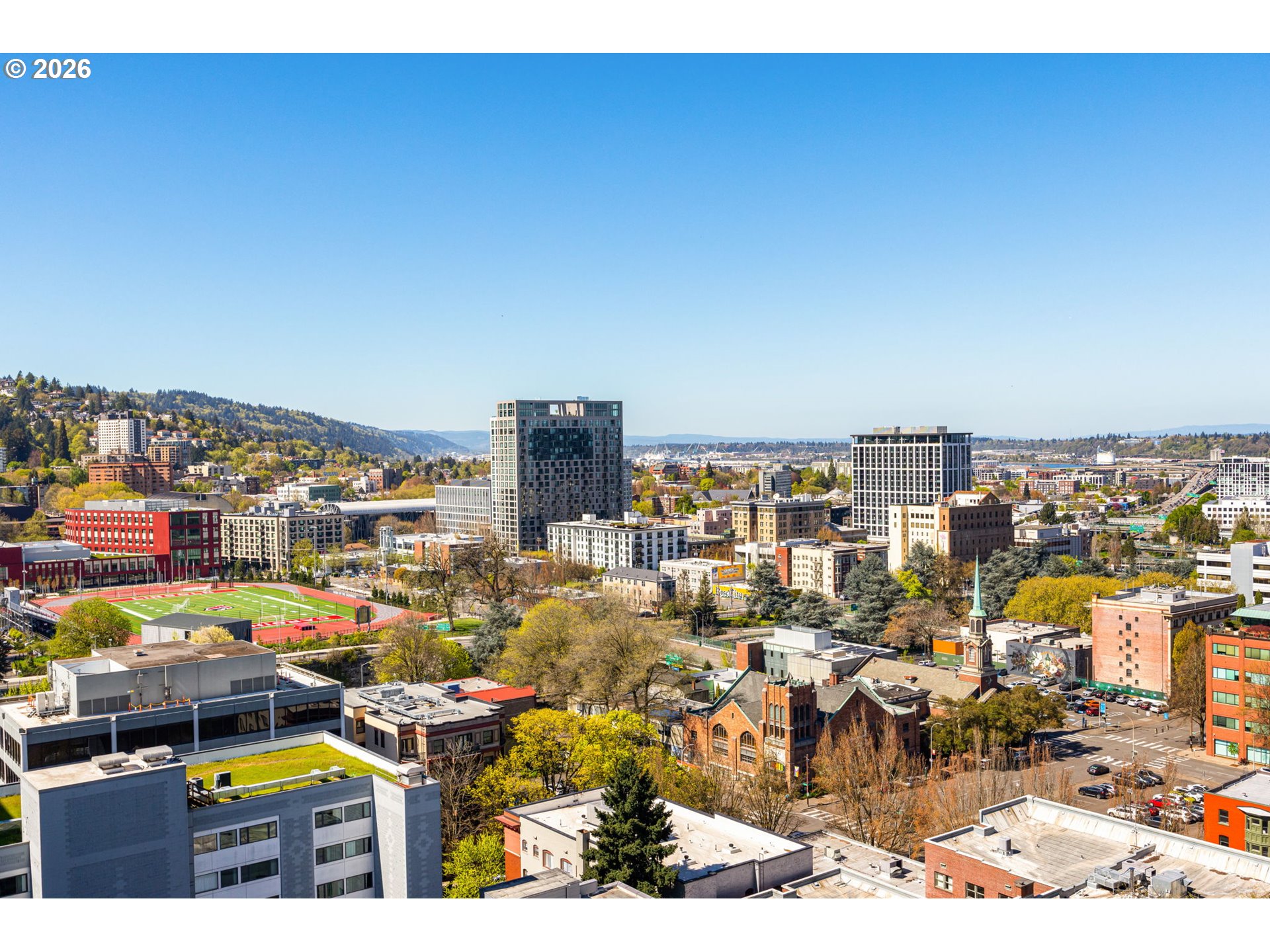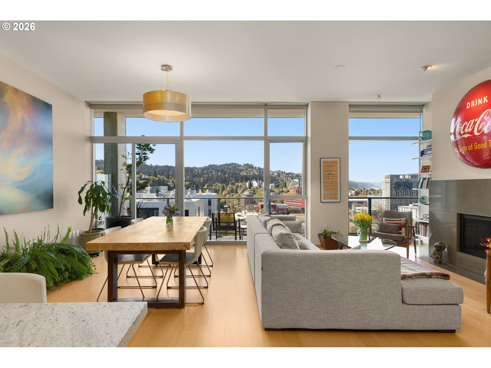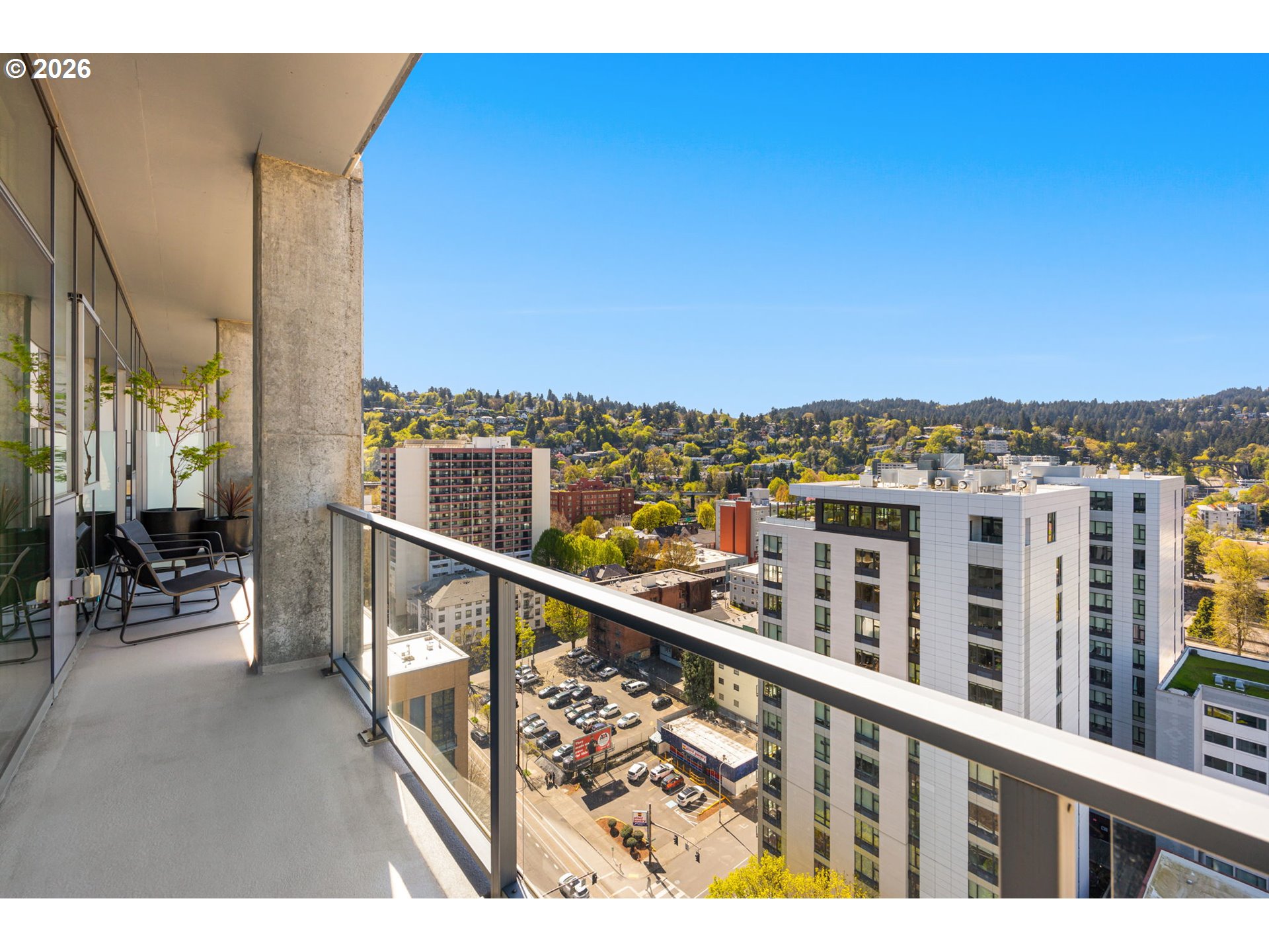Enjoy spectacular views from Eliot 1706 - your own west facing penthouse in the sky. This home offers the ultimate in floorplan flexibility. It has a beautiful primary bedroom suite, and two additional bonus rooms that could be used as offices, or additional sleeping areas. The open concept floorplan features extra high ceilings, impressive walls of glass, and a 144sf covered patio with views of the city and west hills beyond. The kitchen has lots of storage, top of the line appliances, beautiful slab countertops with bar seating. Unmatched storage space in the unit, too, that makes downsizing easy! Top notch building amenities including a full time concierge, gym, library, meeting room, and community room / outdoor party space. A beautiful home in an ultimately convenient building - the park blocks, seasonal farmer's market, museum, and theaters are all nearby. Includes 2 parking spaces and 1 storage unit.