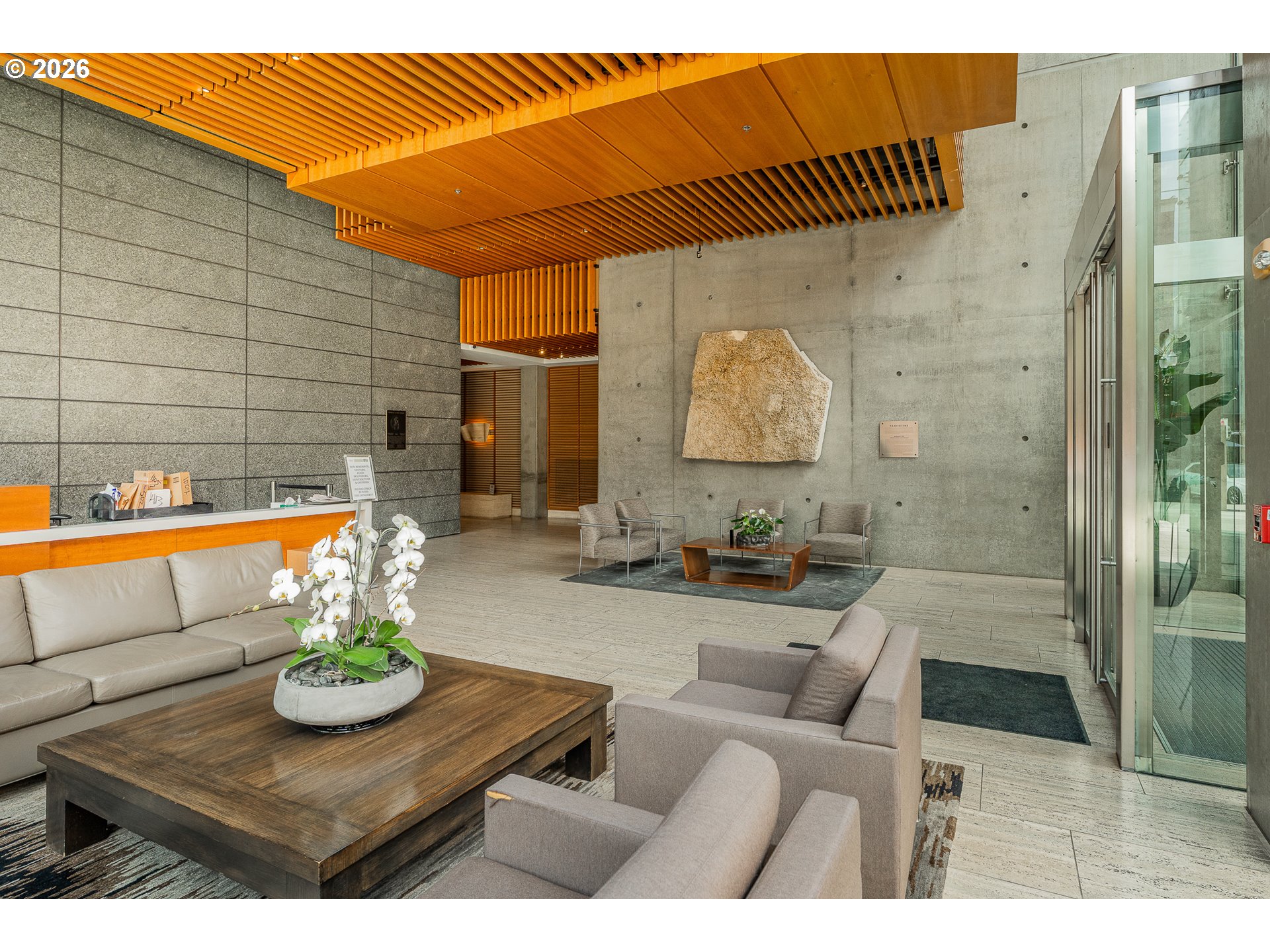 Stunning 7th-floor northwest corner unit with dramatic floor-to-ceiling windows showcasing sweeping city and mountain views. This highly sought after floor plan rarely comes available. Unique features include a gas fireplace, 30' balcony, and 2 real bedrooms on opposite sides of the unit, offering ultimate privacy. The appliances, carpet & HVAC (including central AC) have been recently updated. 2 Deeded parking spots (tandem) right next to elevator and a large storage unit are included. Experience refined urban living in the heart of the Cultural District, complete with 24-hour concierge service. With a Walk Score of 99, world-class dining, shopping, the Art Museum, Park Blocks, streetcar, and Farmer's Market are all just outside your door. This luxury high-rise boasts a strong HOA, a well-equipped fitness room, library with fireplace, conference room, common kitchen and large outdoor terrace with BBQs, lounge furniture and a fire pit. Come experience the Eliot Tower.