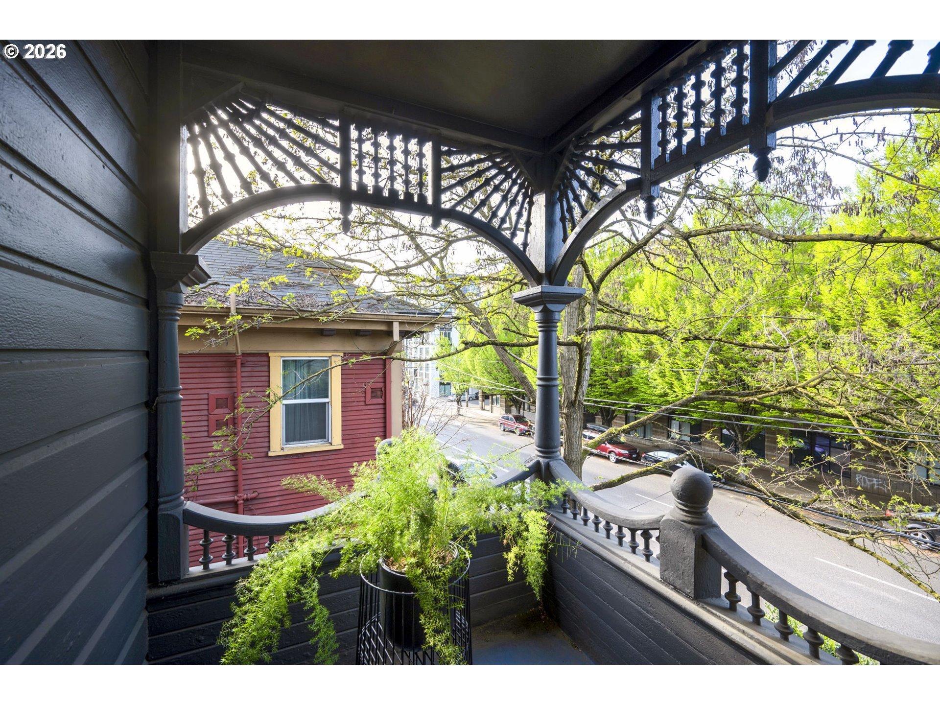 Come visit us for Happy Hour on Friday, 4/10, from 4:30-6:30! LEFT YOUR HEART IN SF? FOUND IT! Nostalgic for the City by the Bay? Visit the historic Osvold Martin House beyond the secret garden gate, where the golden sun shines. A Queen Anne bespoke belle of bustling Belmont with a command presence, she'll slay you with her stately, bold exterior hue, quiet interior, preserved details and modern updates. Feast your eyes on the architectural morsels: including fishscale shingles, turned posts, stickwork and spindle work. From the porch and balcony ornamentation, to the original floors and elegant fireplace with gas log set, history is calling you to this illustrious example of 19th century architecture. Updated for modern times, it’s a joy to cook in the well-appointed, remodeled, eat-in kitchen. Don't miss the rolling valet refuse cabinet. The flexible configuration lends itself to remote work (ethernet throughout), housemates or extended family, spanning 4 levels, including a private studio with extensive custom woodwork, a 2nd kitchen, bathroom and Murphy bed. The lower level has newer aluminum clad wood windows. The party is on the rooftop dreamscape, atop the unheard-of rebuilt 2-car garage, overlooking the courtyard oasis. [Home Energy Score = 1. HES Report at https://rpt.greenbuildingregistry.com/hes/OR10245979]