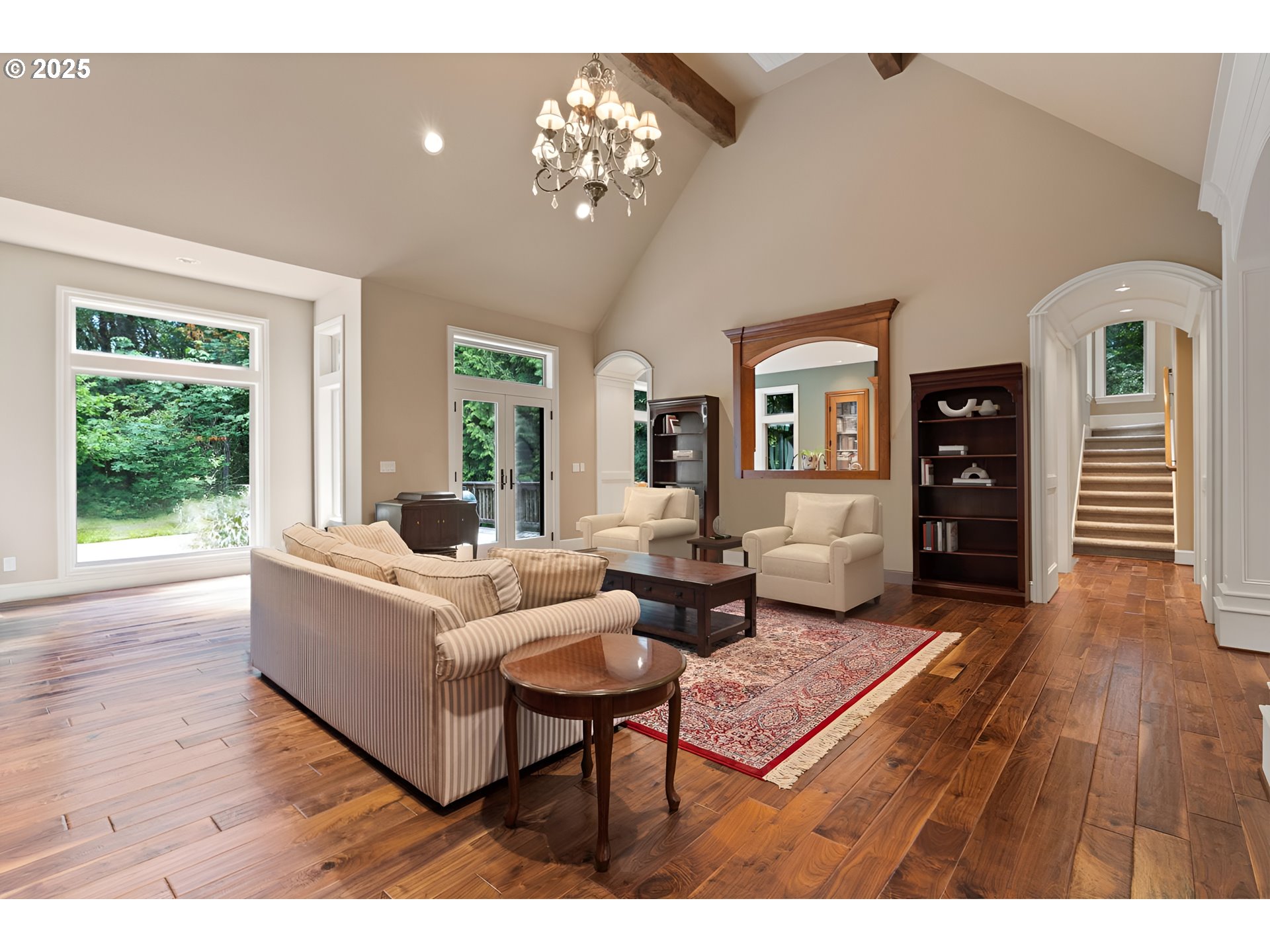 With miles of top-rated PNW trails at your doorstep and handsome, versatile, custom craftsmanship, this magnificent main level living estate is a refuge away from all the hustle bustle with proximity to it all! Situated in a private enclave neighborhood backing to Forest Park with 5 plush bedrooms, and five accompanying full bathrooms, generous sunny deck and lawn, and rich European detailing throughout. Enter to the soaring 18' beamed ceiling great room overlooking the deck with elegant dining room and butler's pantry primed for gathering and holiday hosting. The gourmet kitchen offers a sunny morning room, island, sleek Dacor and Bosch appliances, and dual ovens. Vast main level primary suite with sitting room, deck, heated spa bathroom floors, and nearby, handsome executive office with fireplace. Enjoy a second main level bedroom with full bathroom plus 3 additional bedroom suites upstairs, including a beautifully finished guest/in-laws suite with sitting room. Ideally situated off Portland's picturesque Skyline and minutes to downtown Portland, St. Vincents Hospital, plus Nike/Intel/Tektronix and the Metro's tech corridor, you'll enjoy proximity to it all. Many new windows, new hot water heater, dedicated AC for each floor, and totally private backyard. Bonus/flex room with wet bar, incredible storage throughout, and a three car epoxy garage finish this sanctuary home! [Home Energy Score = 3. HES Report at https://rpt.greenbuildingregistry.com/hes/OR10221411]