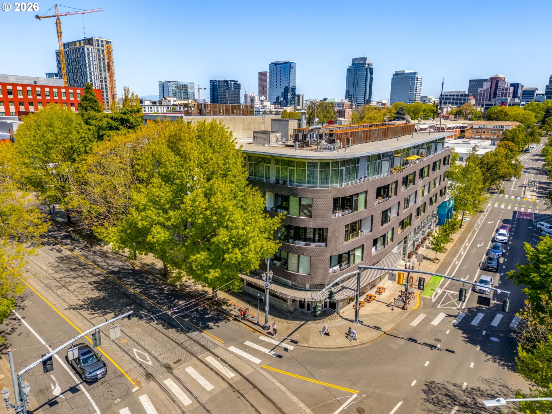 Tucked inside a stylish building in the heart of historic Goose Hollow, this 1 bed/1 bath Euro-style condo strikes a rare balance of intentional design and warmth you feel the moment you enter.Through the secure lobby and just inside your front door, an entry nook sets the tone, offering space for storage, a reading corner, or a work-from-home setup. Beyond, the home welcomes you with soaring ceilings and walls of windows pulling in natural light throughout the day.The living area is where it all comes together. Wood floors ground the space, while expansive windows flood the room with light that lighten up even Portland’s grayest days. Tea in hand, mornings begin quietly here while evenings settle into a relaxed rhythm with the city just outside.The kitchen brings a modern edge with stainless appliances, granite countertops, and floating shelves that feel elevated and approachable. A custom island anchors the space, perfect for quick breakfasts or late-night chats.The bedroom offers a true retreat: soft light, clean lines, and just enough separation to unwind at the end of the day. A spacious tiled bathroom and walk-in closet keep everything dialed in, while in-unit laundry adds convenience. Every inch feels purposeful, designed to live well without excess.When you need a breath of fresh air, step onto your private covered deck. With room for seating and a BBQ, it’s an easy extension of the home. Mornings with the paper, evening wind-downs, or quiet moments in between.And then there’s the location. Moments to the MAX, bus lines, and bike routes, with the Pearl, NW District, and downtown all within easy reach, along with favorite neighborhood spots and a nearby dog park. Secured, deeded parking rounds out the convenience when you need a change of scenery.This is city living that feels both elevated and effortless. Take a tour to see for yourself.