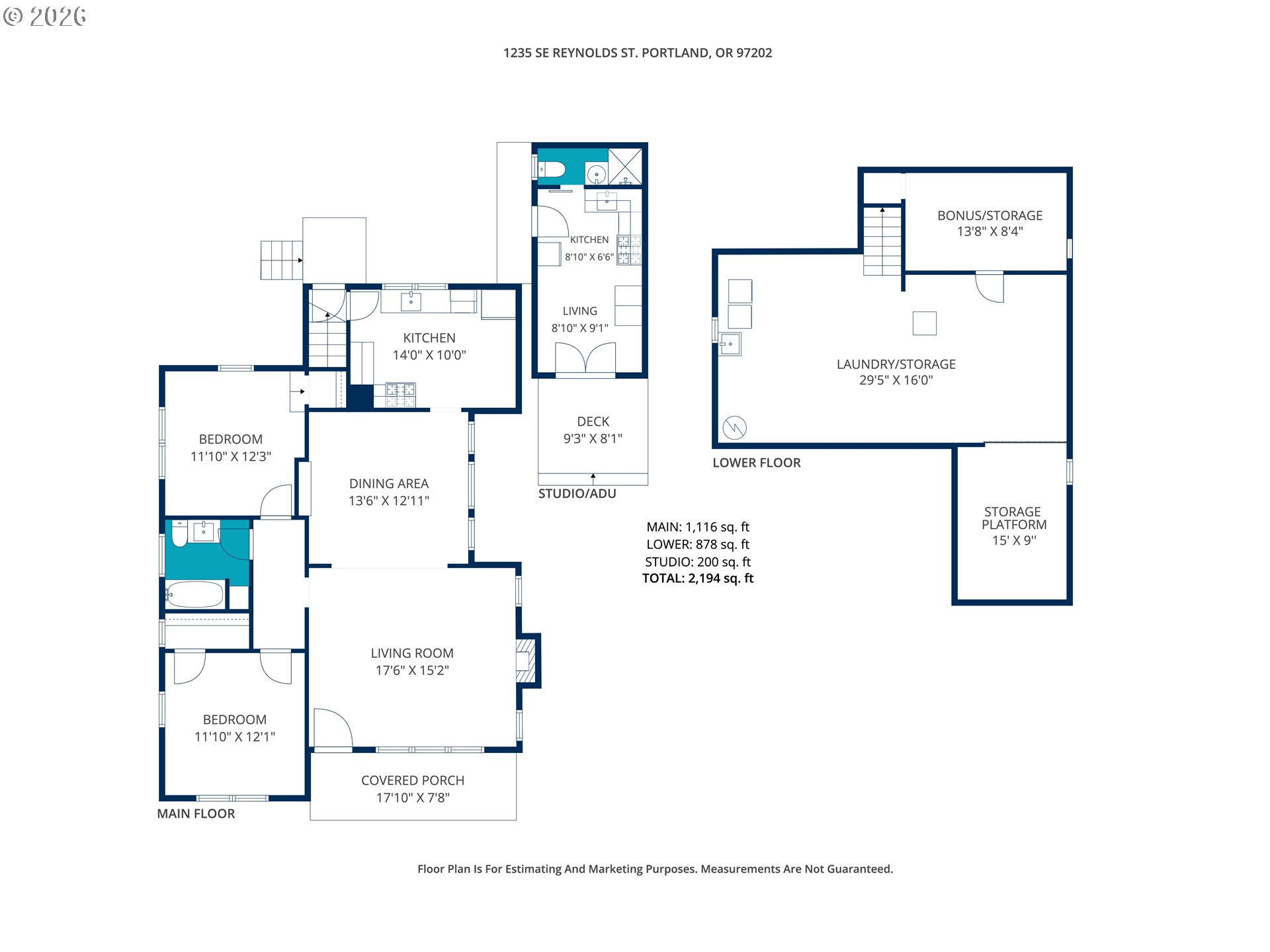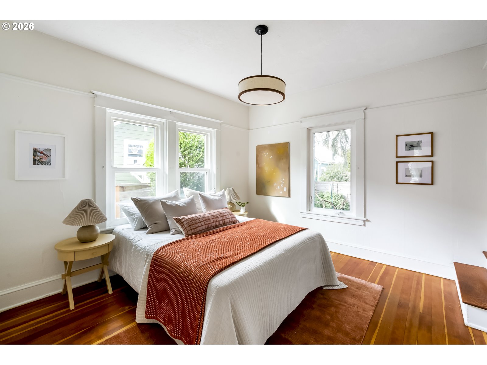 Take a stroll to check out this beloved 2 bed / 1 bath Brooklyn Bungalow with a modern detached 1 bed / 1 bath ADU permitted in 2017 and perfect for guests, short term rental, or your home office. The main home features oak hardwoods, period millwork, and large windows that soak the interior with natural light opening up to the covetable front porch stoop for your summer social hangs. The spacious dining room is perfect for entertaining and features drool-worthy box beams and a built-in hutch for your priceless heirlooms. The vintage, but refreshed kitchen has all the prep space for even the seasoned chef. The unfinished basement offers laundry and storage galore. Have it all with this dynamic duo - a charming bungalow full of light and ADU to offset your mortgage. Lower bills on this one with HES of 8 + Bike Score of 82! [Home Energy Score = 8. HES Report at https://rpt.greenbuildingregistry.com/hes/OR10214453]