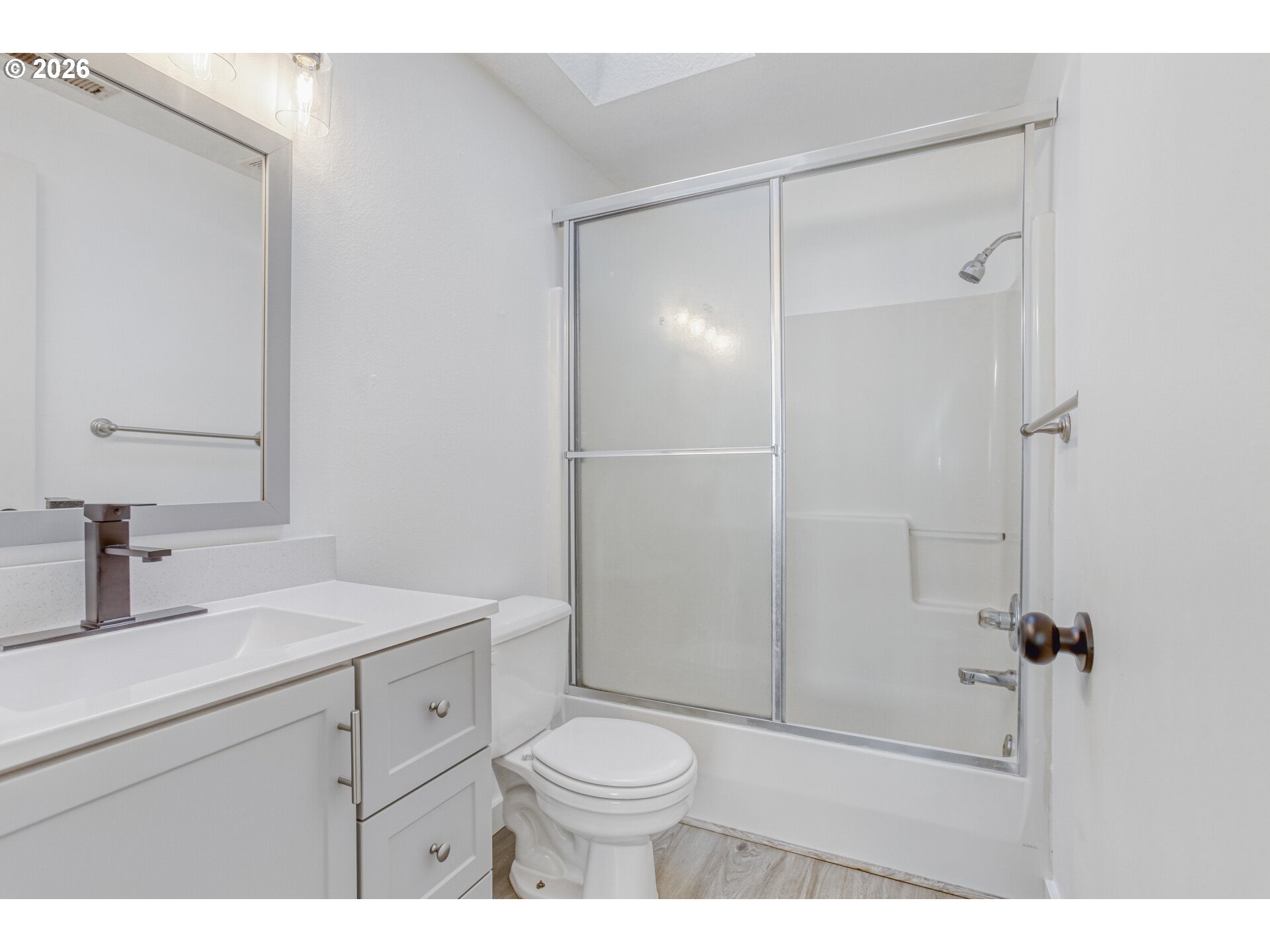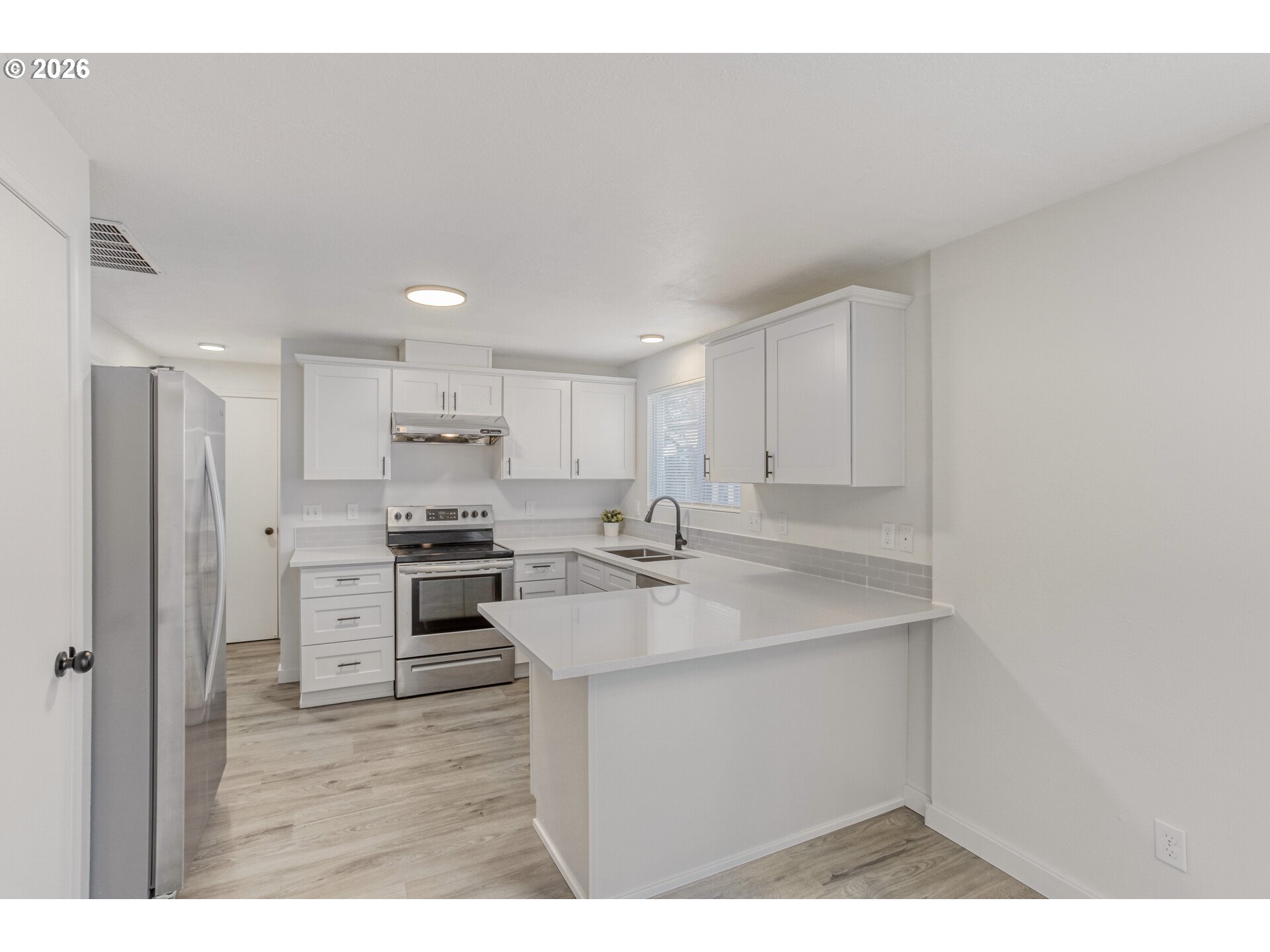 Welcome to a newly remodeled home where you can enjoy the sparkling finishes from day one. Step onto brand-new Luxury Vinyl Plank (LVP) flooring that flows throughout the main level. The open-concept living room has a gas fireplace, perfect for hosting friends and family. The kitchen offers both a small and large pantry with shelving, stainless steel appliances, a high-end range hood and has been completely remodeled to include: brand-new white cabinets, new sleek quartz countertops, a stunning new tile backsplash that pops, and a new under-mounted deep sink. Just off the kitchen is a half bathroom that shares the space with the laundry, and the washer and dryer both stay. Upstairs, comfort abounds with brand-new carpet throughout the three spacious bedrooms. The primary bedroom offers a true retreat with a window seat bathed in natural light, a huge walk-in closet, and en-suite bathroom with skylight. Every bathroom features new lighting and vanities topped with quartz. Attached is a two-car garage, and extra room for parking in the driveway. The fully fenced backyard is grassy and flat, and provides a blank canvas. You will have peace of mind for years to come knowing the expensive items are already handled:Roof: Replaced in 2017—solid and seasoned. Water Heater: Installed in 2017. Furnace: Installed in 2020. House Repipe: A complete re-pipe of the plumbing throughout the whole house, with a transferable warranty, completed in September 2025. Insulation: New insulation throughout the crawlspace completed in January 2026.