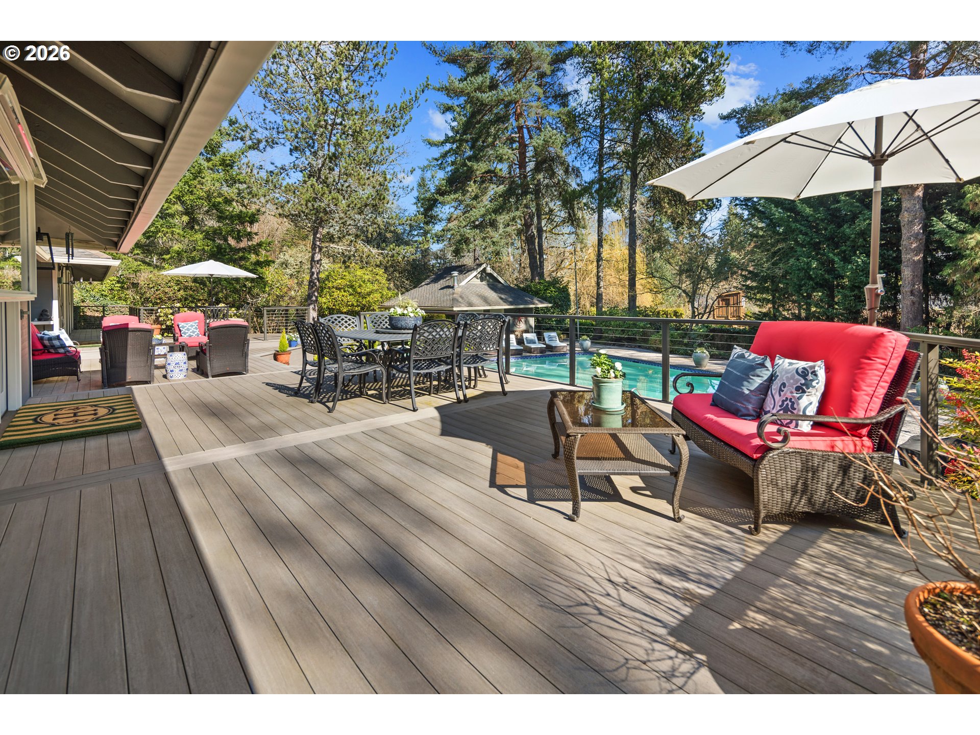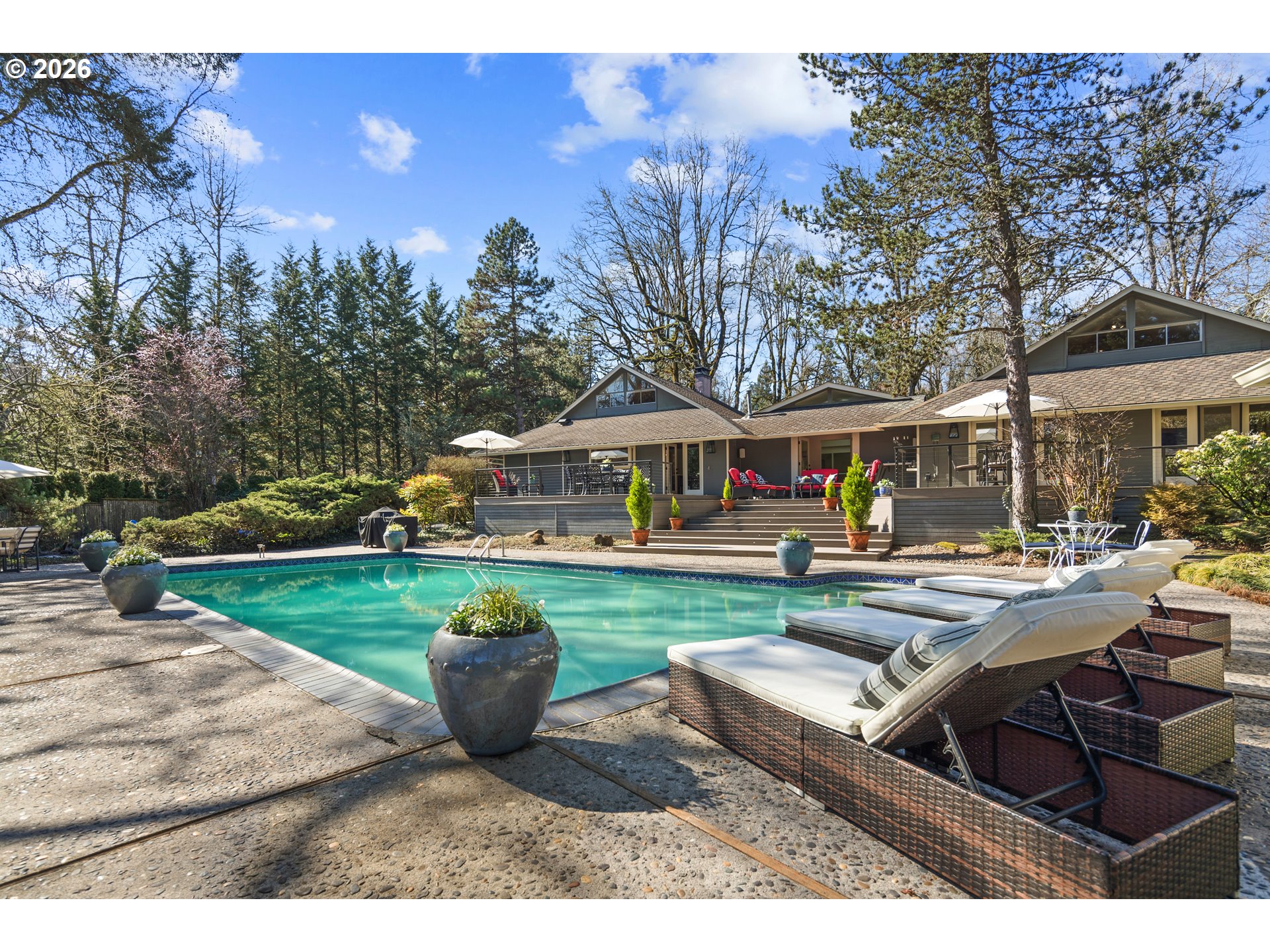 Polished Contemporary in the Heart of DunthorpeAn iconic modern masterpiece designed by visionary architect Joseph Eichler, one of the nation's most influential builders of modern homes. This home is ideally situated in the heart of the coveted Dunthorpe neighborhood in Portland. Impeccably maintained and thoughtfully curated, this light-infused residence celebrates walls of glass, soaring lines, and seamless indoor-outdoor living at its finest.A dramatic gabled atrium and formal living room serves as the architectural showpiece—an unforgettable centerpiece that floods the home with natural light and creates an extraordinary space for gathering and entertaining. With mostly main level living, every room feels connected to the lush, private .83 acre grounds, where a resort-style pool and large entertaining deck elevate daily living to a true lifestyle experience.The primary suite on the main is a serene retreat, offering tranquil garden views and effortless comfort. Recent, sophisticated renovations honor the home’s timeless modern design, highlighted by a stunning gourmet kitchen and a beautifully reimagined family room—perfectly suited for both intimate evenings and vibrant celebrations.Rare. Architectural. Exceptional. This is a singular opportunity to own a design-forward residence that masterfully balances form, function, and elevated living in the heart of Dunthorpe.With its coveted Dunthorpe location, expansive land feel, and a thoughtful blend of elegance and comfort, this home is a rare opportunity to enjoy classic Portland living at its finest.