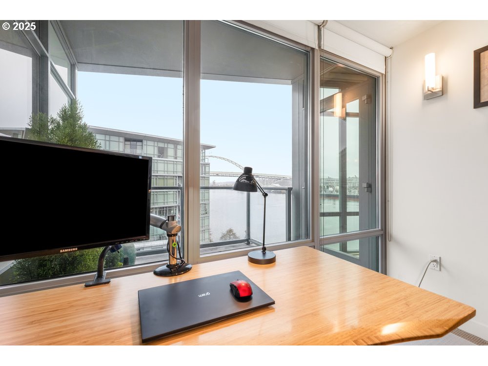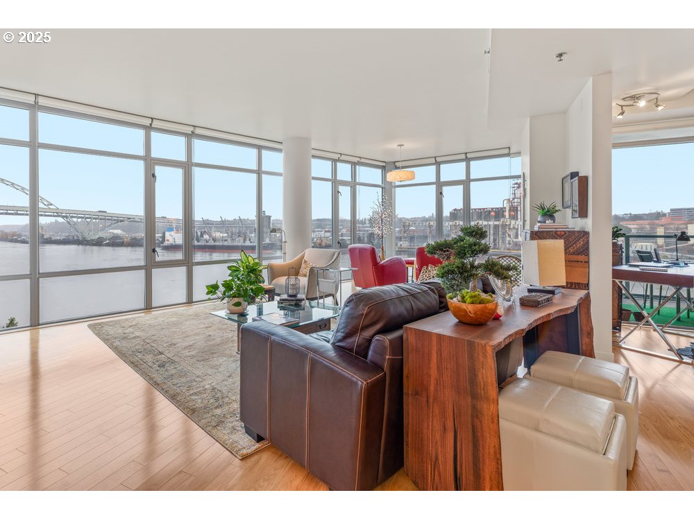 (503) 893-8874Experience elevated riverfront living in the heart of Portland’s coveted Pearl District. Residence #801 is a rare point-unit masterpiece, perched high above the Willamette with sweeping panoramas of the river and city skyline. Walls of floor-to-ceiling glass flood the interiors with natural light while framing breathtaking waterfront vistas from the great room and den, creating an atmosphere of serenity and sophistication. This expansive 2-bedroom, 2-bath residence spans 1,759sf and is thoughtfully designed for both refined entertaining and everyday comfort. Wide-plank oak floors, quartz surfaces, and premium appliances define the home’s modern elegance, while two private terraces invite seamless indoor-outdoor living—perfect for morning coffee, evening gatherings, or savoring the glittering city lights reflected on the river below. The primary suite offers a spa-inspired retreat with heated floors, abundant storage, and a sense of indulgence at every turn. Residents enjoy a true lock-and-leave lifestyle with 24-hour concierge service, professional security, a state-of-the-art fitness center, and sauna—all within a financially strong, meticulously managed HOA. Two secure tandem parking spaces (EV ready) and dedicated storage further elevate the convenience of this rare Pearl District offering. Set directly along the waterfront trail, the residence provides immediate access to parks, acclaimed restaurants, boutique shopping, streetcar lines, and downtown amenities. With a Walk Score of 93 and Bike Score of 92, this home embodies the essence of Portland’s vibrant urban lifestyle.