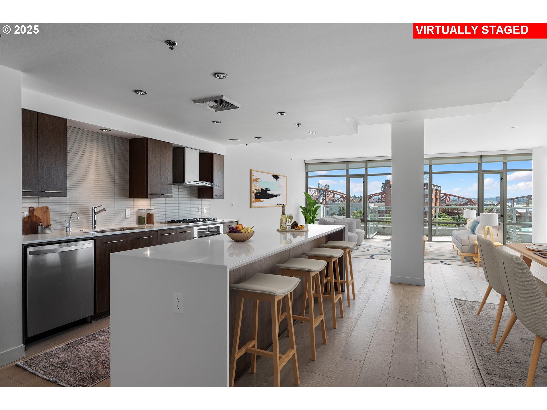 (503) 893-8874NEW PRICE! OPEN SUNDAY, Nov 9th from 11-12:30PM! Welcome to the Waterfront Pearl, where sophisticated design meets the serenity of riverfront living. This exceptional condominium offers a front-row seat to Portland’s most captivating scenery, with panoramic views of the Willamette River, city skyline, and iconic bridges framed by expansive walls of glass.Inside, the residence reveals a thoughtfully composed interior where quality and comfort converge. This condo can function as a three-bedroom home or a two-bed plus den and showcases floor-to-ceiling windows and new hardwood floors. The gourmet kitchen boasts quartz countertops, a large eating island, plenty of storage plus premium stainless steel appliances. Enjoy a peaceful retreat in the primary suite with a walk-in closet, private balcony and spa-style ensuite featuring a soaking tub and walk-in shower.Step onto the oversized, wraparound deck to take in the tranquil rhythm of the river or watch the city come alive at sunset. In addition, enjoy the incredible amenities the association has to offer - full gym, sauna, outdoor patio for entertaining, and 24/7 security/concierge. Beyond the home, a world of convenience and culture awaits. Enjoy immediate access to waterfront paths, Jamison Square and Fields Park, celebrated dining, and the vibrant energy of the Pearl District—all just moments from your door!