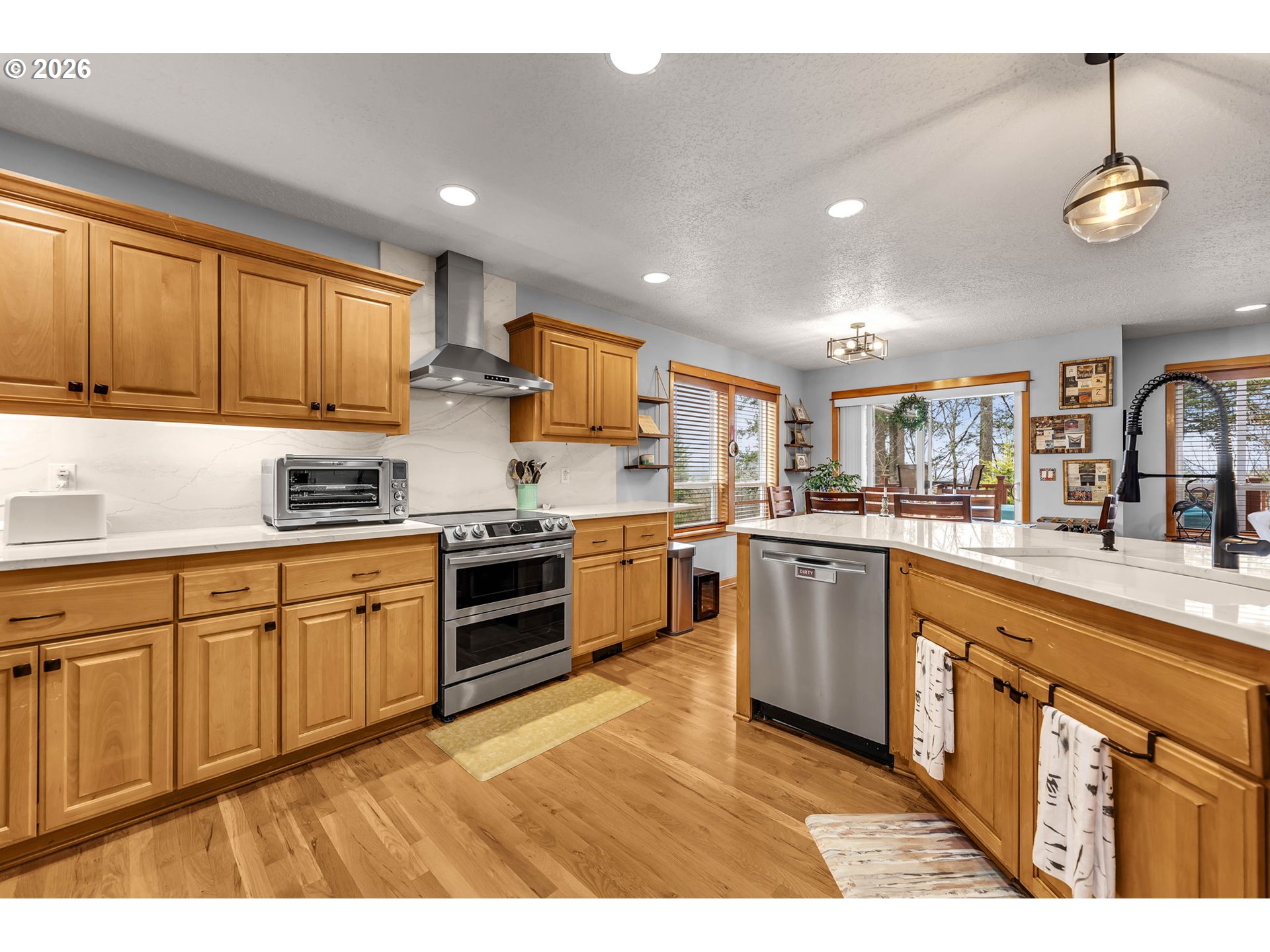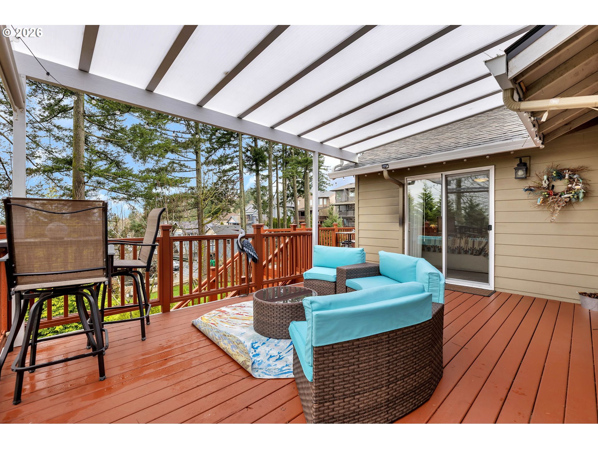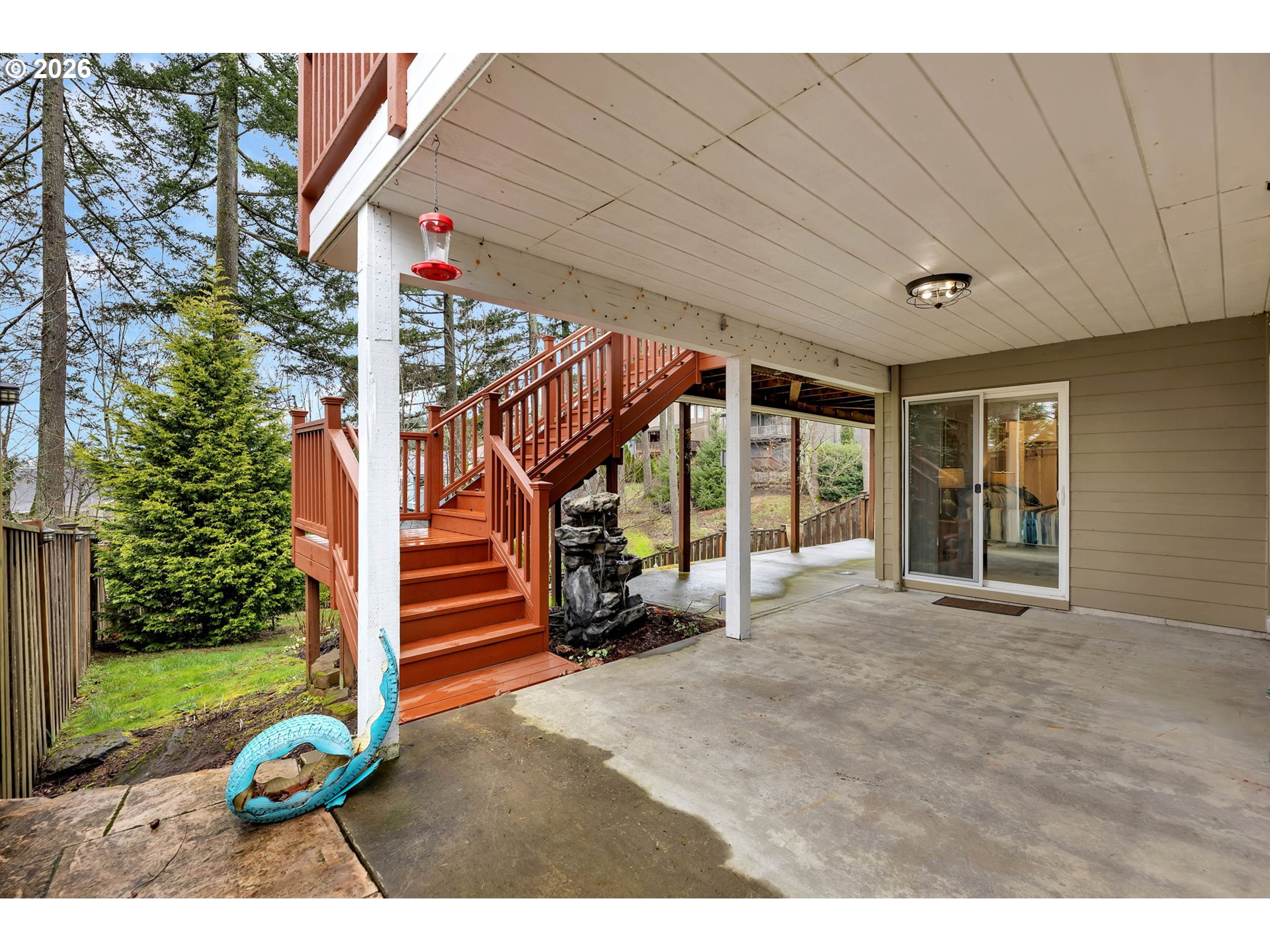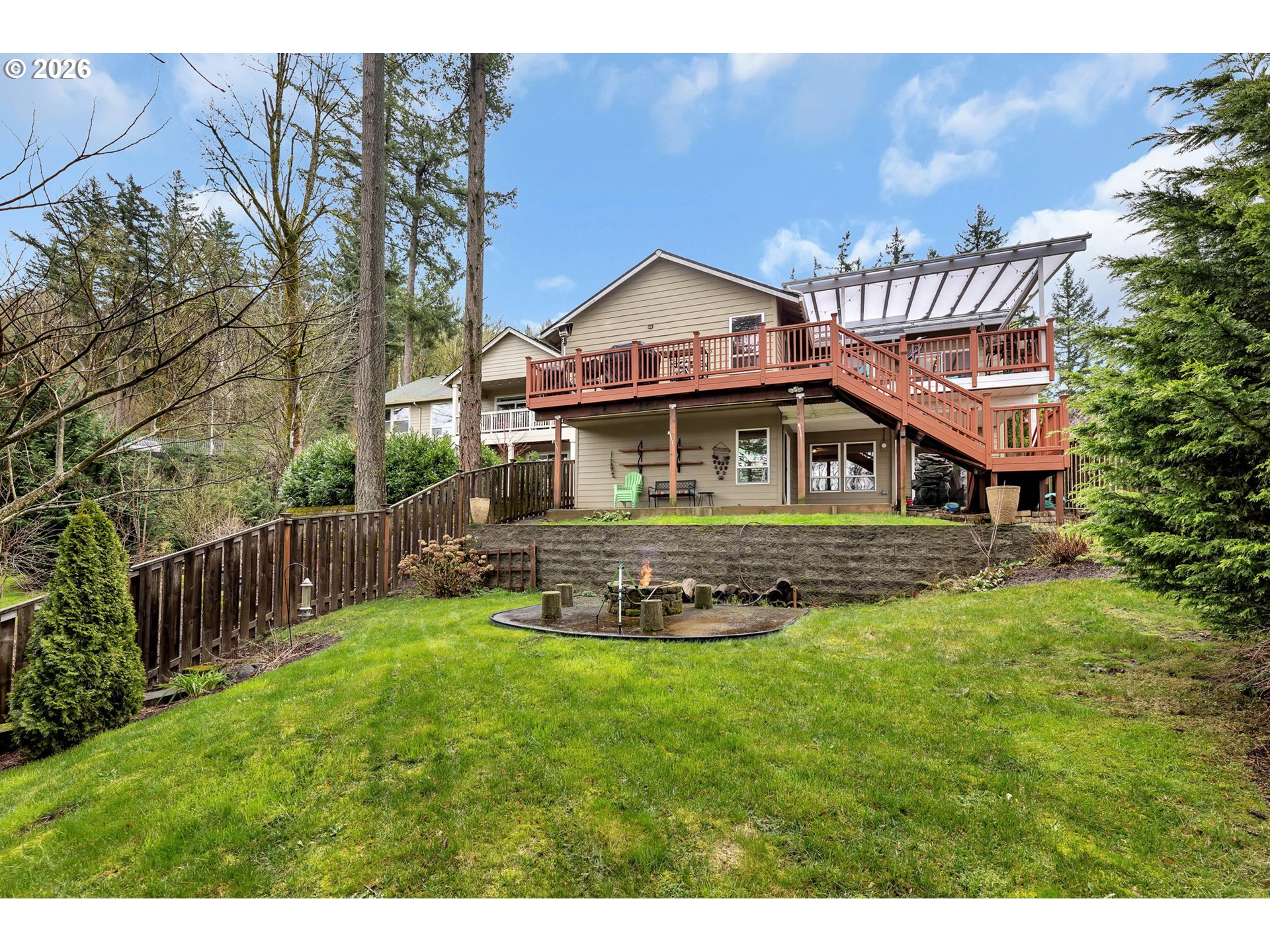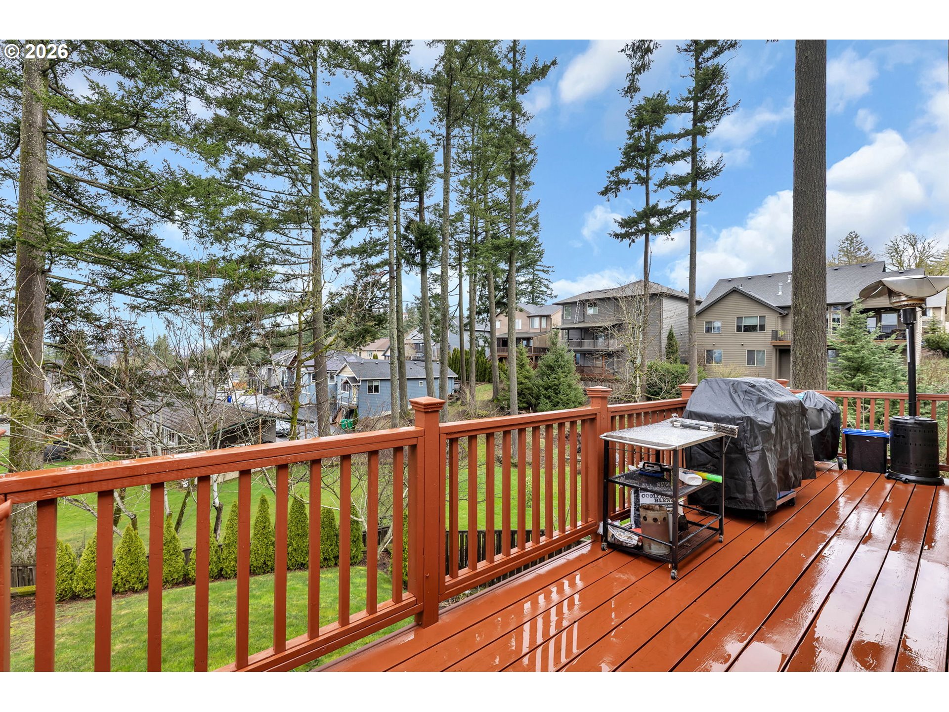 Beautiful 5 bedroom home in highly sought after Binford Heights, a premier residential neighborhood in Southwest Gresham known for its elevated setting. Perfectly positioned on a .16 acre lot, this home captures stunning views while delivering a thoughtfully updated interior. The gourmet kitchen features stainless steel appliances, quartz countertops, double ovens with induction feature, under cabinet lighting, and a generous pantry. The open concept layout flows seamlessly to the dining area with a slider to the deck...ideal for entertaining. The main level offers the primary suite with deck access, an office and a 2nd bedroom plus dining room with deck access. Living room with gas fireplace and 3 ceiling fans in the home as well as custom wood blinds. While the lower level includes three more bedrooms, full bathroom, a large family room with slider access to the patio, and abundant storage. Step outside to your private backyard oasis featuring covered patio space, expansive covered deck with views, fully fenced yard, and a relaxing fire pit area, perfect for year round enjoyment. Brand new roof put on in December of 2025.