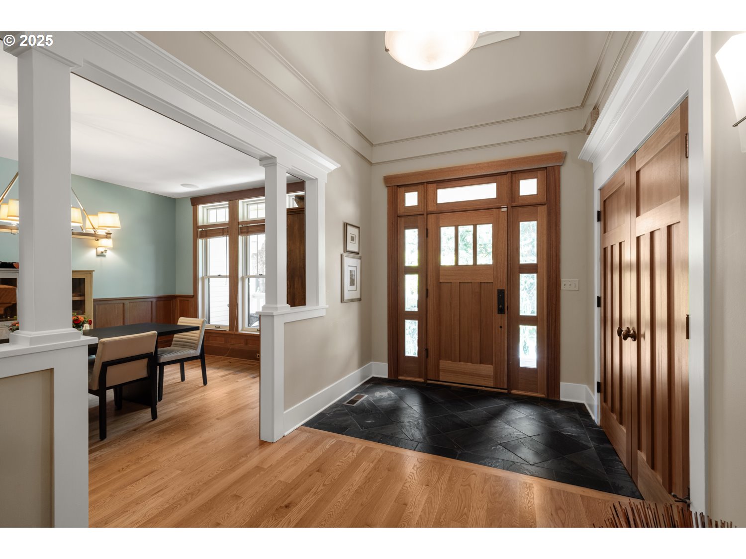Discover refined living in this beautifully crafted home blending timeless Craftsman style with modern functionality. Rich hardwood floors, thoughtful architectural details, and flexible living spaces provide comfort and versatility throughout. A dedicated office or den offers an ideal workspace, while each bedroom features an ensuite bath. The primary suite, located on the main level, includes a spa-inspired bath with soaking tub, walk-in shower, and spacious walk-in closet. The chef-inspired kitchen features a Wolf gas range, quartz countertops, dishwasher, refinished shaker-style cabinetry, updated hardware, and custom cabinet lighting—well suited for both daily use and entertaining. A large bonus room provides additional flexible space for media, recreation, hobbies, or other uses. Dual-zone heating and cooling support year-round interior comfort. Recent exterior improvements include a new roof with upgraded venting and transferable Bliss Roofing warranty. The professionally landscaped backyard includes a water feature, deck, paver patio, and outdoor gas connection. Additional features include an EV-ready ChargePoint HomeFlex Level 2 charger, Vacuflo central home vacuum system, and updated dual Wi-Fi control-from-anywhere garage door openers. Conveniently located approximately 0.25 miles from Oswego Towne Square, offering New Seasons Market, Starbucks, dining, retail, veterinary, medical/dental, and other service providers—about a 10-minute jaunt —and approximately 0.7 miles from Tryon Creek State Natural Area and its trail system. [Home Energy Score = 2. HES Report at https://rpt.greenbuildingregistry.com/hes/OR10013188]