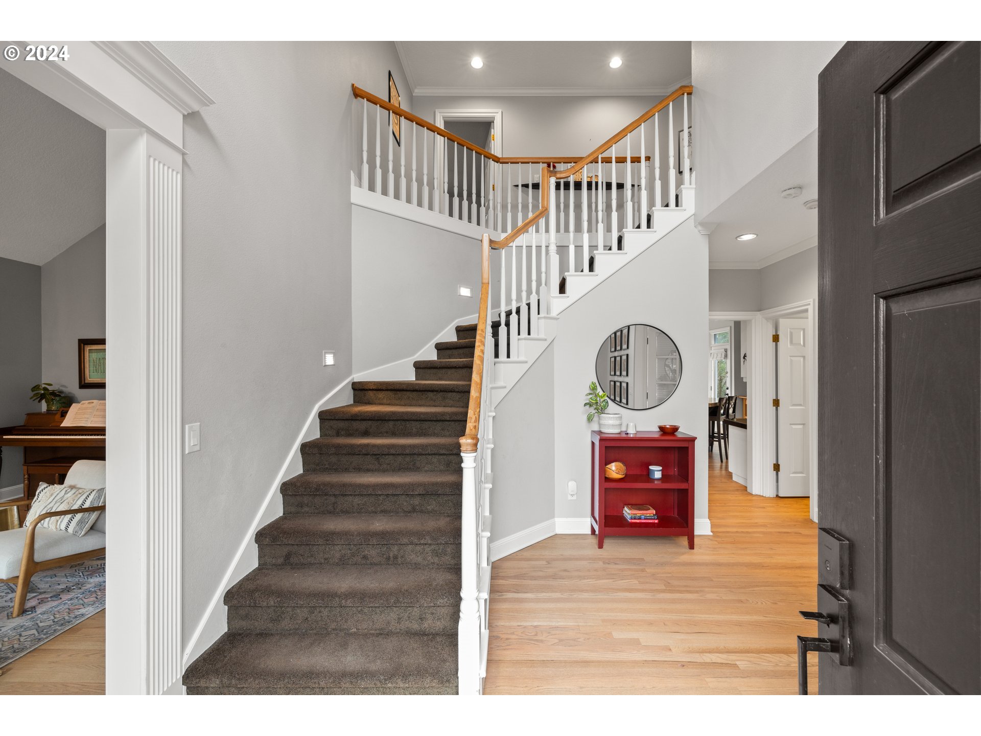 Perched on a quiet cul-de-sac in a highly sought after SW Portland neighborhood, this 4 bed/3 bath contemporary gem sits on a near quarter of an acre. The open concept design highlights elegant features throughout the home. Soaring ceilings and prominent windows flood this home with natural light. The kitchen offers sleek stainless-steel appliances, natural stone countertops, and ample space for culinary creations. Upstairs you’ll find 4 spacious bedrooms including a primary ensuite with a walk in closet and full bath. The fully fenced backyard is beautifully terraced and expansive for outdoor hosting/activities. 3 car garage with an EV charger as well as additional storage under the house. Recent updates include new exterior paint job (2024), new oak hardwood floors (2024), replaced central heating/cooling system (2021), and a 50 year roof (2017). This premier neighborhood provides easy access to daily conveniences, i5, and local shopping/eateries. Open this Saturday 8/2 & Sunday 8/3 from 12-2pm!