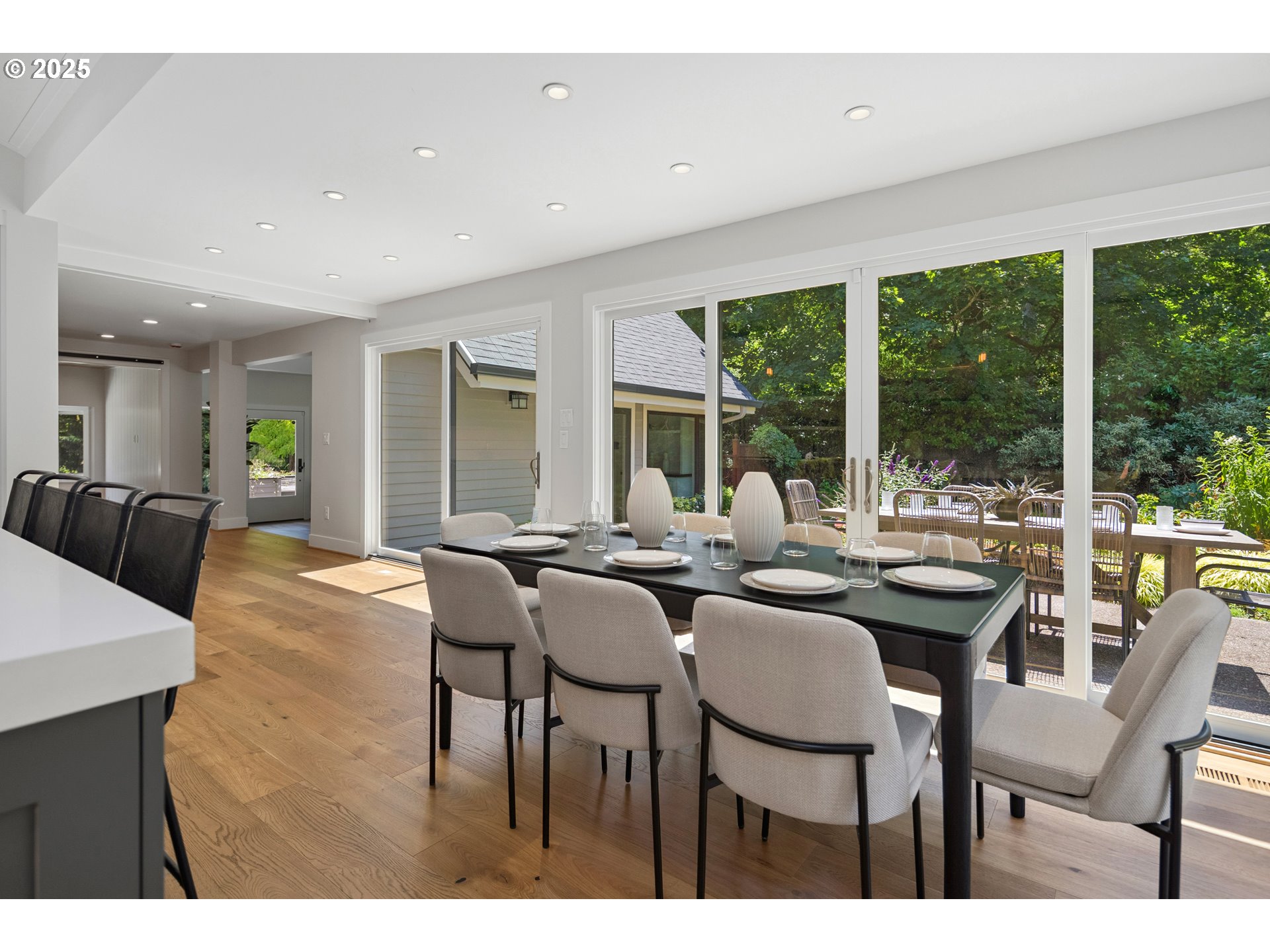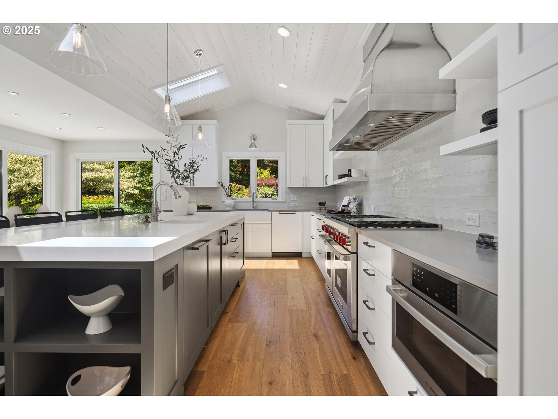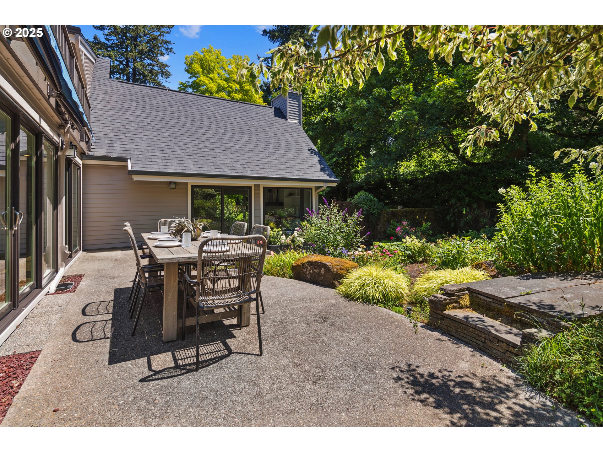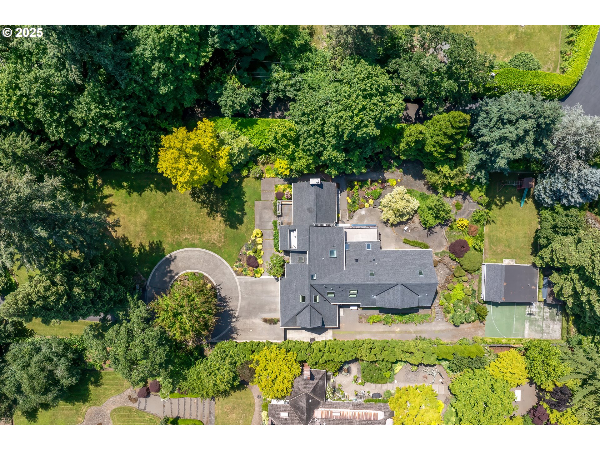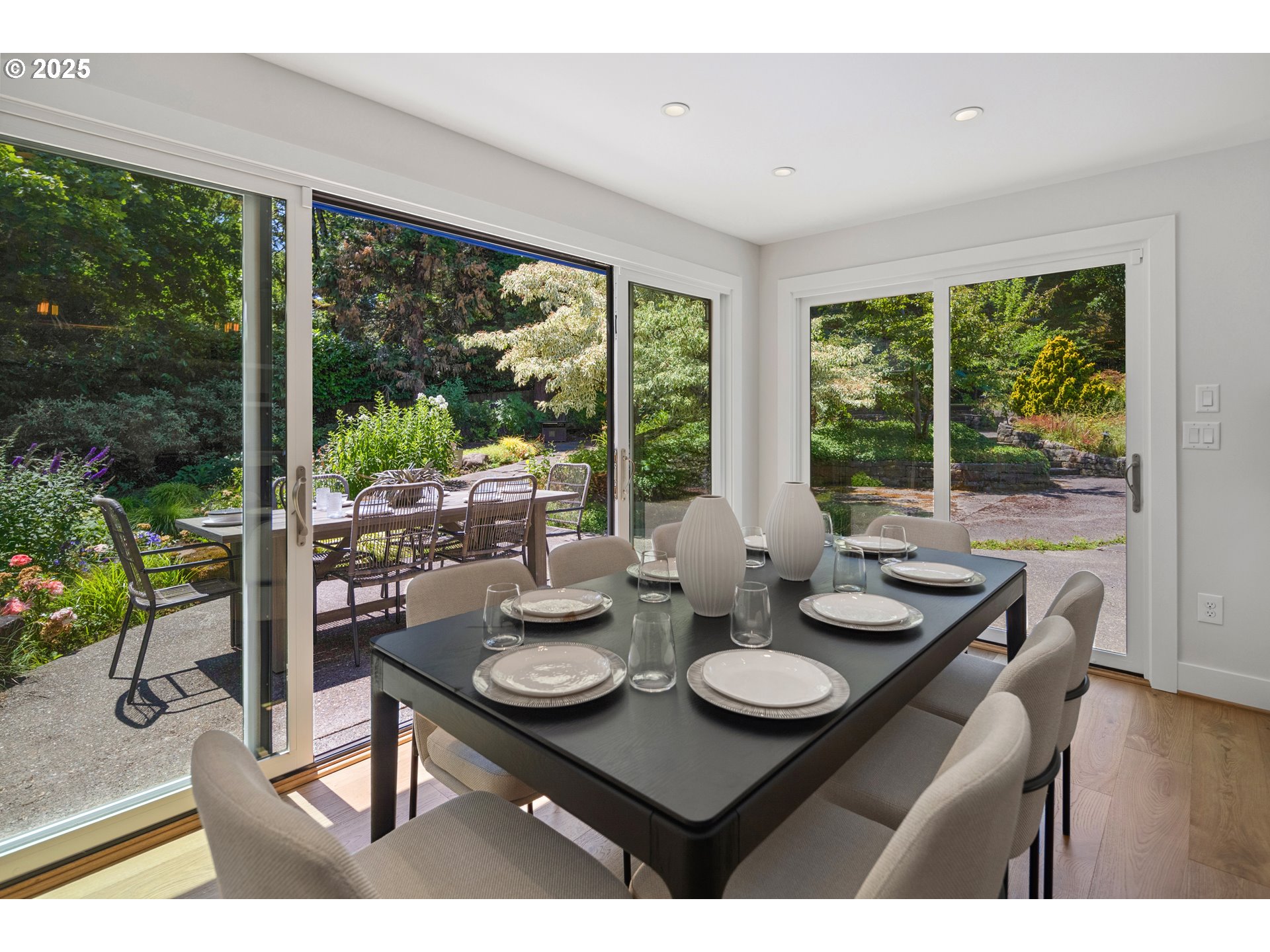 (503) 893-8874Nestled on nearly an acre on one of the most sought-after streets in Dunthorpe, this stunning contemporary residence has undergone a comprehensive renovation with meticulous attention to detail. The result is a bright and refined interior where clean modern lines are beautifully balanced by new white oak flooring and elegant shiplap accents. Throughout the home, expansive picture windows, sliding glass doors, and skylights dissolve the boundary between indoors and out, framing the stunning natural beauty of the grounds and flooding nearly every room with natural light. In the living room, a dramatic recessed tray ceiling complements a fireplace framed by artful stonework and flanked by custom built-ins. The gourmet kitchen showcases brand-new Sub-Zero, Wolf, and Bosch appliances, quartz countertops, a farmhouse sink, and a vaulted tongue-and-groove ceiling with a skylight. A spacious center island faces a wall of glass that opens to an outdoor dining area and serene garden sanctuary with vibrant perennials and ornamental trees, interwoven with stone pathways that invite quiet exploration. A separate butler's pantry with dual Sub-Zero beverage centers provides additional prep space. The home offers five bedroom suites - three on the main level and two upstairs - including dual primary suites, one on each floor, for exceptional flexibility. A spacious bonus area with enclosed office space is ideal for a family or media room, while a separate guest house with kitchenette provides additional guest accommodations. The impeccably landscaped park-like grounds are surrounded by towering trees, offering maximum privacy in addition to manicured gardens, lush rolling lawns, and a sport court. The home is located in the esteemed Riverdale School District - consistently ranked one of the best in the state - minutes from downtown Portland and Lake Oswego.