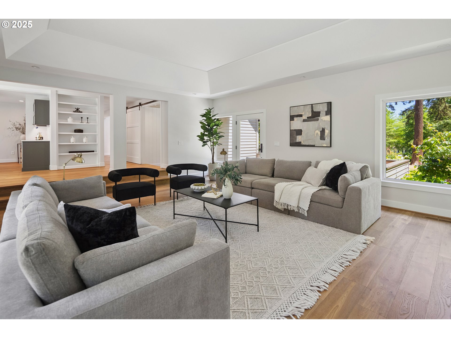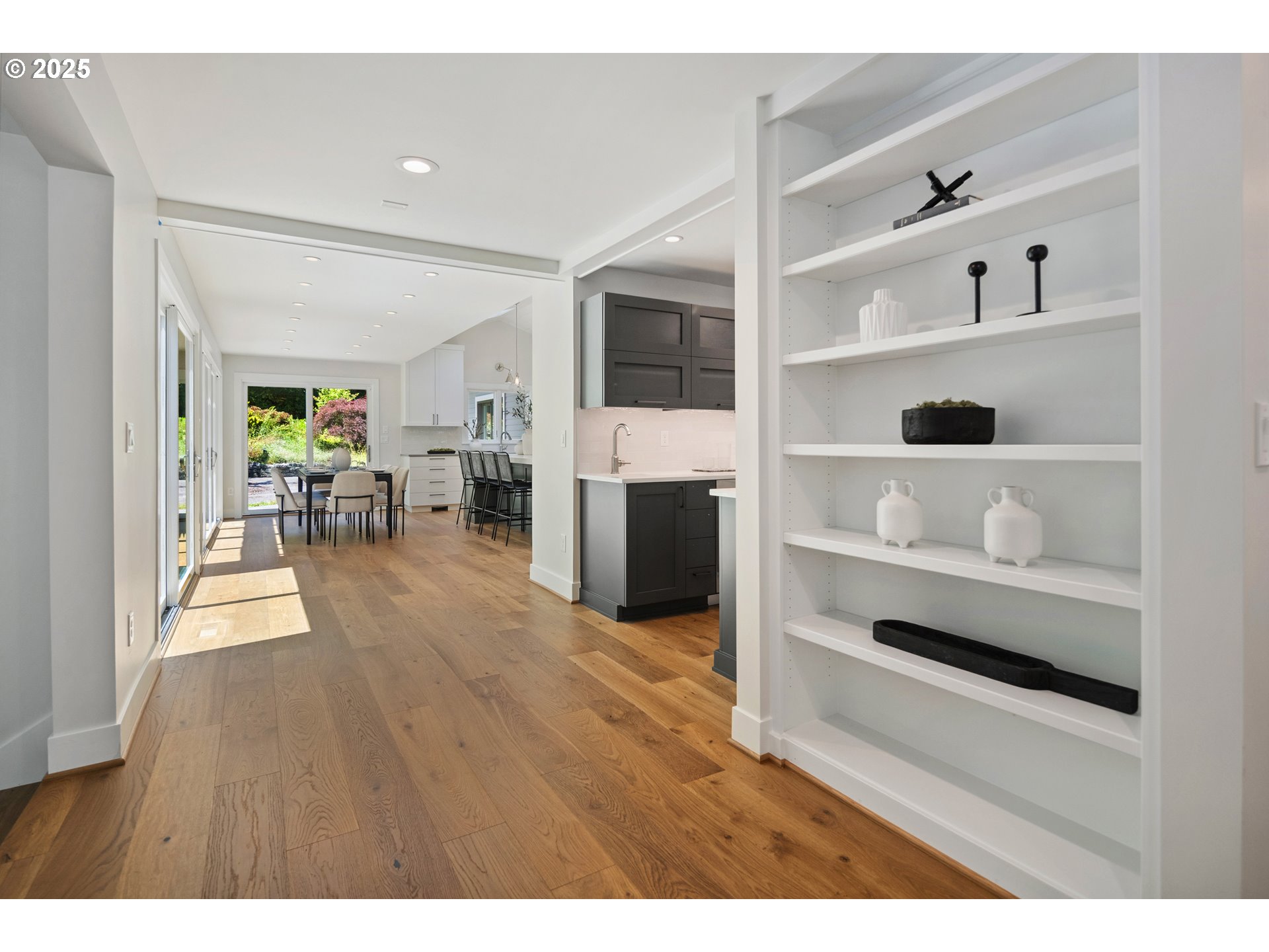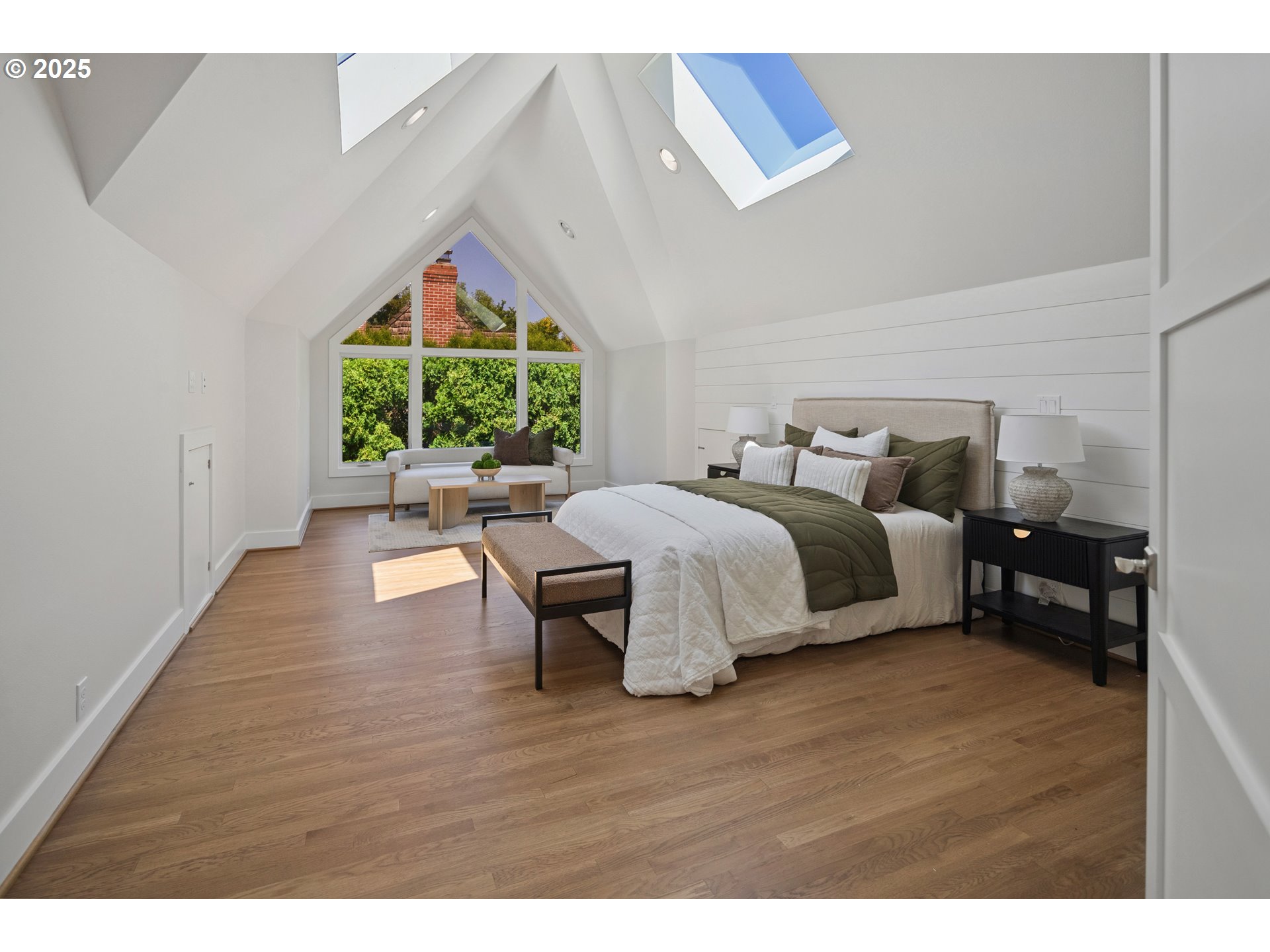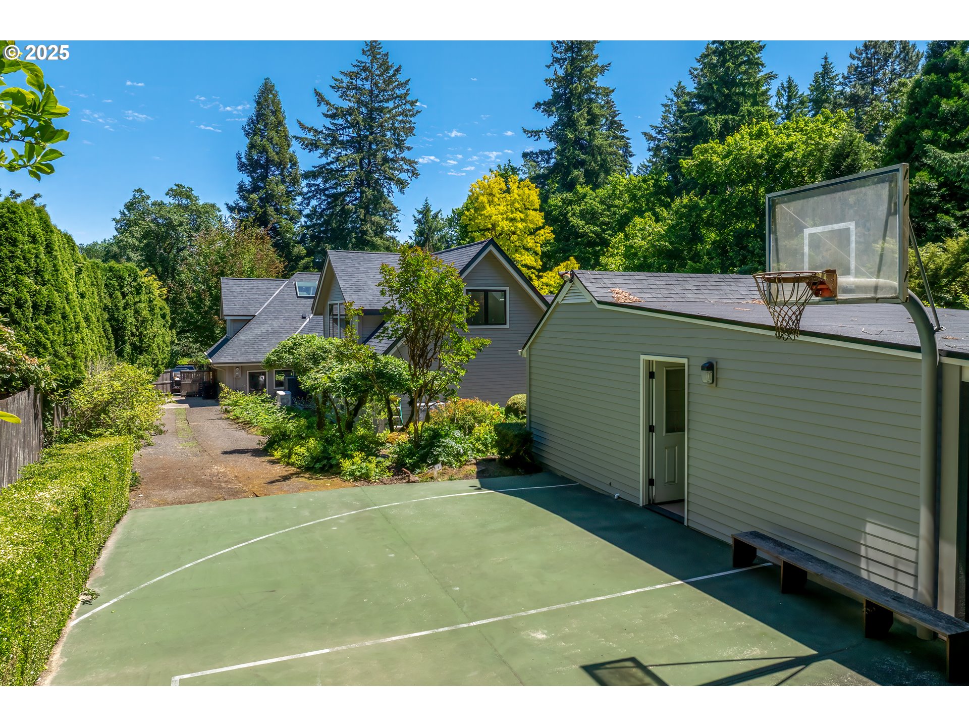 (503) 893-8874Nestled on nearly an acre on one of the most sought-after streets in Dunthorpe, this stunning contemporary residence has undergone a comprehensive renovation with meticulous attention to detail. The result is a bright and refined interior where clean modern lines are beautifully balanced by new white oak flooring and elegant shiplap accents. Throughout the home, expansive picture windows, sliding glass doors, and skylights dissolve the boundary between indoors and out, framing the stunning natural beauty of the grounds and flooding nearly every room with natural light. In the living room, a dramatic recessed tray ceiling complements a fireplace framed by artful stonework and flanked by custom built-ins. The gourmet kitchen showcases brand-new Sub-Zero, Wolf, and Bosch appliances, quartz countertops, a farmhouse sink, and a vaulted tongue-and-groove ceiling with a skylight. A spacious center island faces a wall of glass that opens to an outdoor dining area and serene garden sanctuary with vibrant perennials and ornamental trees, interwoven with stone pathways that invite quiet exploration. A separate butler's pantry with dual Sub-Zero beverage centers provides additional prep space. The home offers five bedroom suites - three on the main level and two upstairs - including dual primary suites, one on each floor, for exceptional flexibility. A spacious bonus area with enclosed office space is ideal for a family or media room, while a separate guest house with kitchenette provides additional guest accommodations. The impeccably landscaped park-like grounds are surrounded by towering trees, offering maximum privacy in addition to manicured gardens, lush rolling lawns, and a sport court. The home is located in the esteemed Riverdale School District - consistently ranked one of the best in the state - minutes from downtown Portland and Lake Oswego.
