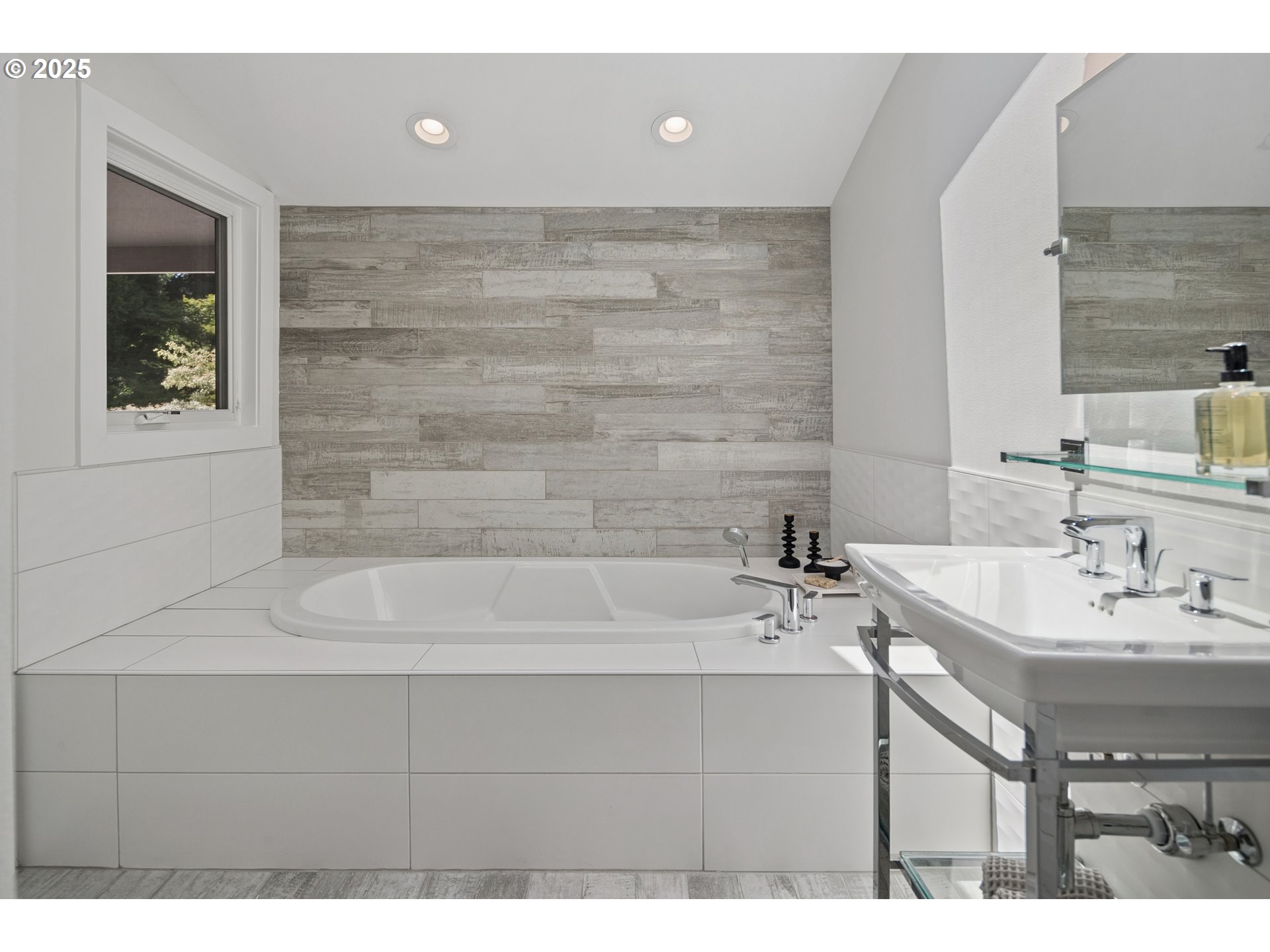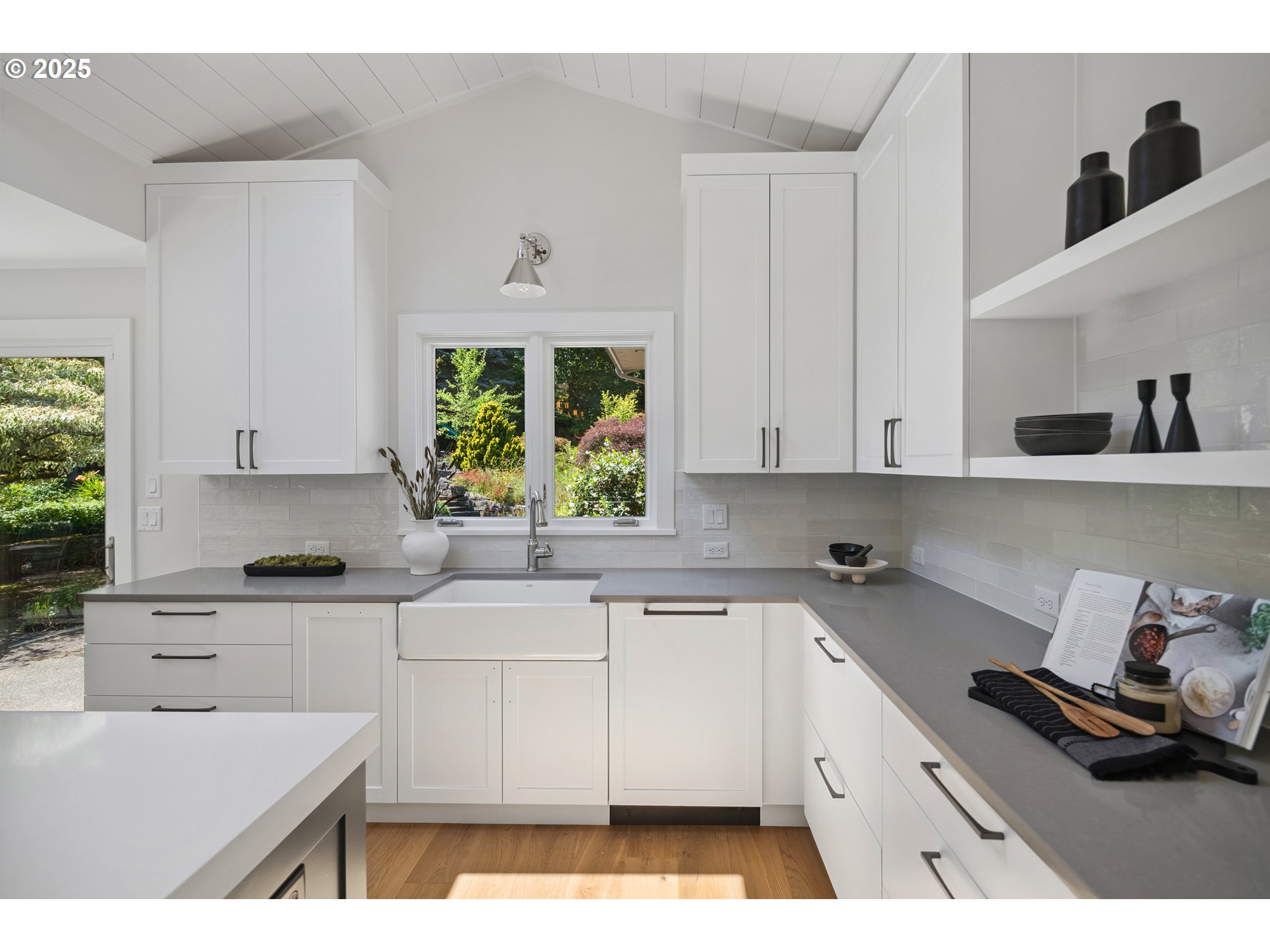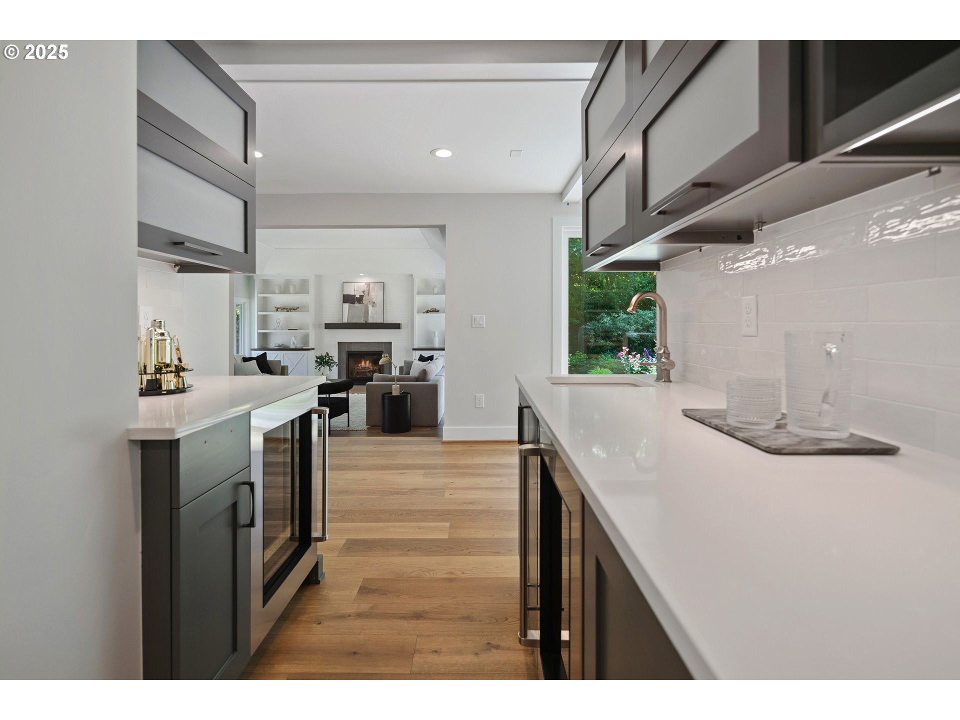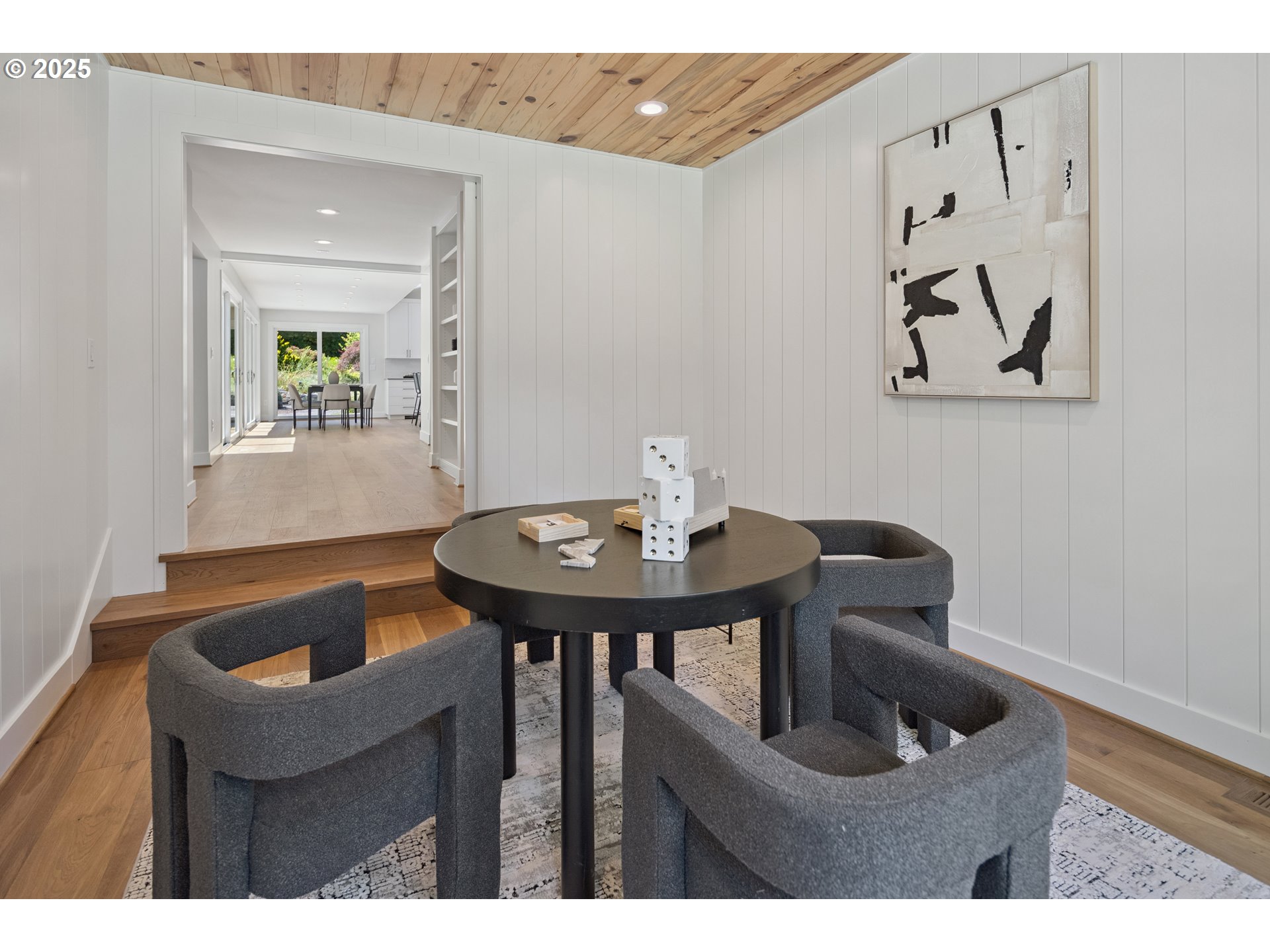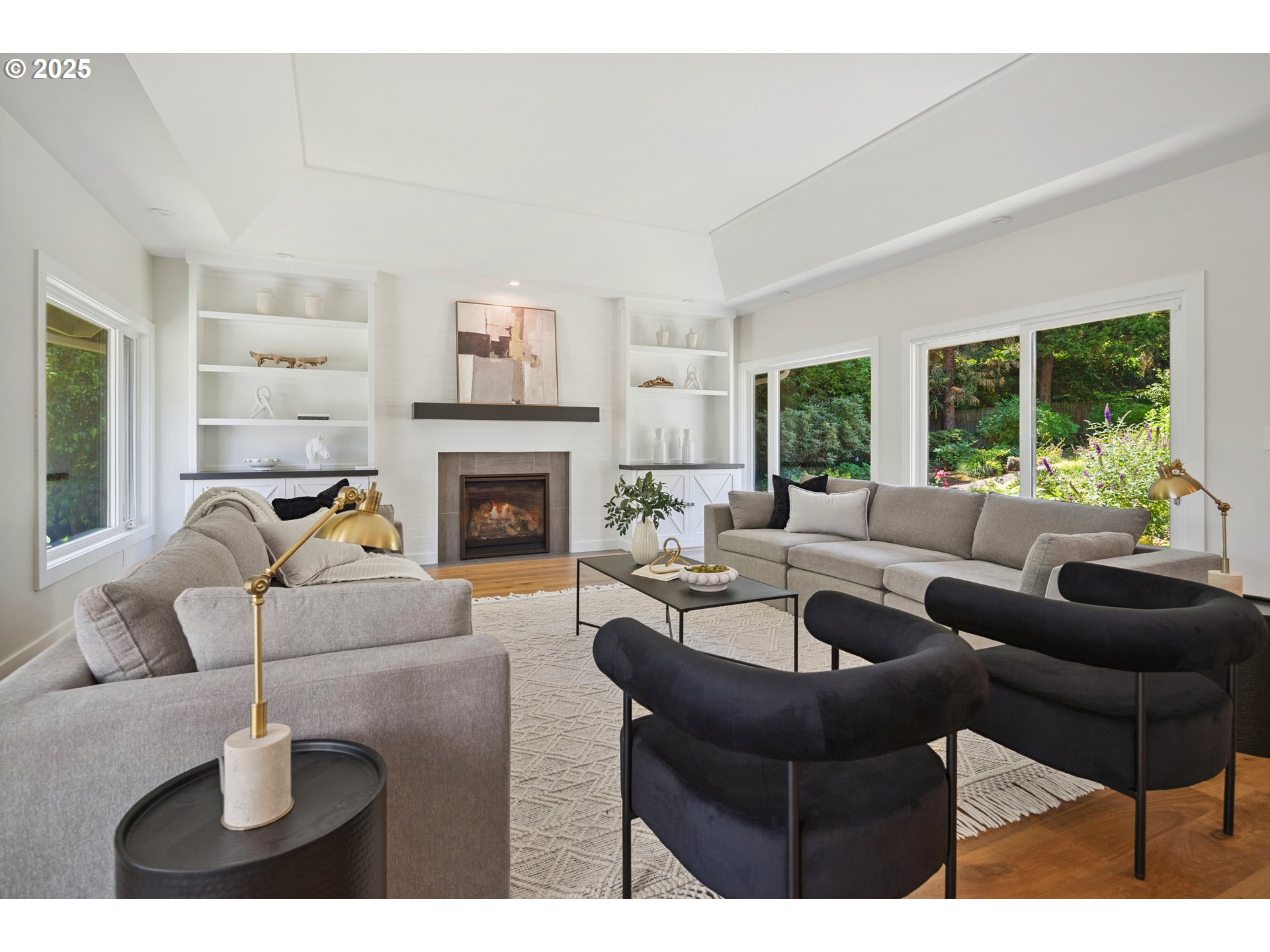 (503) 893-8874Nestled on nearly an acre on one of the most sought-after streets in Dunthorpe, this stunning contemporary residence has undergone a comprehensive renovation with meticulous attention to detail. The result is a bright and refined interior where clean modern lines are beautifully balanced by new white oak flooring and elegant shiplap accents. Throughout the home, expansive picture windows, sliding glass doors, and skylights dissolve the boundary between indoors and out, framing the stunning natural beauty of the grounds and flooding nearly every room with natural light. In the living room, a dramatic recessed tray ceiling complements a fireplace framed by artful stonework and flanked by custom built-ins. The gourmet kitchen showcases brand-new Sub-Zero, Wolf, and Bosch appliances, quartz countertops, a farmhouse sink, and a vaulted tongue-and-groove ceiling with a skylight. A spacious center island faces a wall of glass that opens to an outdoor dining area and serene garden sanctuary with vibrant perennials and ornamental trees, interwoven with stone pathways that invite quiet exploration. A separate butler's pantry with dual Sub-Zero beverage centers provides additional prep space. The home offers five bedroom suites - three on the main level and two upstairs - including dual primary suites, one on each floor, for exceptional flexibility. A spacious bonus area with enclosed office space is ideal for a family or media room, while a separate guest house with kitchenette provides additional guest accommodations. The impeccably landscaped park-like grounds are surrounded by towering trees, offering maximum privacy in addition to manicured gardens, lush rolling lawns, and a sport court. The home is located in the esteemed Riverdale School District - consistently ranked one of the best in the state - minutes from downtown Portland and Lake Oswego.