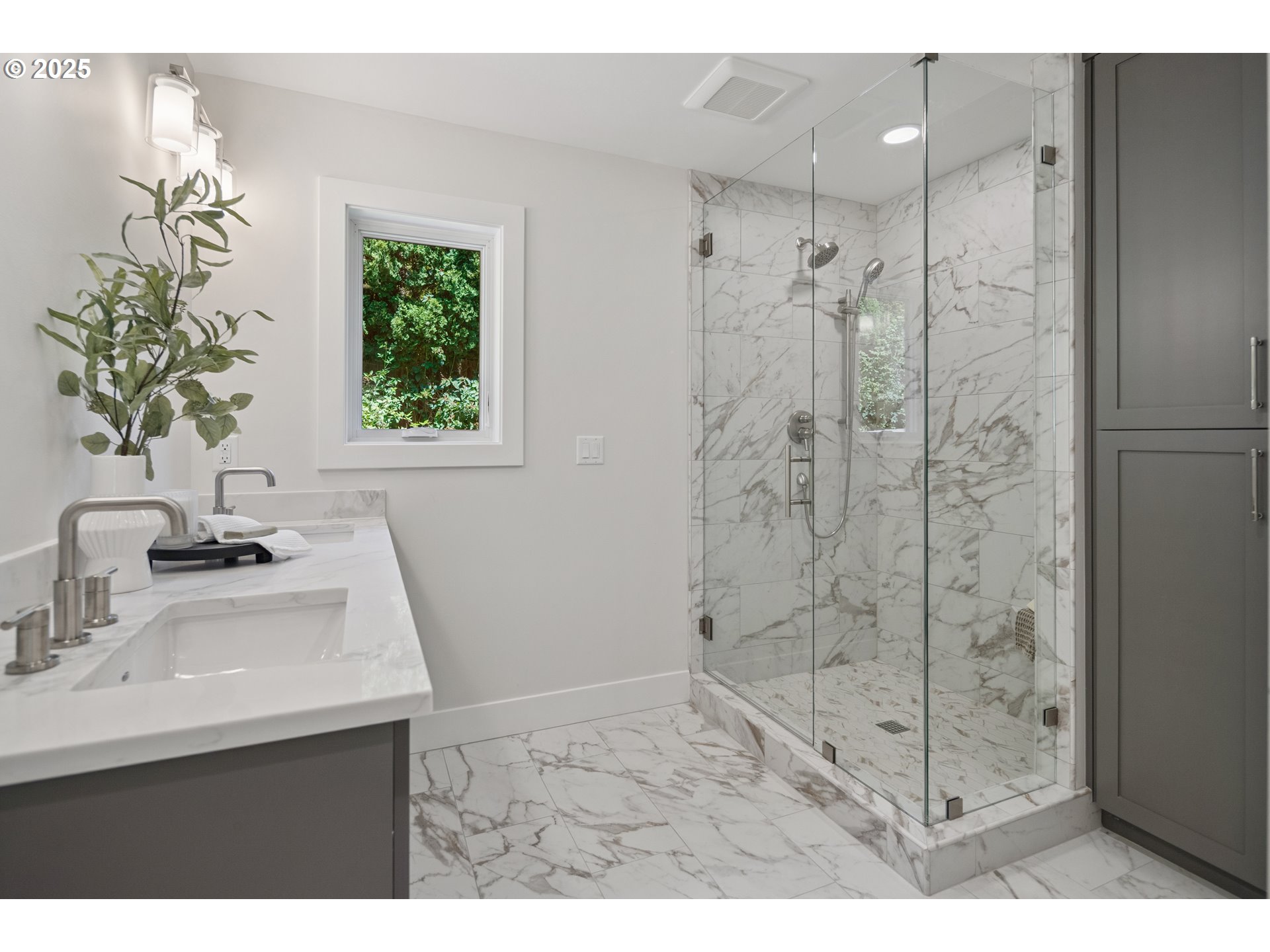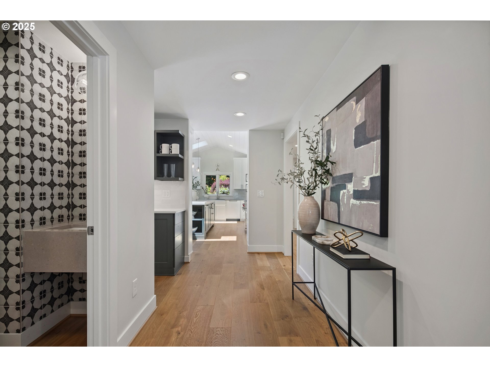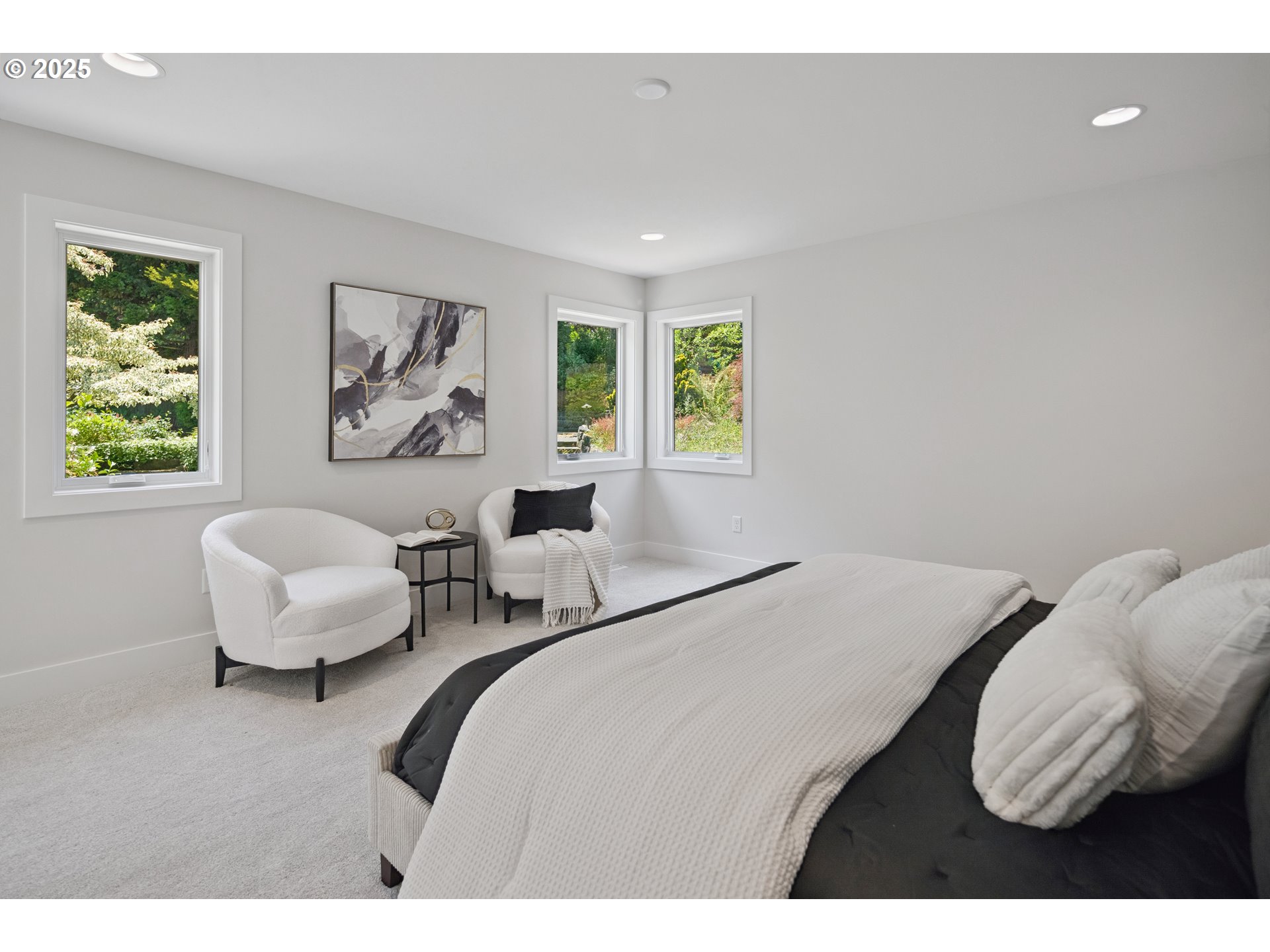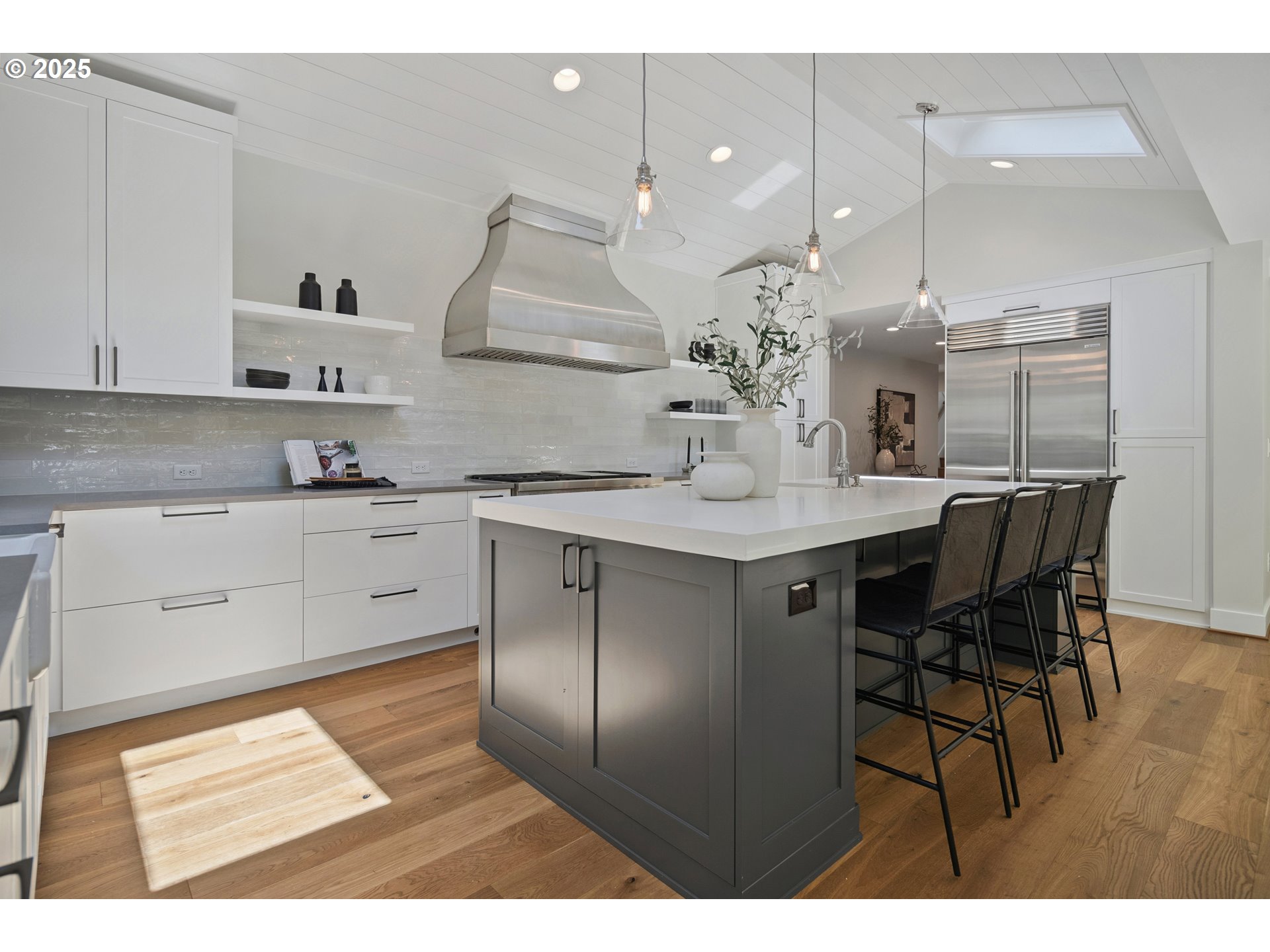 (503) 893-8874Nestled on nearly an acre on one of the most sought-after streets in Dunthorpe, this stunning contemporary residence has undergone a comprehensive renovation with meticulous attention to detail. The result is a bright and refined interior where clean modern lines are beautifully balanced by new white oak flooring and elegant shiplap accents. Throughout the home, expansive picture windows, sliding glass doors, and skylights dissolve the boundary between indoors and out, framing the stunning natural beauty of the grounds and flooding nearly every room with natural light. In the living room, a dramatic recessed tray ceiling complements a fireplace framed by artful stonework and flanked by custom built-ins. The gourmet kitchen showcases brand-new Sub-Zero, Wolf, and Bosch appliances, quartz countertops, a farmhouse sink, and a vaulted tongue-and-groove ceiling with a skylight. A spacious center island faces a wall of glass that opens to an outdoor dining area and serene garden sanctuary with vibrant perennials and ornamental trees, interwoven with stone pathways that invite quiet exploration. A separate butler's pantry with dual Sub-Zero beverage centers provides additional prep space. The home offers five bedroom suites - three on the main level and two upstairs - including dual primary suites, one on each floor, for exceptional flexibility. A spacious bonus area with enclosed office space is ideal for a family or media room, while a separate guest house with kitchenette provides additional guest accommodations. The impeccably landscaped park-like grounds are surrounded by towering trees, offering maximum privacy in addition to manicured gardens, lush rolling lawns, and a sport court. The home is located in the esteemed Riverdale School District - consistently ranked one of the best in the state - minutes from downtown Portland and Lake Oswego.