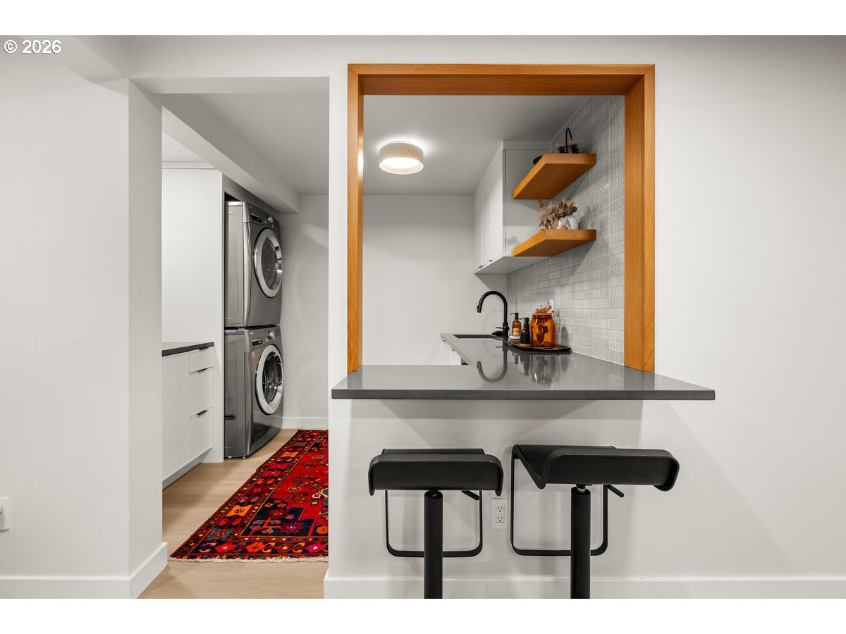 Epic mid-century entertainer’s dream with seamless indoor-outdoor living and views of the pool and lush garden from the main living spaces. Enter this beautifully updated home to an open floor plan with oak wood floors and a large slider out to your own private retreat. This home stands out with designer touches throughout, 2 fireplaces, an open kitchen with stainless steel appliances- a high-end Thermador gas range, Becco refrigerator and a peninsula.The jaw dropping finished lower level offers versatile living with potential for separate living area. This stunning space has a huge great room with a custom rug included, 2 bedrooms plus a gym with sliding doors. The full lower bathroom has radiant heated floors, a laundry shoot, double vanities, tile and tons of storage. The stylish laundry room doubles as a bar and entertaining space with Ann Sacks tile, beverage fridge, floating shelves, cup wash station and abundant storage. Additional features include built-in speakers, Nest thermostat, radon remediation system, washer/dryer included and updated main systems.Step outside to a private retreat on an oversized lot with a covered patio, in-ground saltwater pool, fire pit area, paver pathways, garden beds, and a charming “she-shed”/pottery studio that also houses pool equipment. Pool includes a top-of-the-line Hayward system with updated heater and filter. Side of the house has great covered storage area. This home has such a high level of care and updates, you will be hard pressed to find another. See full list of features. Open Sunday 11-1 | 3/22