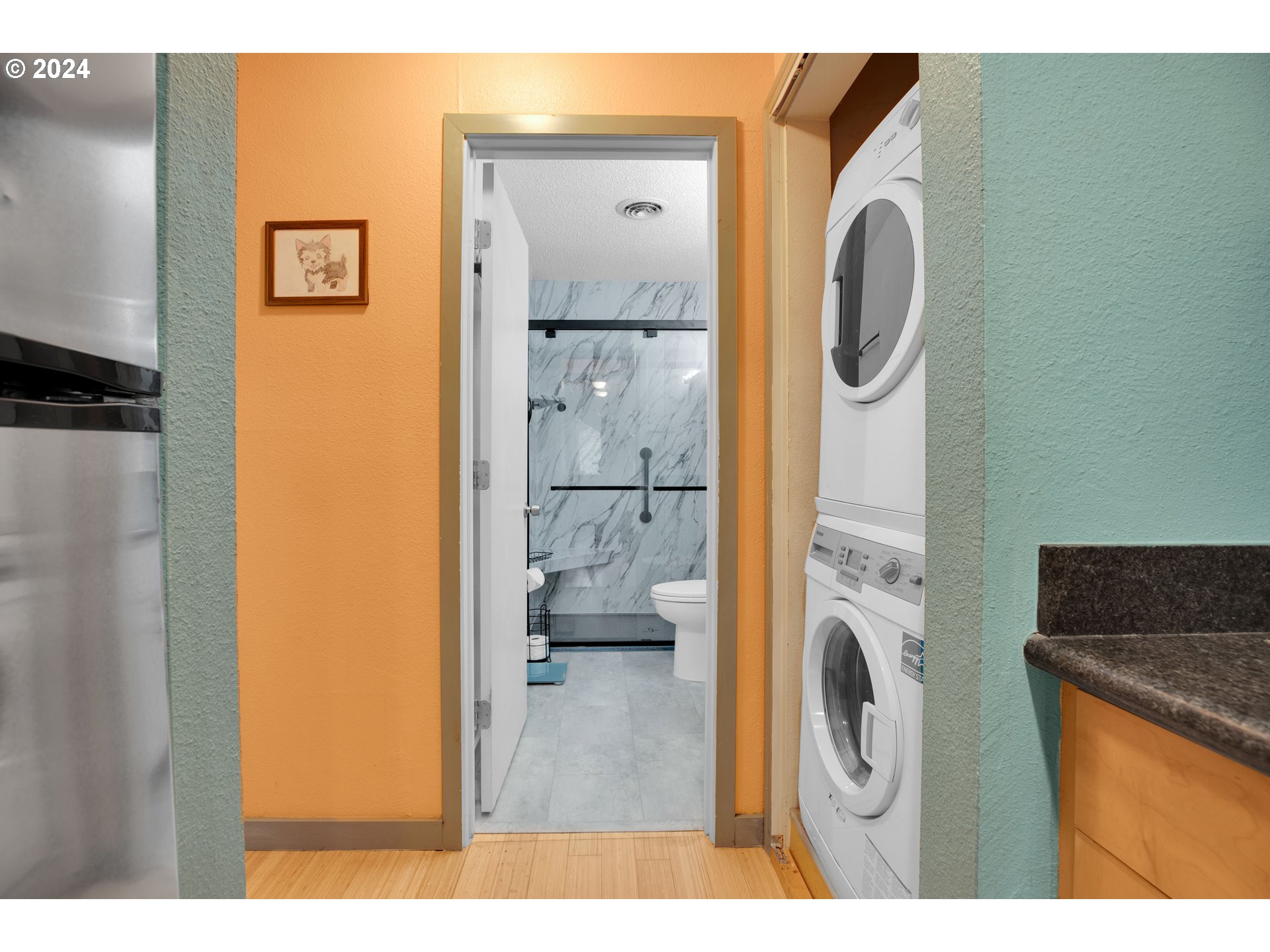 Discover this charming condo situated in a serene, park-like setting. This beautifully appointed unit features bamboo flooring, enhancing the warm and inviting atmosphere. The kitchen boasts sleek granite countertops and ample cabinet space, perfect for both cooking and entertaining. The beautiful, recently updated bathroom showcases modern finishes, providing a stylish retreat. Enjoy the convenience of an in-unit washer and dryer, making laundry days a breeze. Step outside to enjoy the tranquil surroundings, which are ideal for outdoor relaxation or strolls. It has great freeway access and is strategically located in the heart of all the trendy NE neighborhoods. This condo is the perfect blend of comfort and modern living. Rentals are permitted, and the rental cap is not met. Don’t miss the opportunity to make this your new home!