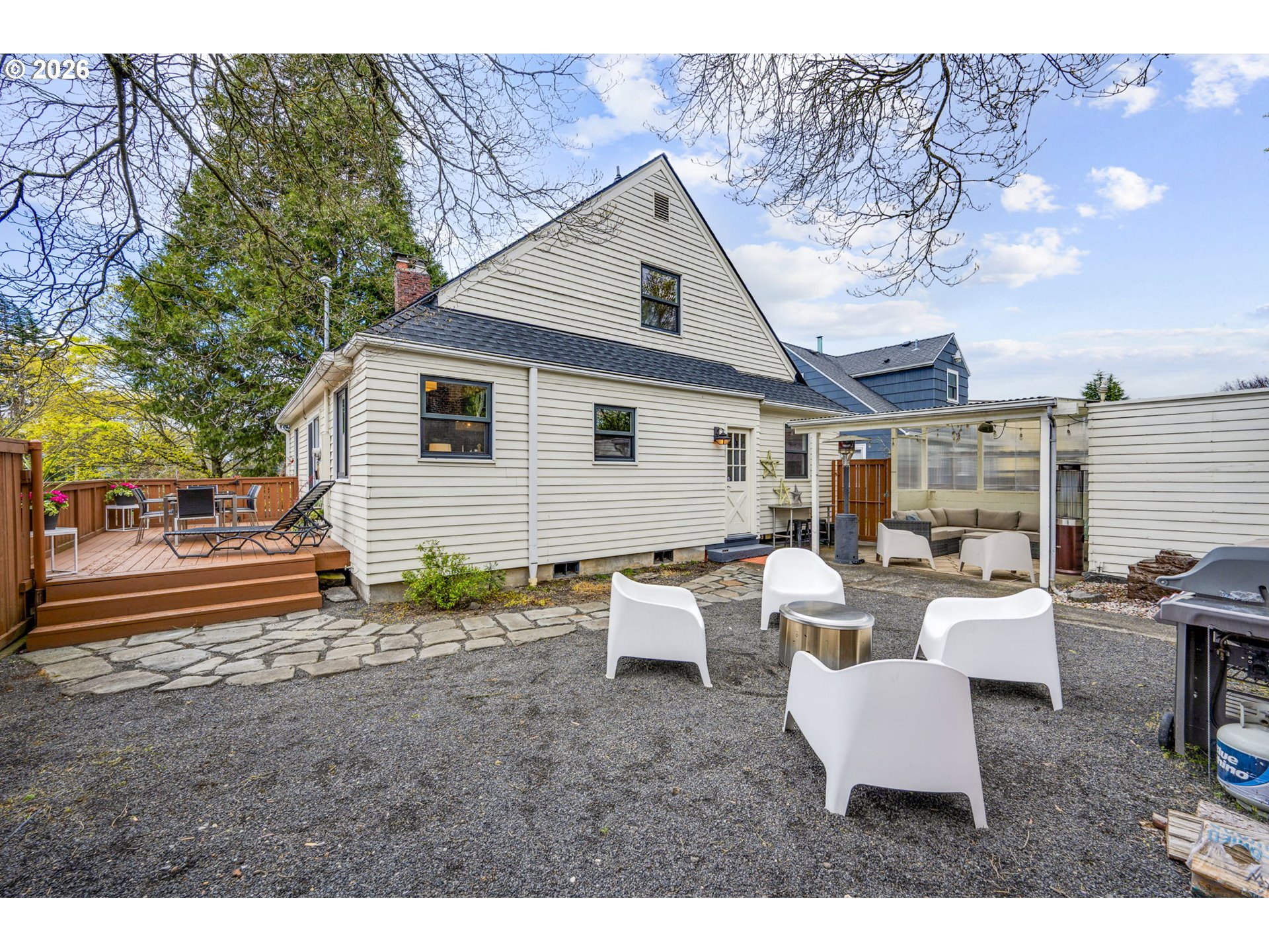 If Laurelhurst had a secret garden, this would be it! Savvy buyers will appreciate this cozy pocket of charming homes tucked within the Laurelhurst Elementary and Grant High School boundaries. This corner lot feels delightfully private and just a bit special. Pick your outdoor vibe—firepit for evening s’mores, happy hour on the front porch, dinner on the deck, a rainy night under the back patio, or a quick game of catch in the yard. Step inside through a storybook arched entry. The living room welcomes all with warm hardwood floors and a textured brick fireplace. The generously sized dining room is perfect for holiday feasts, casual meals, or moving the party outside through the sliding glass door. The custom kitchen sparkles with natural light, ample storage, and generous counter space. Two bedrooms and a full bath on the main level offer easy living. Upstairs is another full bathroom plus two more bedrooms connected by a Jack-and-Jill-style walk-in closet. The basement is made for movie nights or hangouts. The oversized laundry room offers a sink and plenty of room for projects and storage. In short: a little charm, a little personality, and just the right amount of “this feels like home.”