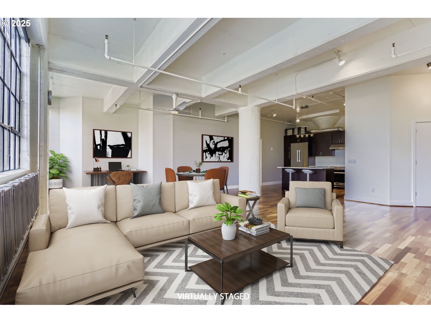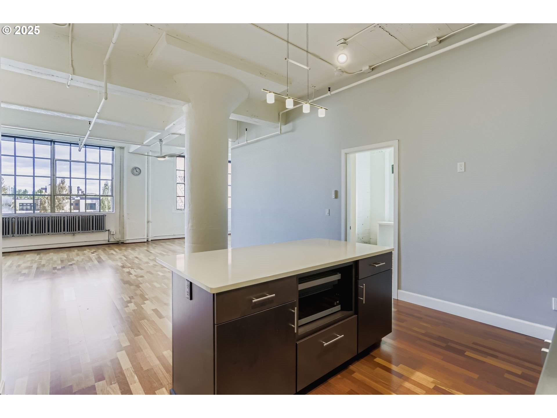 Welcome to urban sophistication at 1314 NW Irving #303, a truly unique industrial loft perched in the heart of Portland's historic Pearl District. This NE corner condo allows for big city views framed by a wall of windows and complemented by high ceilings. The fully remodeled kitchen features quartz countertops, a large island, and premium Miele appliances, including an induction range. The condo includes a fully enclosed bedroom with a luxurious ensuite bathroom and a walk-in California closet. The spacious living area allows for living, dining and work space plus a second full bathroom. Perfect for entertaining, the expansive rooftop deck offers sweeping city and mountain views. Just steps away from world class coffee, restaurants and shopping in the Pearl. Enjoy the monthly First Thursday art walk out your front door in this vibrant community. With zoning that caters to both residential and professional needs, this loft is your canvas for city living at its finest.