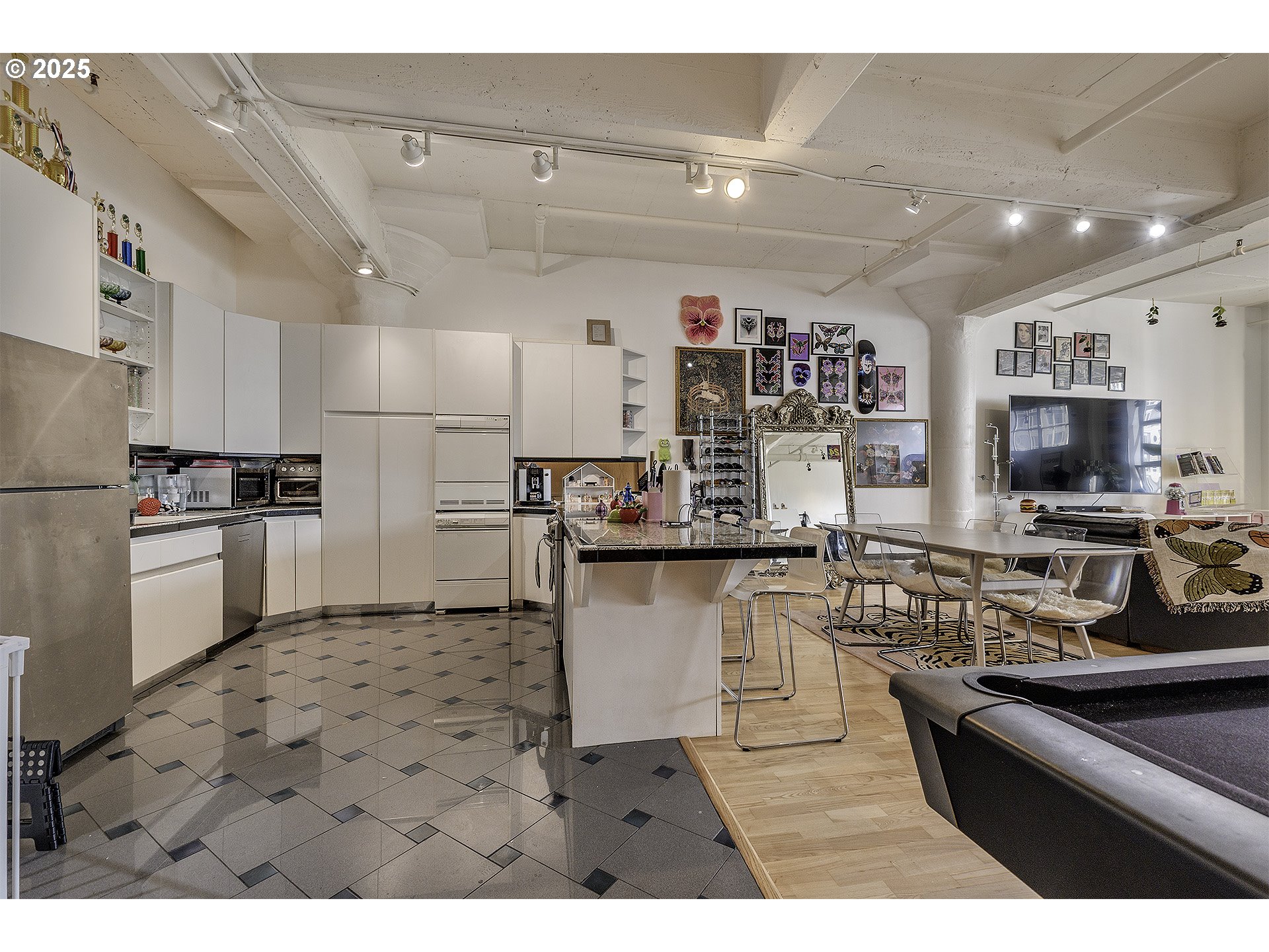 A true urban loft at an unbeatable value in one of Portland Pearl District's most iconic buildings, the historic Irving Street Lofts, with parking space included. Inside, you’ll find 11 ft ceilings, original warehouse windows, and a wide-open layout, while still having designated bedroom space, blending character with modern comfort. The expansive windows frame city views and fill the space with natural light. Enjoy in-unit laundry, a portable A/C unit, custom lighting, and a secure garage parking space. The building is very secure with fob access to the entrance, elevator, garage, and rooftop deck — a 360-degree view with WiFi and rentable garden boxes. Set in one of the Pearl District’s most vibrant and well-connected corners — walkable, bikeable, pet-friendly, and just steps from NW 23rd, Forest Park, the waterfront, and Portland’s best restaurants and shops. Whether you're commuting to Nike or running to Forest Park, this is easy, secure, stylish city living at its best.